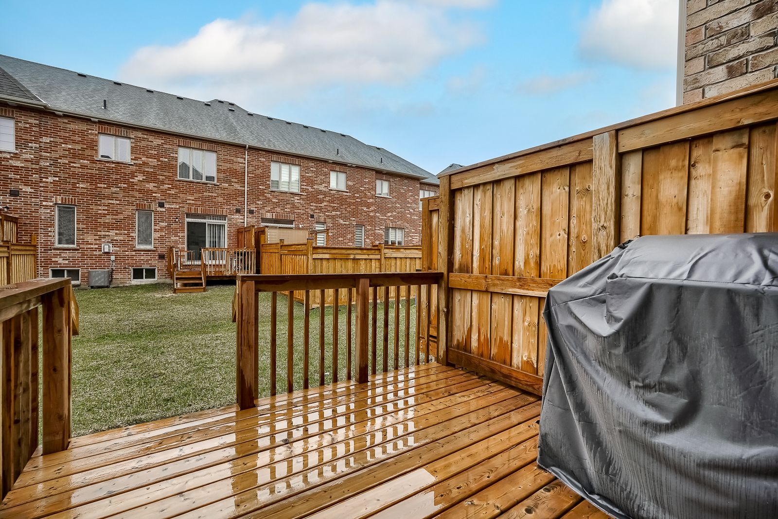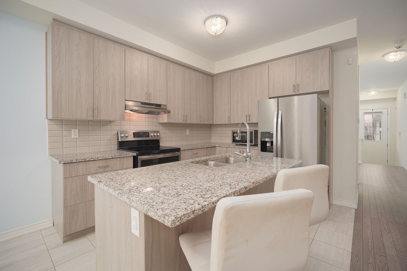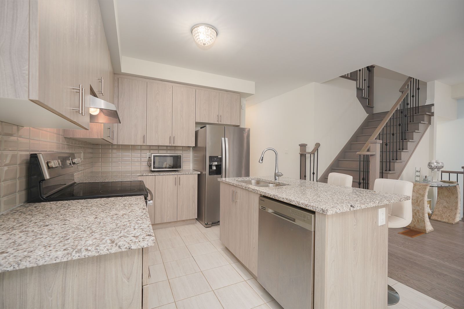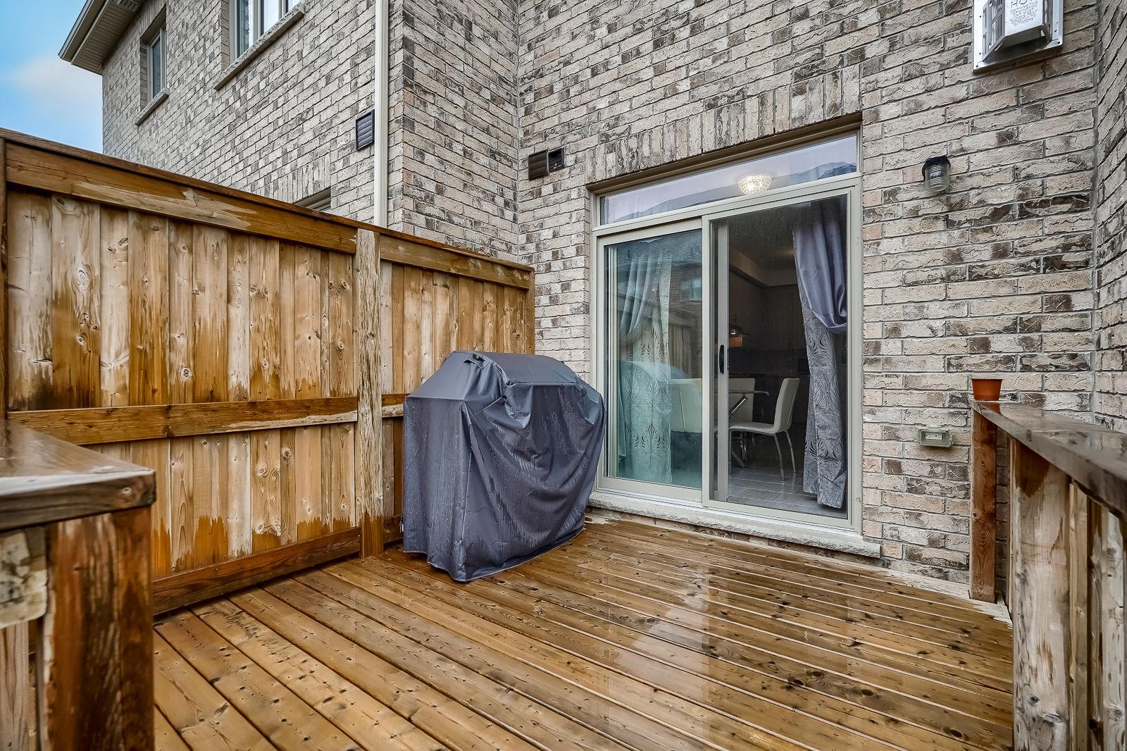 Beautiful brick and stone townhome nestled in a safe, family-oriented neighborhood in north ajax. This inviting home features a charming covered front porch and a thoughtfully designed layout with 3 spacious bedrooms and 3 bathrooms. The bright and spacious main floor offers a welcoming living room with a cozy gas fireplace and a comfortable family area, creating the perfect space for both everyday living and entertaining. The modern, family-sized kitchen features granite countertops, stainless steel appliances, a center island, and a sun-filled breakfast area with a walkout to the backyard deck-ideal for outdoor dining and relaxing. Hardwood flooring throughout the main floor adds warmth and elegance to the space. Upstairs, the king-sized primary bedroom includes a walk-in closet and a luxurious 5-piece ensuite complete with a glass shower. Enjoy the spacious backyard with a wood deck, perfect for hosting family and friends. The unfinished basement offers excellent potential to customize to your needs. Ideally located in desirable north ajax, close to schools, parks, playgrounds, shopping, and transit, making it a wonderful place to call home.