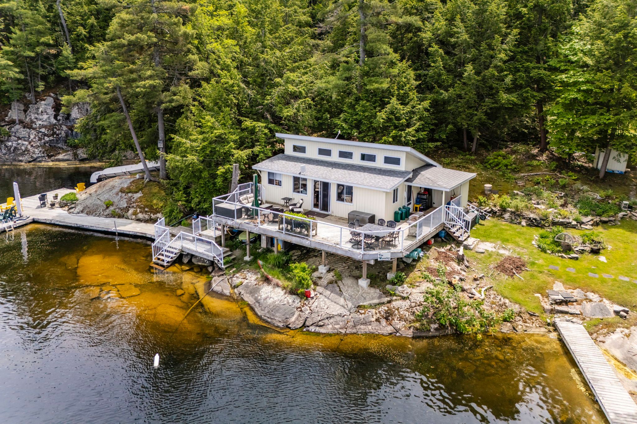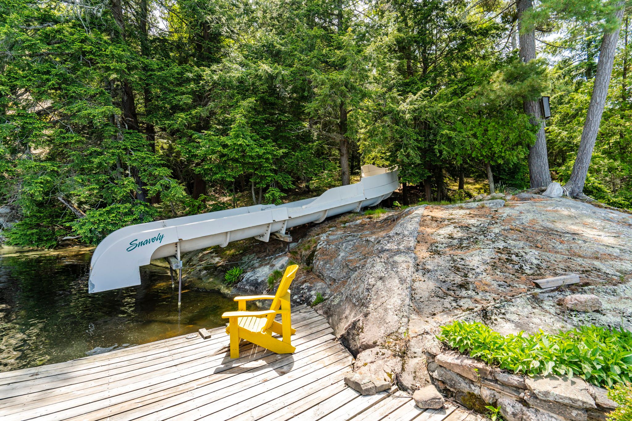 Welcome to 4 island 270 on stunning six mile lake, a private island retreat with over 400 feet of clean, natural waterfront and some of the most breathtaking north-facing views the lake has to offer. This beautifully maintained property features a charming 2-bedroom, 1-bathroom cottage, perfect for relaxed lakeside living, along with a 300 sq. Ft. Bunkie ideal for guests or extra family. Step outside and enjoy fantastic swimming right off the deck, or take advantage of the waterpark-style waterslide for endless summer fun. With ample docking space, there's plenty of room for boats, water toys, and entertaining. The landscape is thoughtfully curated with lush gardens throughout the property, adding vibrant color and tranquility to the natural surroundings, wheather you're sipping coffee at sunrise or winding down as the sun sets across the bay, the north facing exposure ensures you enjoy both start and ends of the day with unparalleled views. This is a property designed for making memories offering privacy, recreation, and comfort in one of muskoka's most sought-after lake communities. 4 island 270 is the perfect island getaway for families, friends, and anyone who loves the magic of cottage life on six mile lake.
