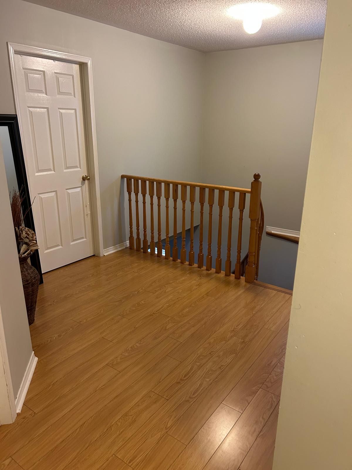 • Elegant oak staircase and hardwood flooring throughout main level.