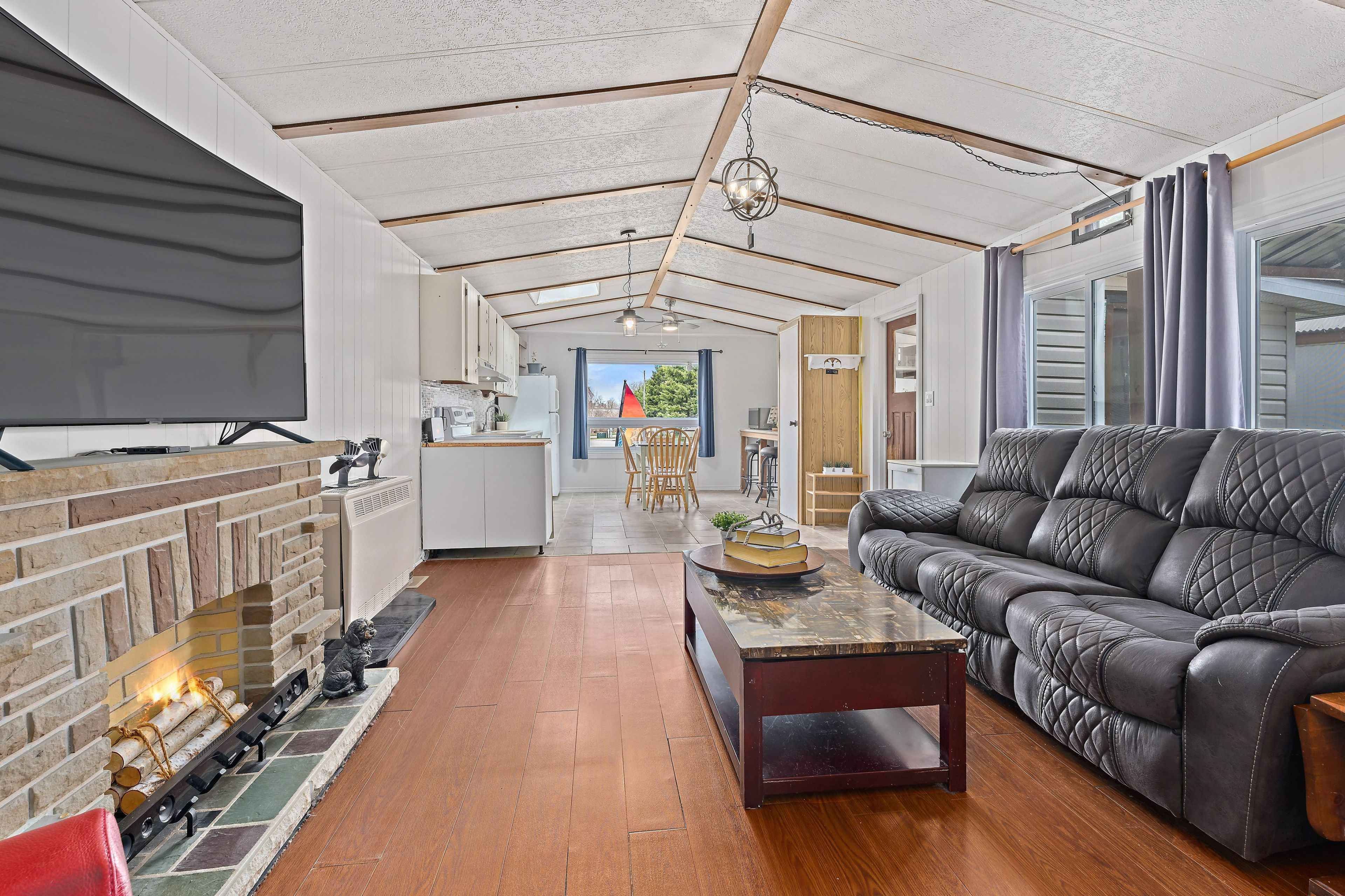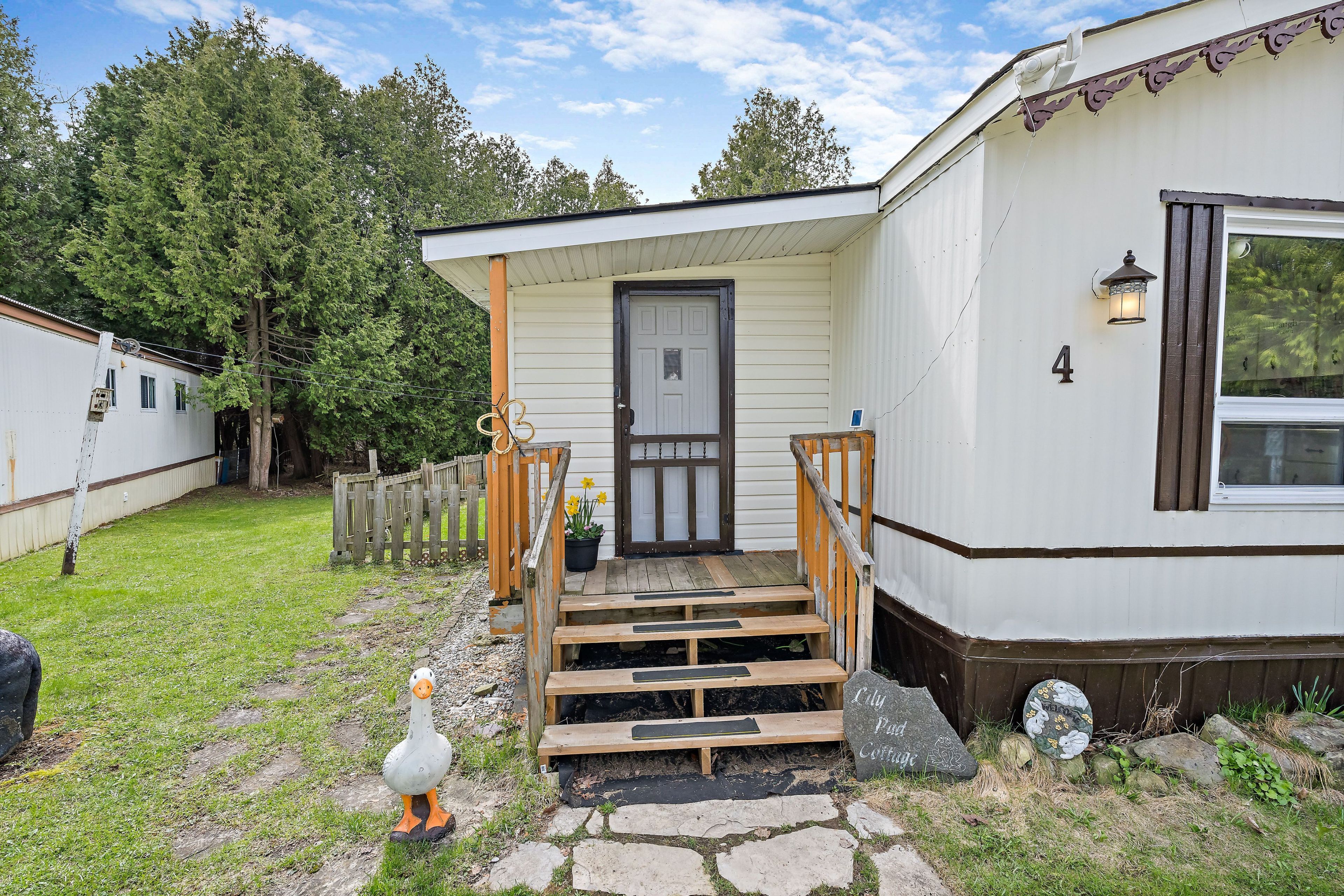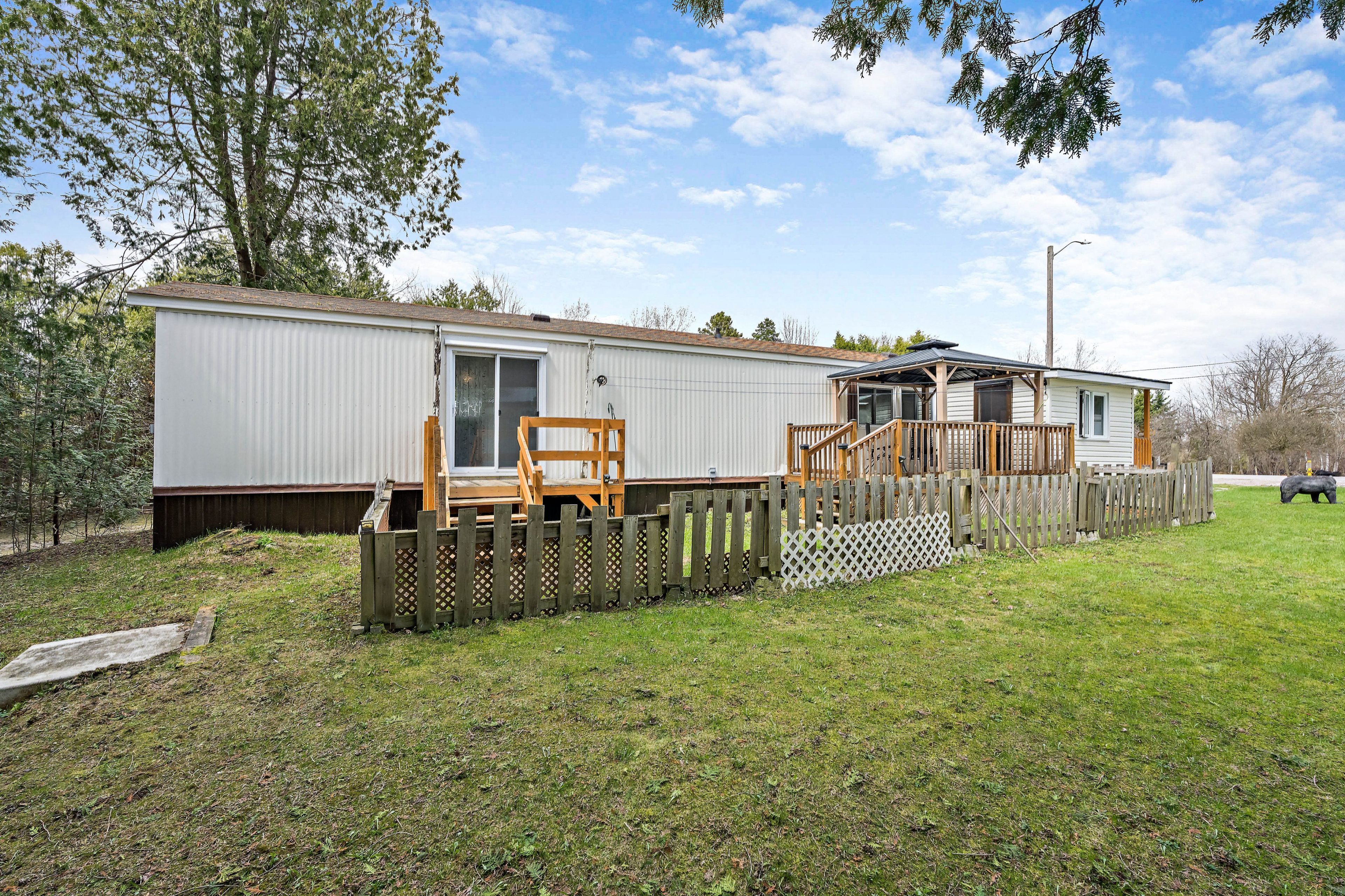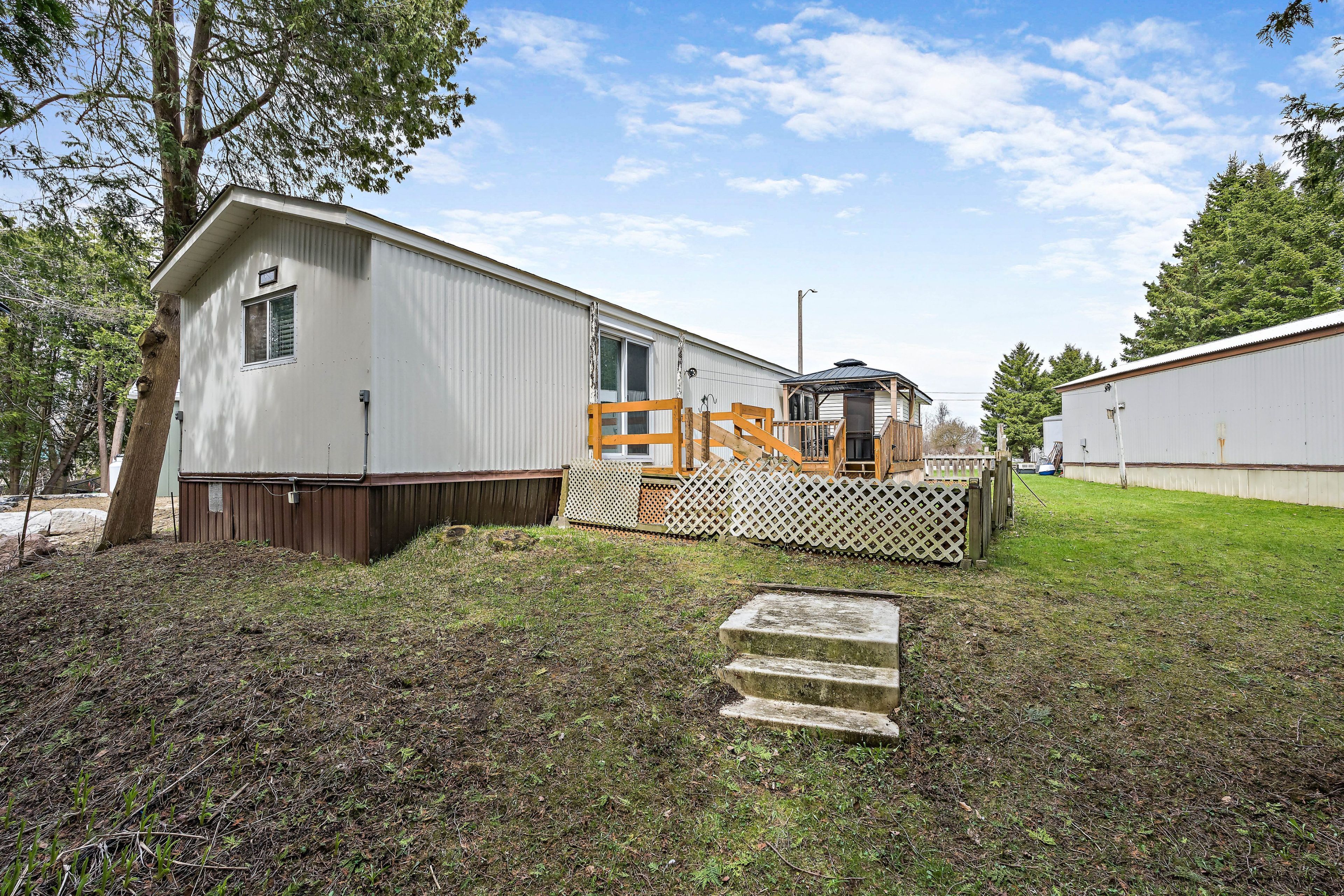 Lovely, turnkey, bright & spacious mobile home nestled on a quiet cul-de-sac in the town of erin's desirable stanley park. Backing on to conservation and walking distance to stanley park pond. Open concept living room and large eat-in kitchen with vaulted ceiling. Exterior was painted in 2024. Enjoy the peace and quiet on the new deck (2021) with gazebo. Current $778 land lease includes property taxes, water, septic and road maintenance. Just move in and start enjoying the tranquil lifestyle!