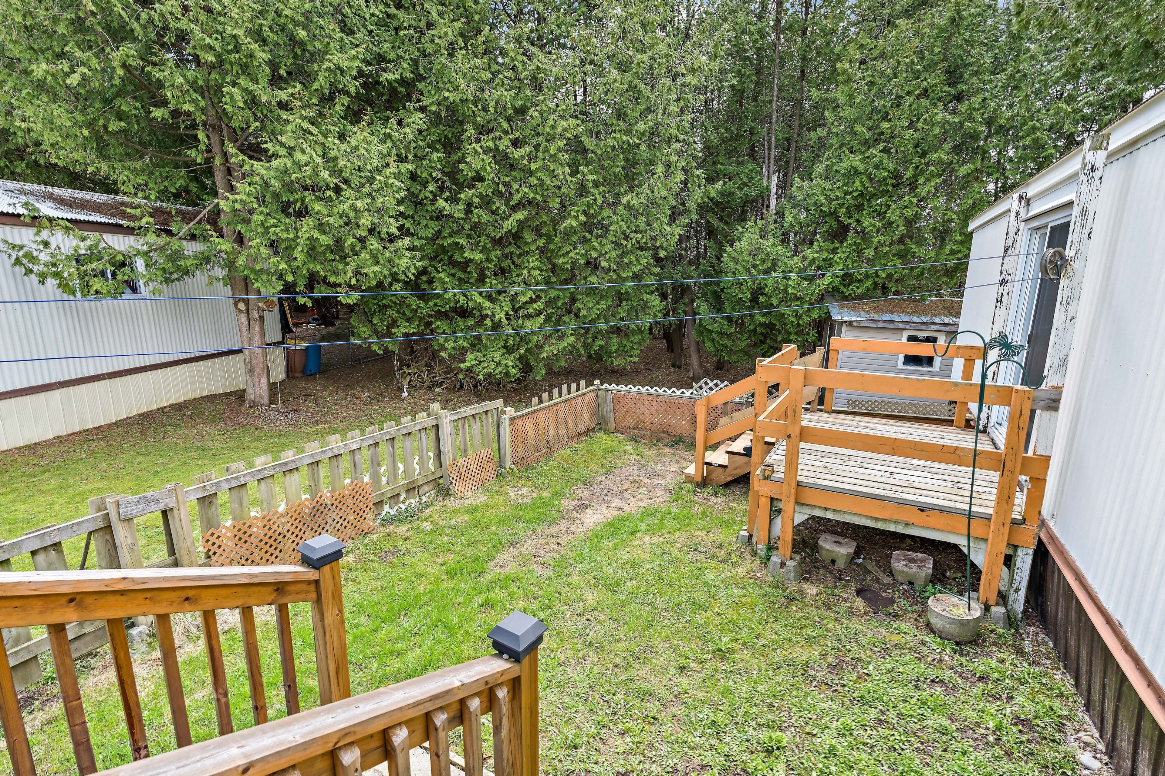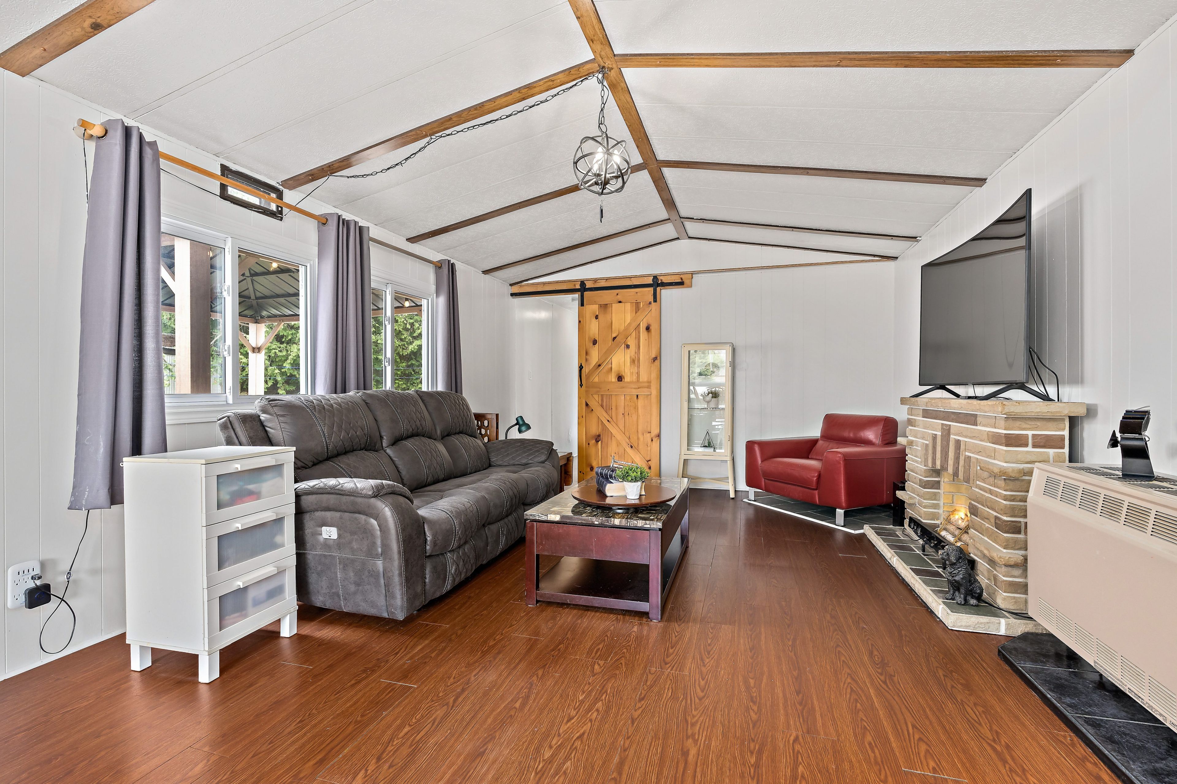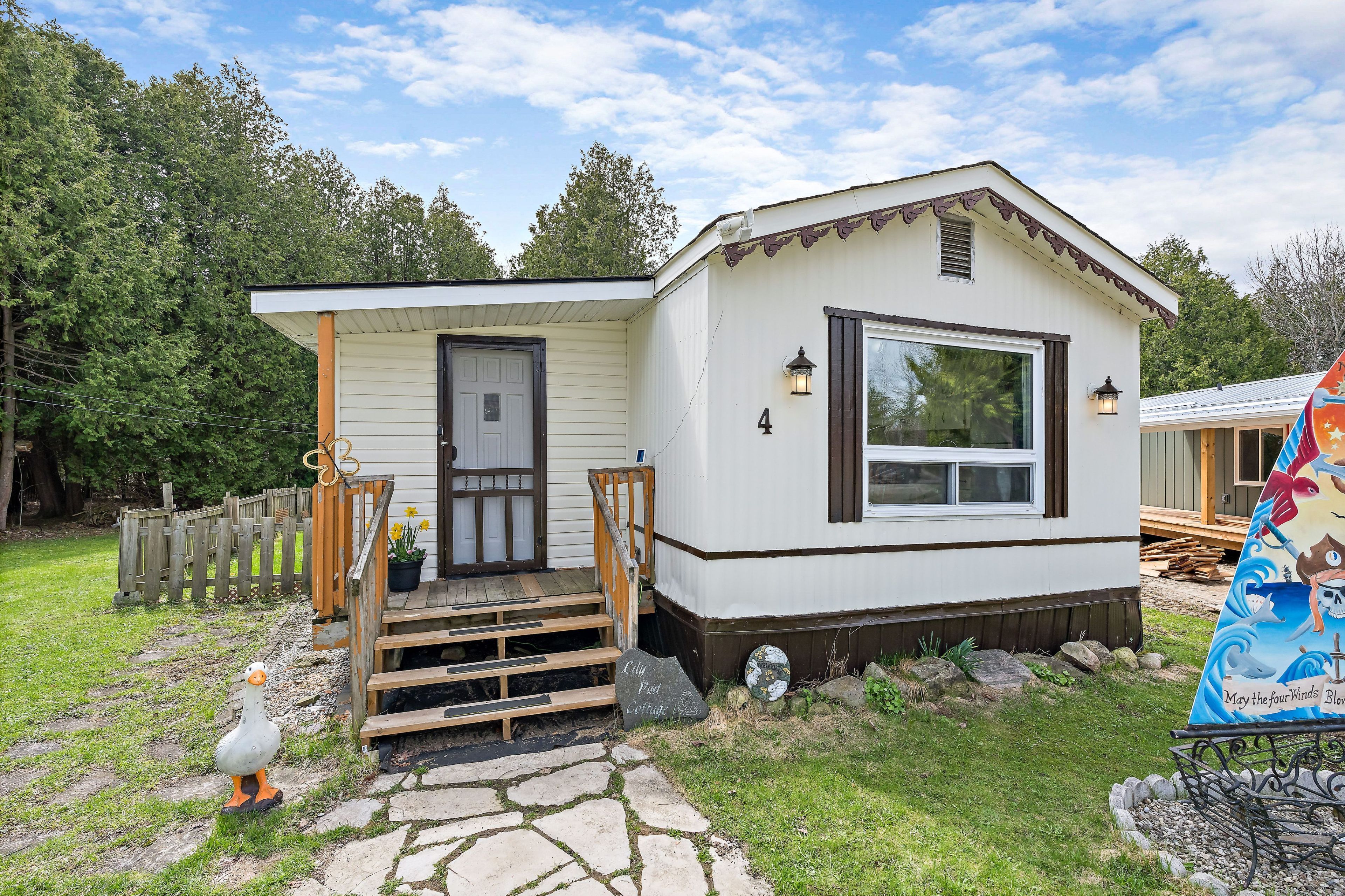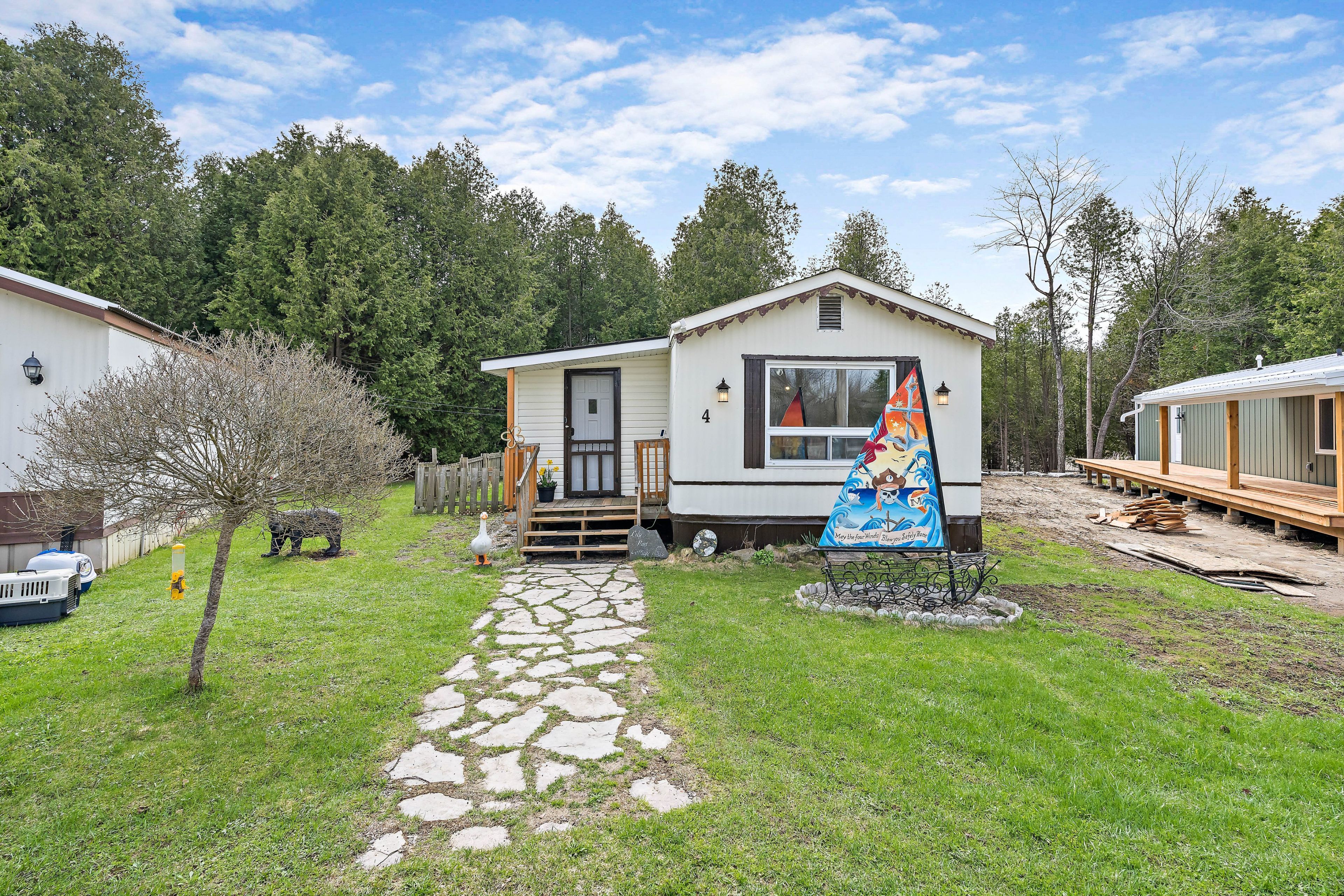 Lovely, turnkey, bright & spacious mobile home nestled on a quiet cul-de-sac in the town of erin's desirable stanley park. Backing on to conservation and walking distance to stanley park pond. Open concept living room and large eat-in kitchen with vaulted ceiling. Exterior was painted in 2024. Enjoy the peace and quiet on the new deck (2021) with gazebo. Current $778 land lease includes property taxes, water, septic and road maintenance. Just move in and start enjoying the tranquil lifestyle!