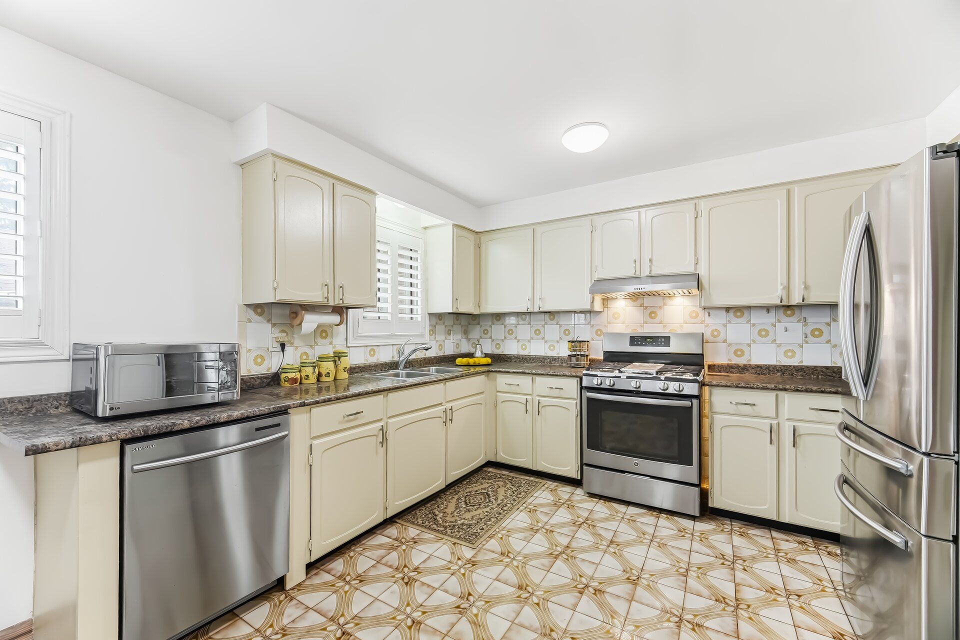 • Bright living/dining area and large eat-in kitchen with stainless steel appliances.