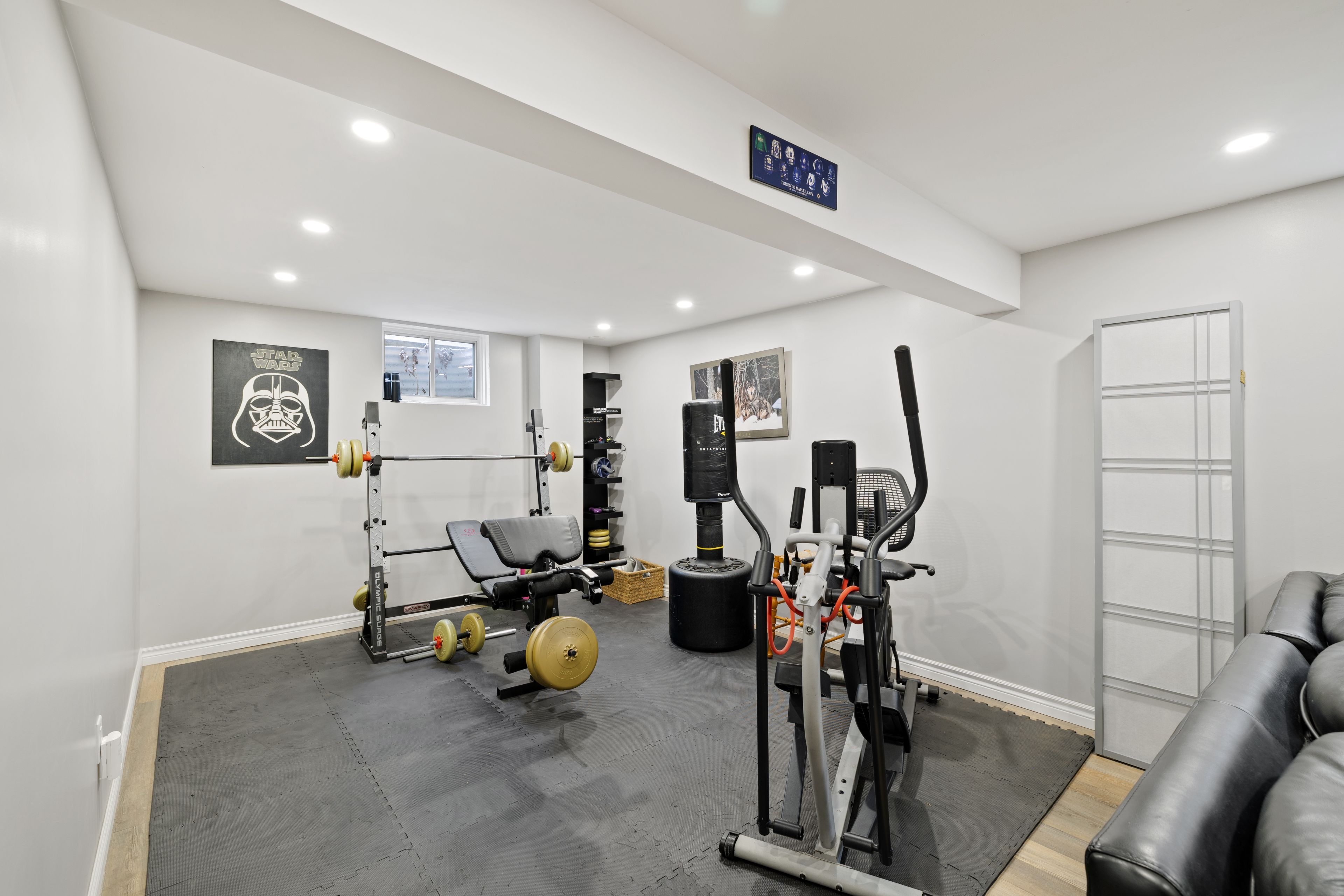 • Versatile basement includes a rec room, exercise area, and potential in-law suite.