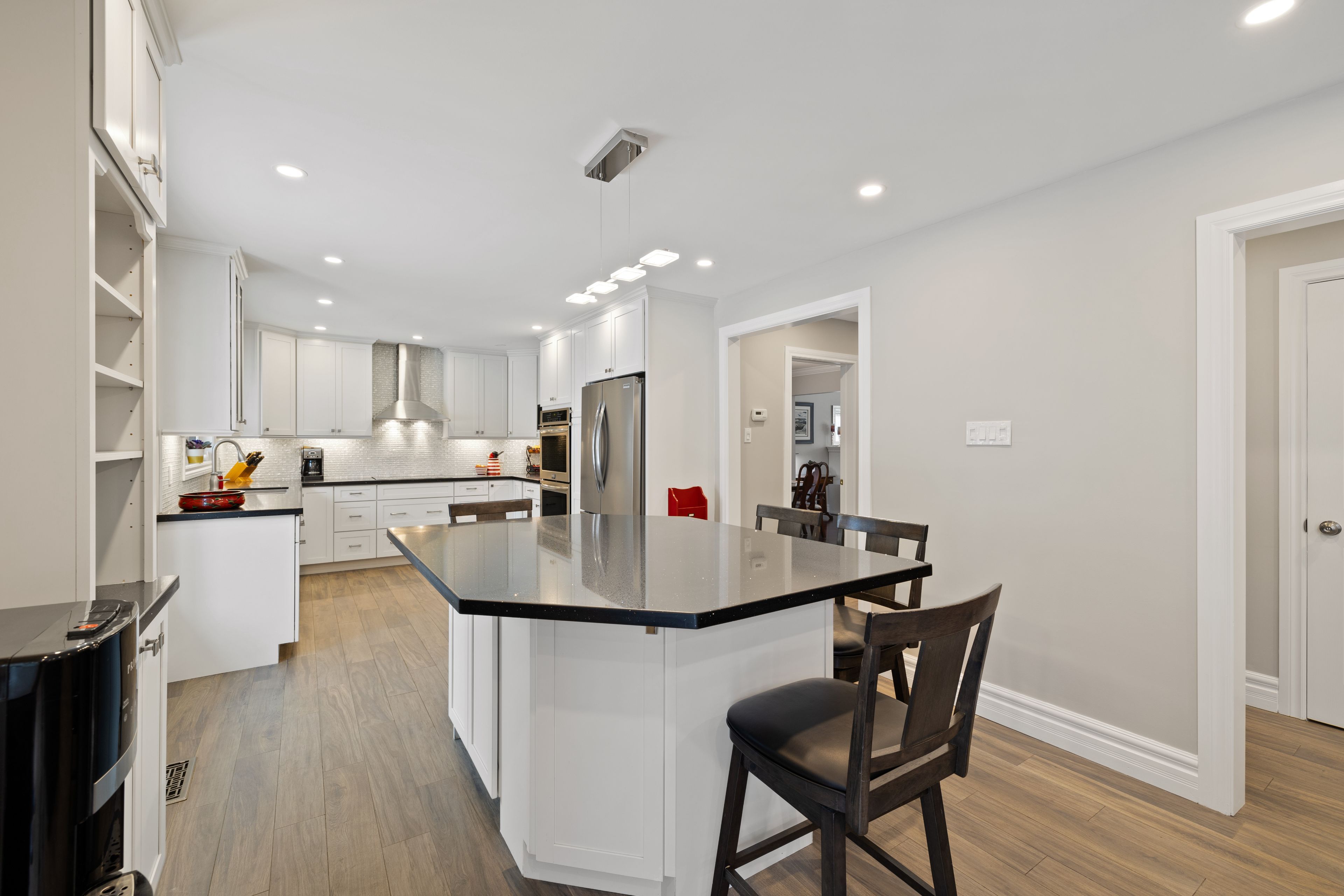 Welcome to this immaculate family home, 4+1 bedroom, 4 bathroom in the coveted m section, with easy access to highways/schools/shopping/hospitals. Luxurious features with many upgrades including: triple pane windows, custom blinds throughout, roof, stunning custom chef's kitchen with high end finishes, including gorgeous porcelain floors, soft close/slide cabinets, 2 lazy susans, b/i spice cabinet, pull out pantry, premium ss appliances with built in double wall ovens, quartz counter tops, beautiful glass backsplash and undermount lighting. The back of the home boasts an open concept design combining the family room, centre island (extra large 70"x54" with storage/seating) and a chef's kitchen with a sunlit view of the backyard oasis. The cozy family room with gas fireplace walks out to the ultra private large backyard with sparkling in ground salt water pool (new liner/heater/filter) with removable child safety fence and new rubber rock deck, garden shed with electricity and in ground sprinkler system. Separate formal living/dining room with gas fireplace and gleaming hardwood floors. Main floor powder room and laundry/mud room with entrance to backyard. Upper level features an extra large tranquil primary retreat with two closets and 3pc ensuite. Three additional large bedrooms, a newly renovated 4pc main bath and two linen closets complete the upper level. Versatile newly renovated open concept basement with huge rec room, exercise room, 5th bedroom and 2pc bathroom. New furnace, ac, humidifier and lots of storage. Basement has egress windows and plumbing access for a second kitchen, with upgraded 200 amp electrical for potential in-law suite or income generating unit. This exceptional property is a rare find and really does have it all! Your turnkey paradise awaits!