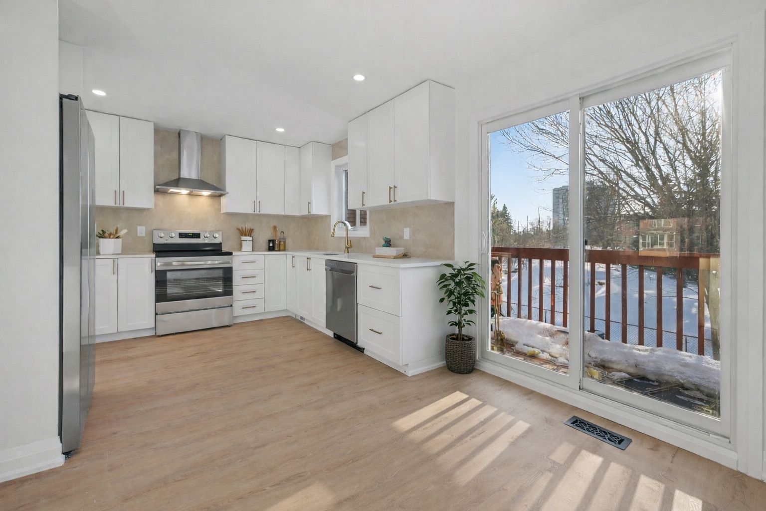 Welcome to 4 marielle court. Fully renovated freehold 3-storey townhouse offering nearly 1,800 sq ft of thoughtfully designed living space. Ideal for families or professionals, this spacious home features 4 bedrooms and 1. 5 bathrooms with bright, modern finishes throughout. The main living area offers a generous open layout with spacious living and dining rooms, highlighted by bright pot lights that create a warm and inviting atmosphere. The modern kitchen is designed for both style and functionality, featuring quartz countertops, brand new appliances, soft-close cabinets and drawers, and tall upper cabinetry extending to the ceiling for maximum storage. Step out from the kitchen onto your private balcony, perfect for morning coffee or evening relaxation. Enjoy the rare advantage of no rear neighbours, providing added privacy and peaceful views. The home also features a spacious private backyard, ideal for entertaining, gardening, or relaxing outdoors. Conveniently located close to amenities, shopping, and highway access. Be the first to occupy this beautifully renovated home!