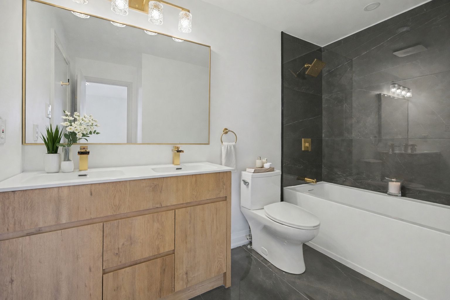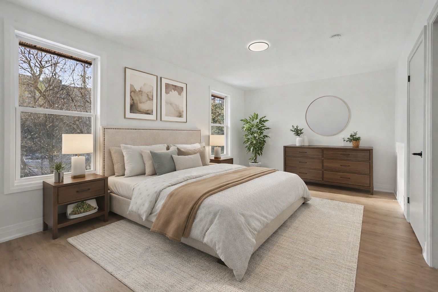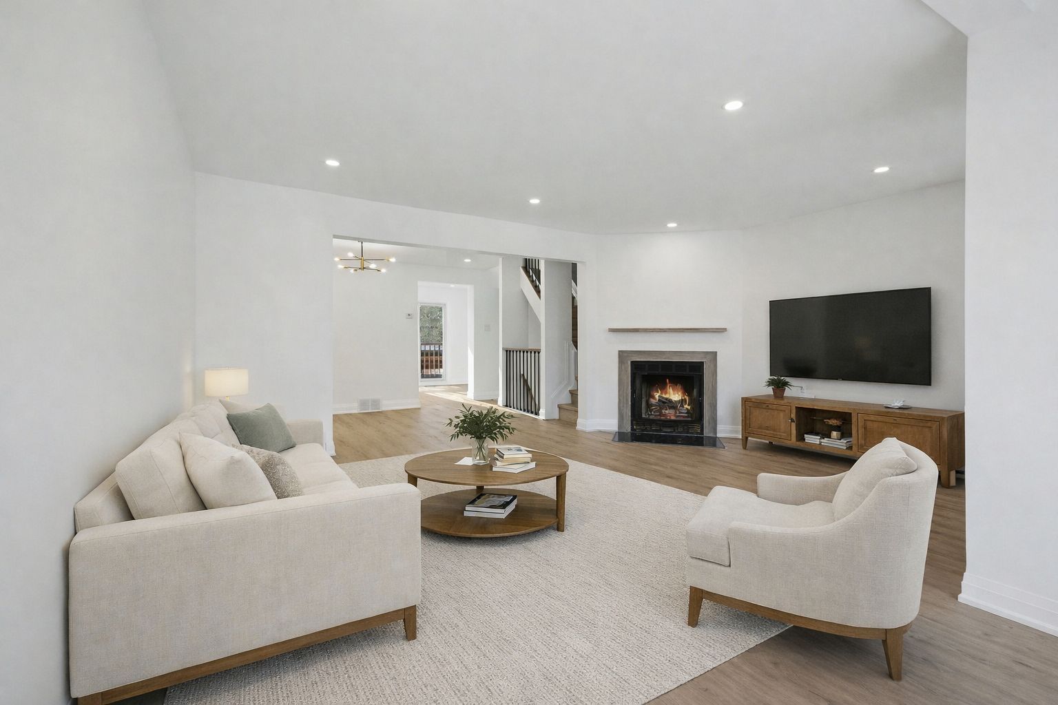 • Spacious open layout with bright pot lights creating an inviting atmosphere.