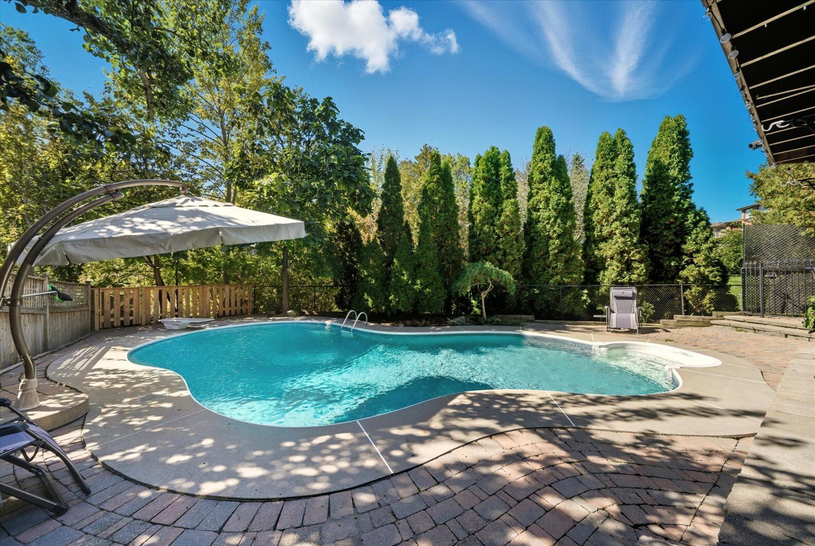 Tucked away on a quiet cul-de-sac, with a pie shaped lot backing onto a protected ravine, this exceptional home offers a rare blend of tranquility, space, and connection to nature. This is more than a home-it's a place where a new family can create a lifetime of memories. The sun-filled main floor is designed for living and gathering, with a southwest-facing kitchen and family room illuminated by five large windows and two sliding doors. A premium gas fireplace adds warmth and elegance, while the soaring 18-foot ceilings in the living room create a stunning first impression. A recently renovated main floor laundry room adds everyday convenience. Upstairs, four beautifully updated bedrooms provide comfort and privacy, with two sharing a spacious bath and two enjoying their own private, renovated ensuites-ideal for growing families. The fully finished walk-out basement is a true retreat, complete with a sauna, shower, and change room-perfect for relaxation and wellness. Step outside to your own backyard oasis featuring an inground pool, hot tub, and incredible space for entertaining, from summer barbecues to unforgettable kids' celebrations. With a new driveway, garage doors, and front entry, this home has been thoughtfully maintained and updated. A rare opportunity to own a private, light-filled sanctuary in a family-friendly setting-ready for its next chapter.