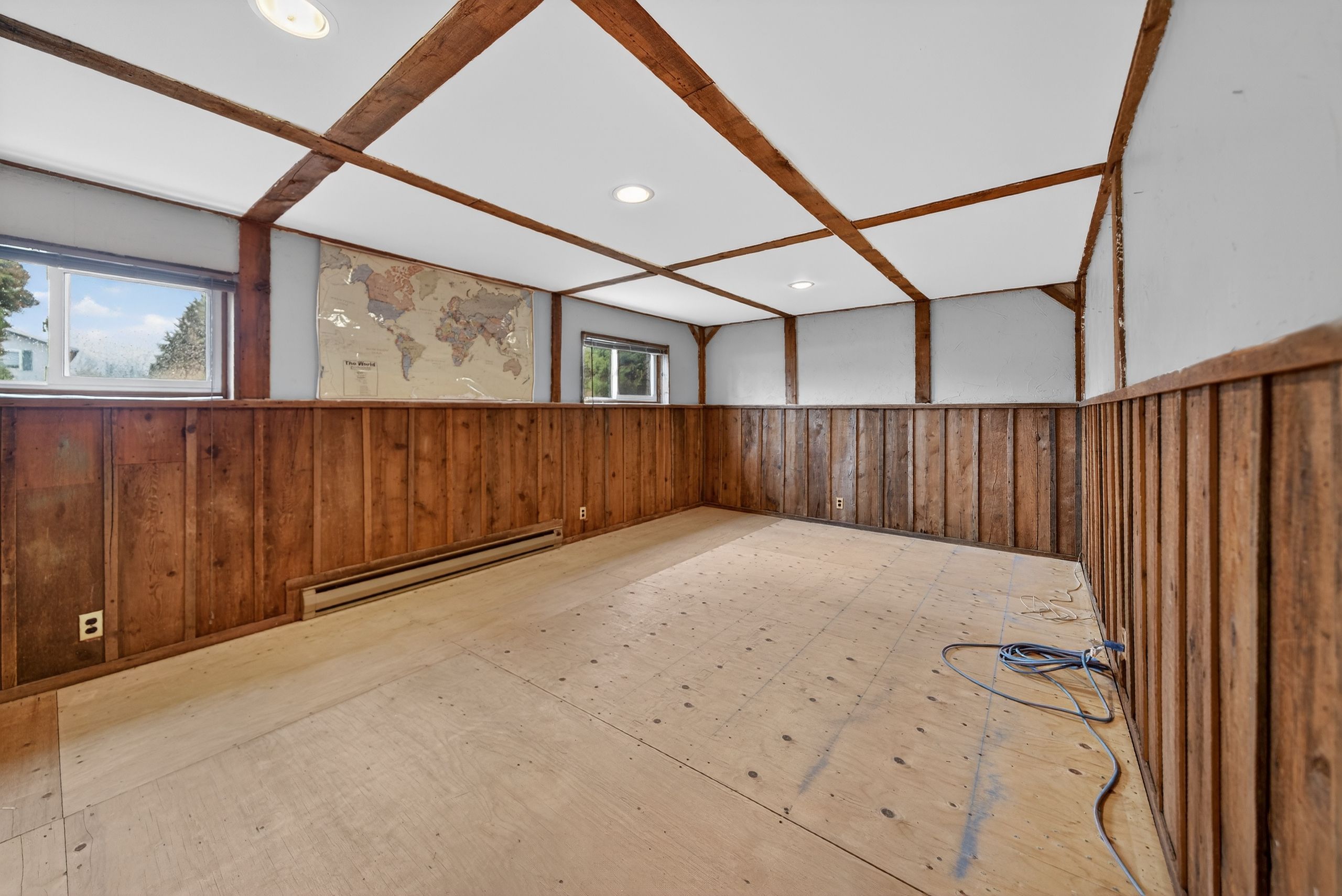 • Home currently divided into two units for rental income potential.