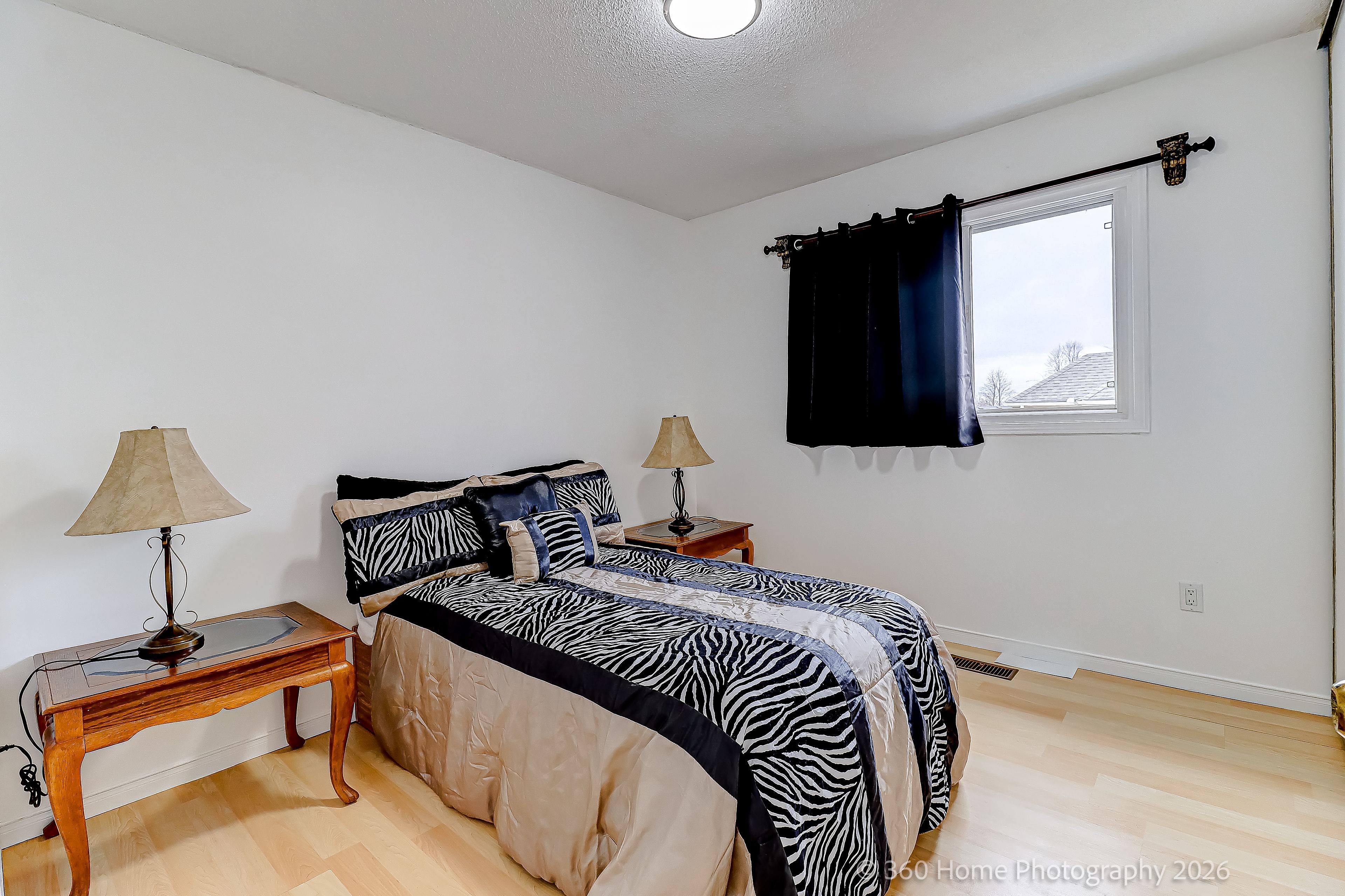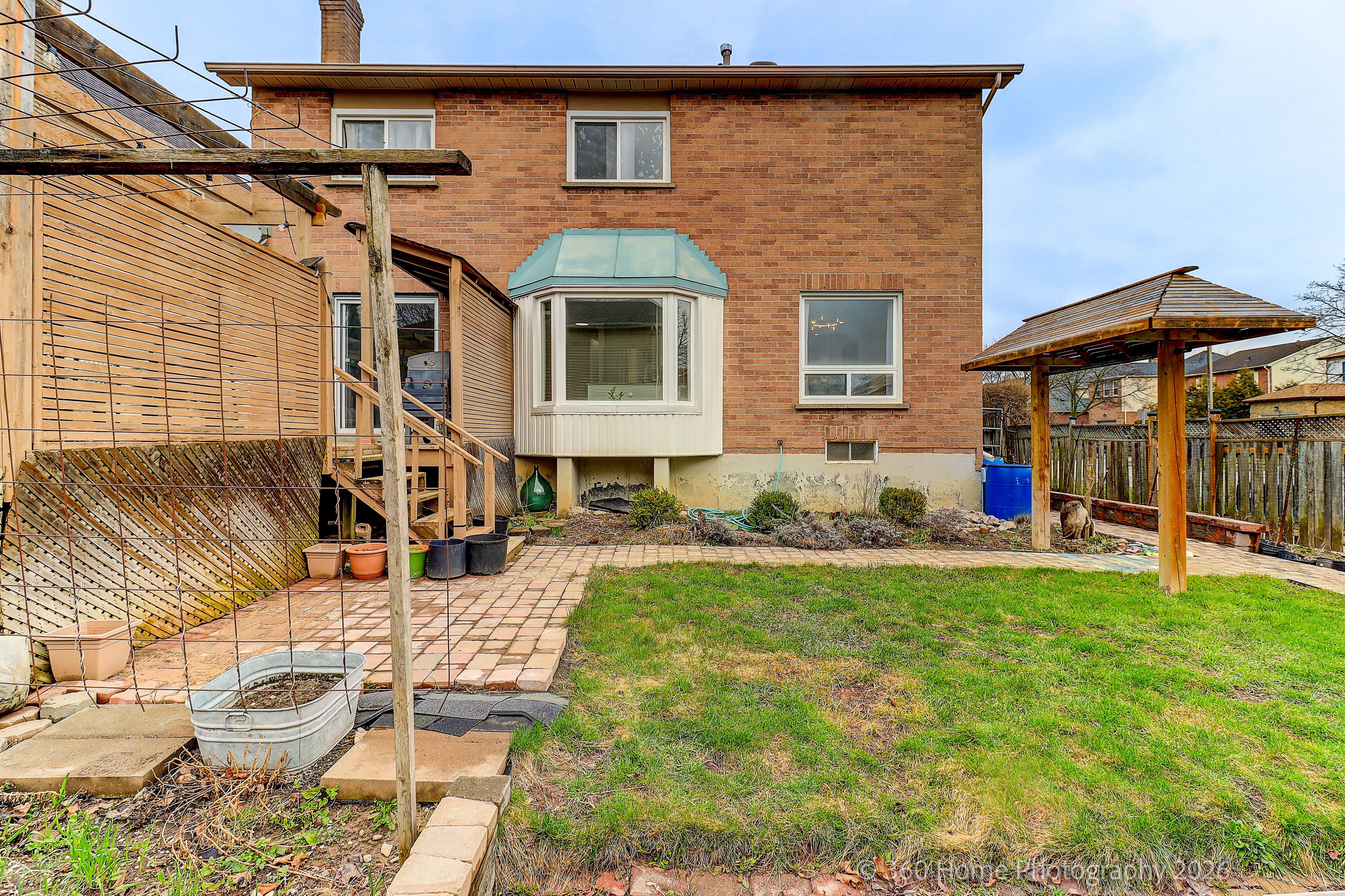 Well maintained by loving family since year 2000! Pride of second ownership is evident throughout the year since it was built in 1988. All-brick home that has been immaculately maintained and exceptionally cared for. Spotless and move-in ready, this residence offers bigger rooms of thoughtful design, and outstanding versatility for today's family living. The main level features a family privacy concept layout with properly spaced living, dining, family room and spacious kitchen with bay window for breakfast table, and a welcoming family room area anchored by a center wood fireplace. Walk out from the family room to a large deck overlooking the fully fenced, level backyard overlooking an open area creating a warm, inviting space for entertaining or relaxing on summer days and evenings. While the deck is a plus, there ample lot of space for garden and/or future family pool. The upper level offers four large bedrooms, 2 bathrooms, including a primary in-suite and huge walk-in closet and 3-piece in-suite bathroom with bathtub shower. A double-car garage within side entry leads directly into a large laundry/mudroom, plus side entrance providing excellent functionality and potential for a separate entrance, potential for an in-law suite or future basement apartment. The finished basement adds exceptional value complete with large recreational area and lighted bar with small fridge, a stunning newer kitchen and 3-piecebathroom, and a meticulously clean storage rooms. A corner lot property with kerb appeal! Interlock landscaped plus large paved driveway that comfortably accommodates 2 to 3 vehicles plus 2 built-in garage spaces. New updates include fridge (2026), stove (2026), dishwasher (2026), paints (2026). This is a rare opportunity to own a home that has been lovingly maintained as second owner from day one, offering space, flexibility, and long-term value inside and out