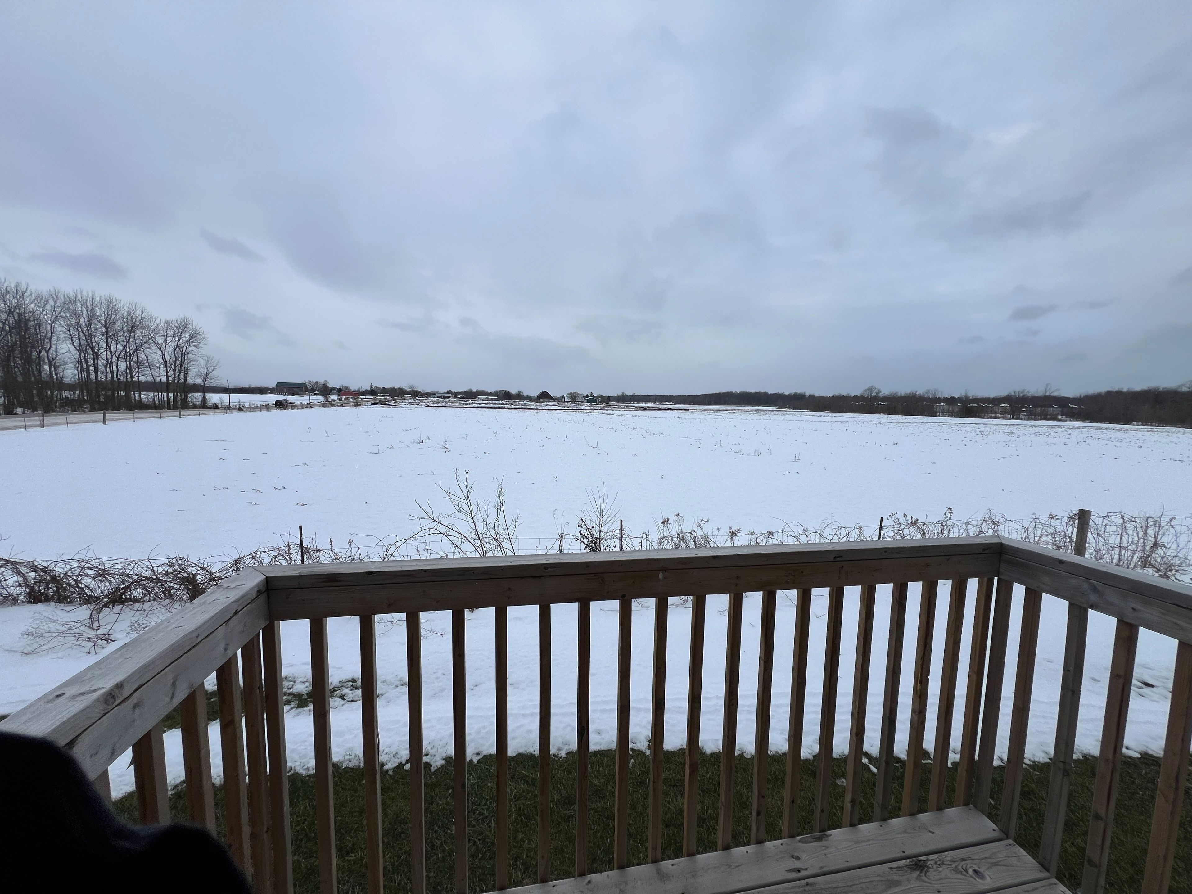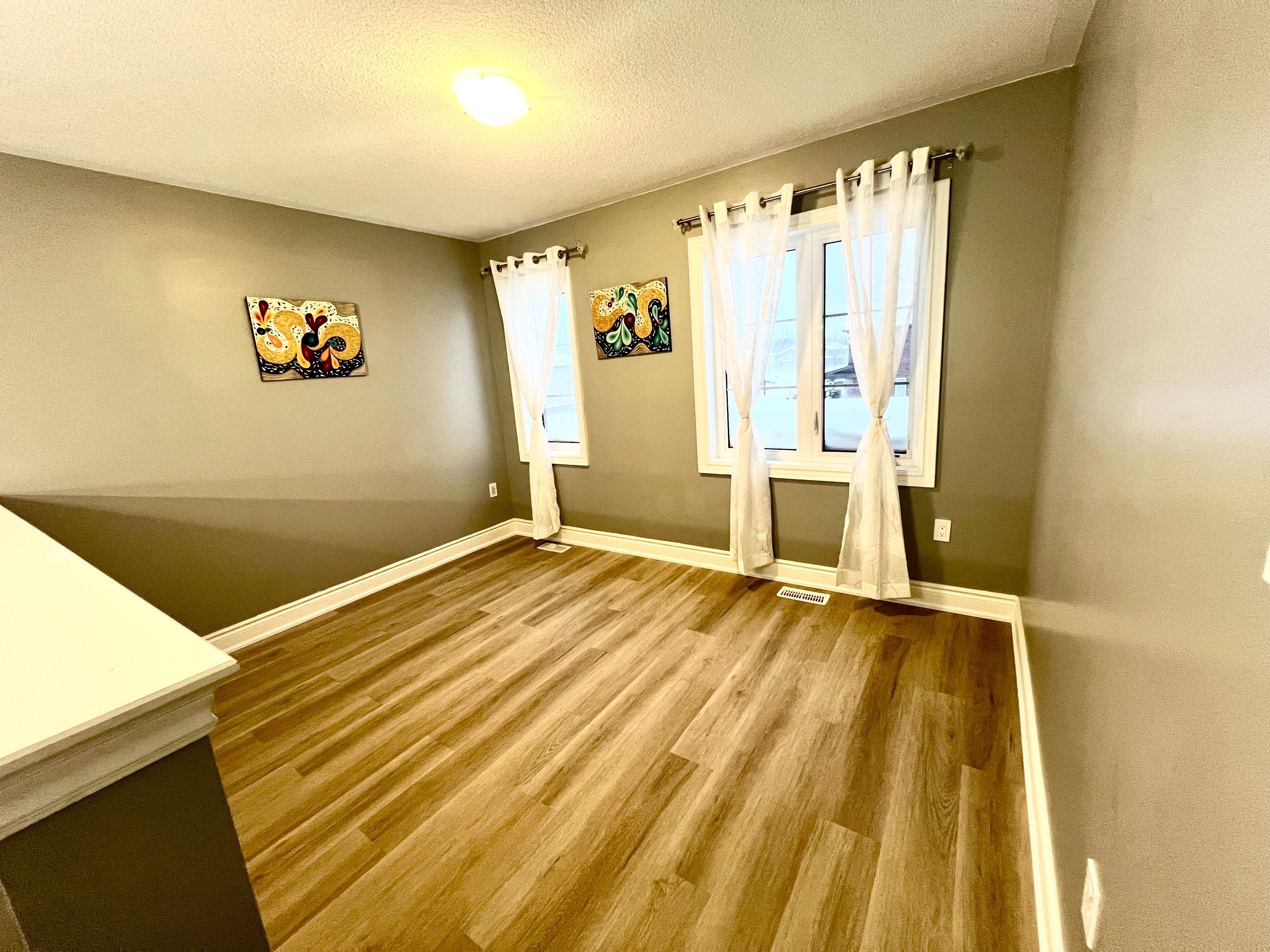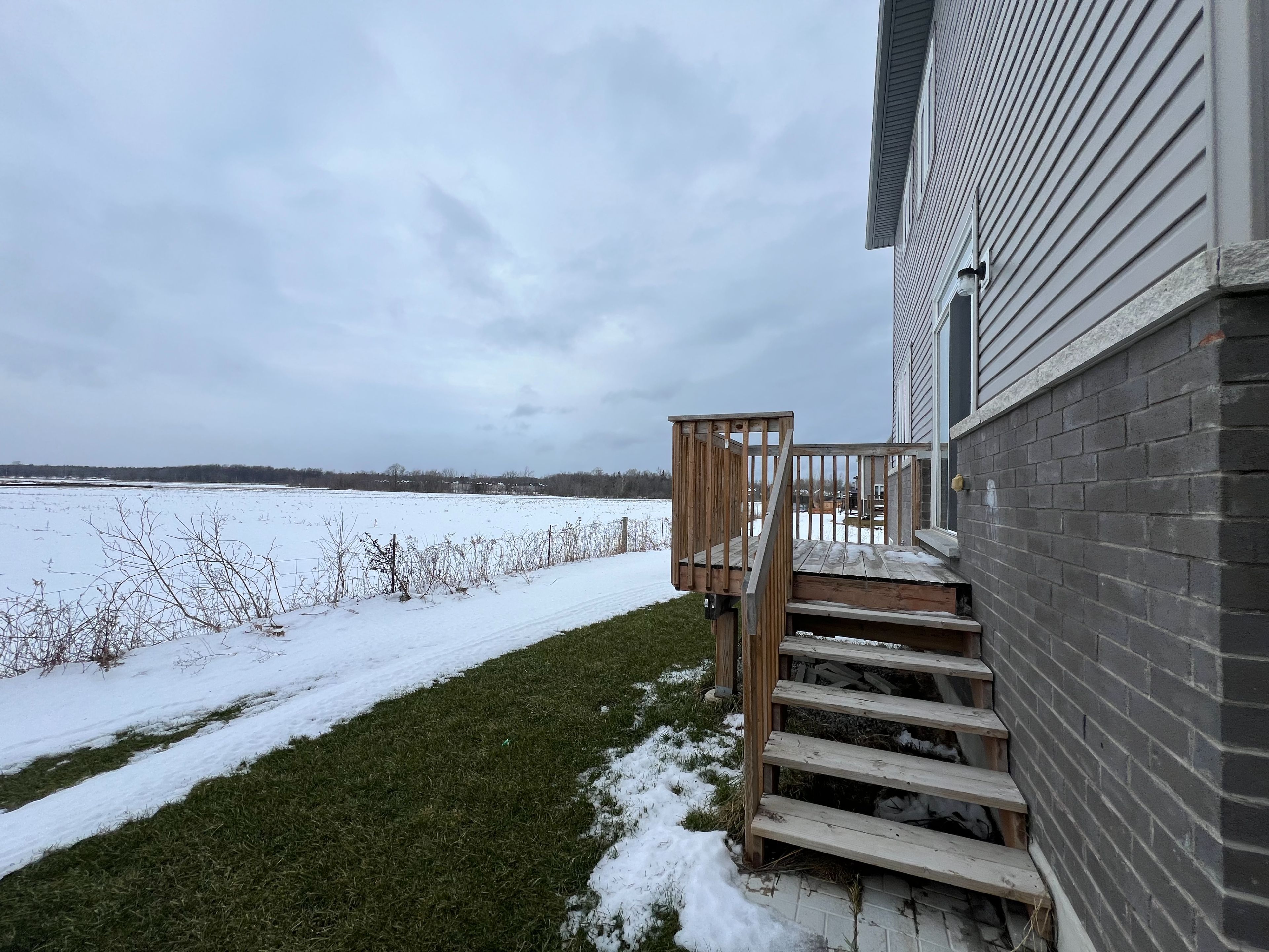 • Spacious backyard backing onto peaceful farmland for privacy.