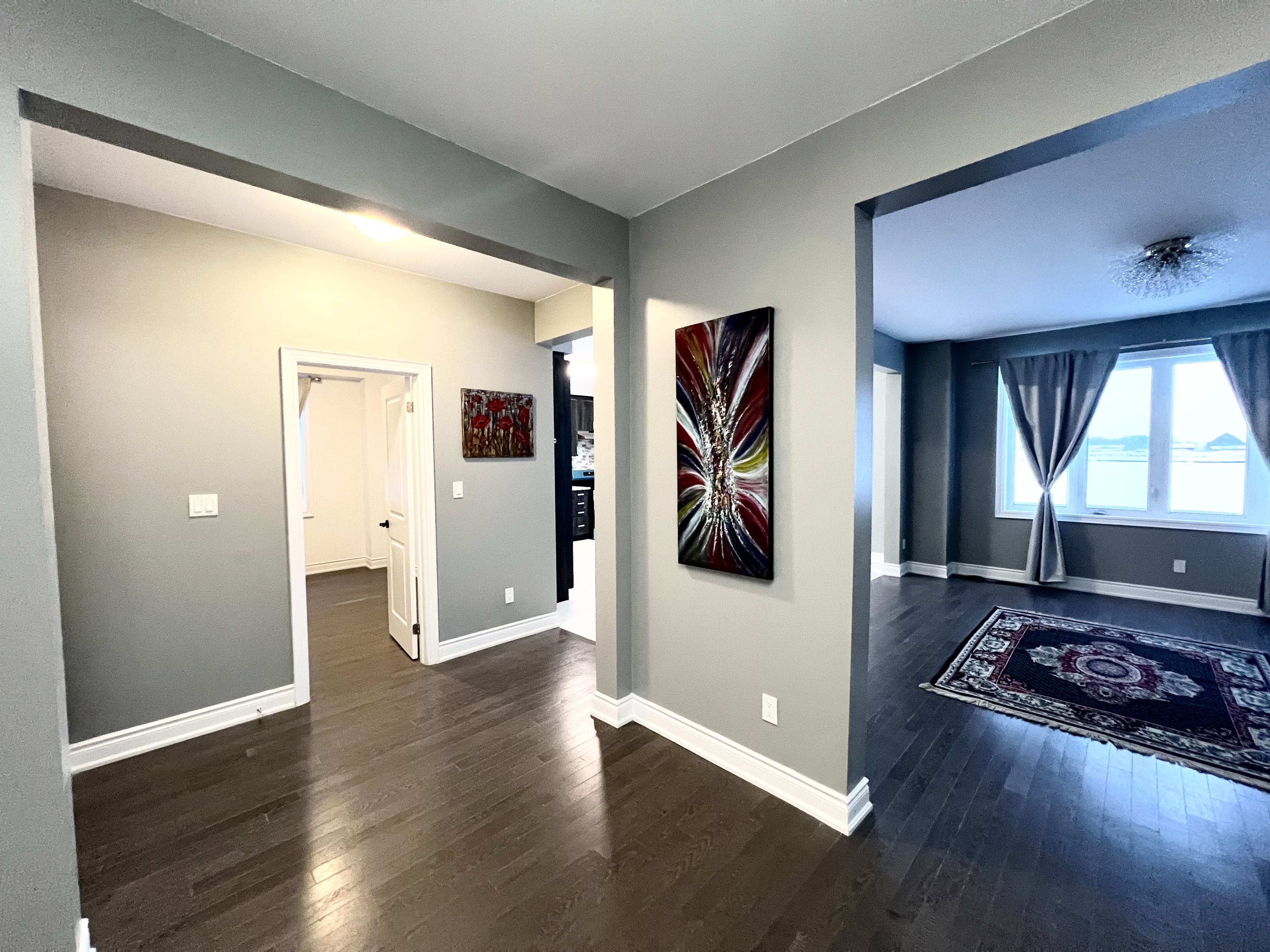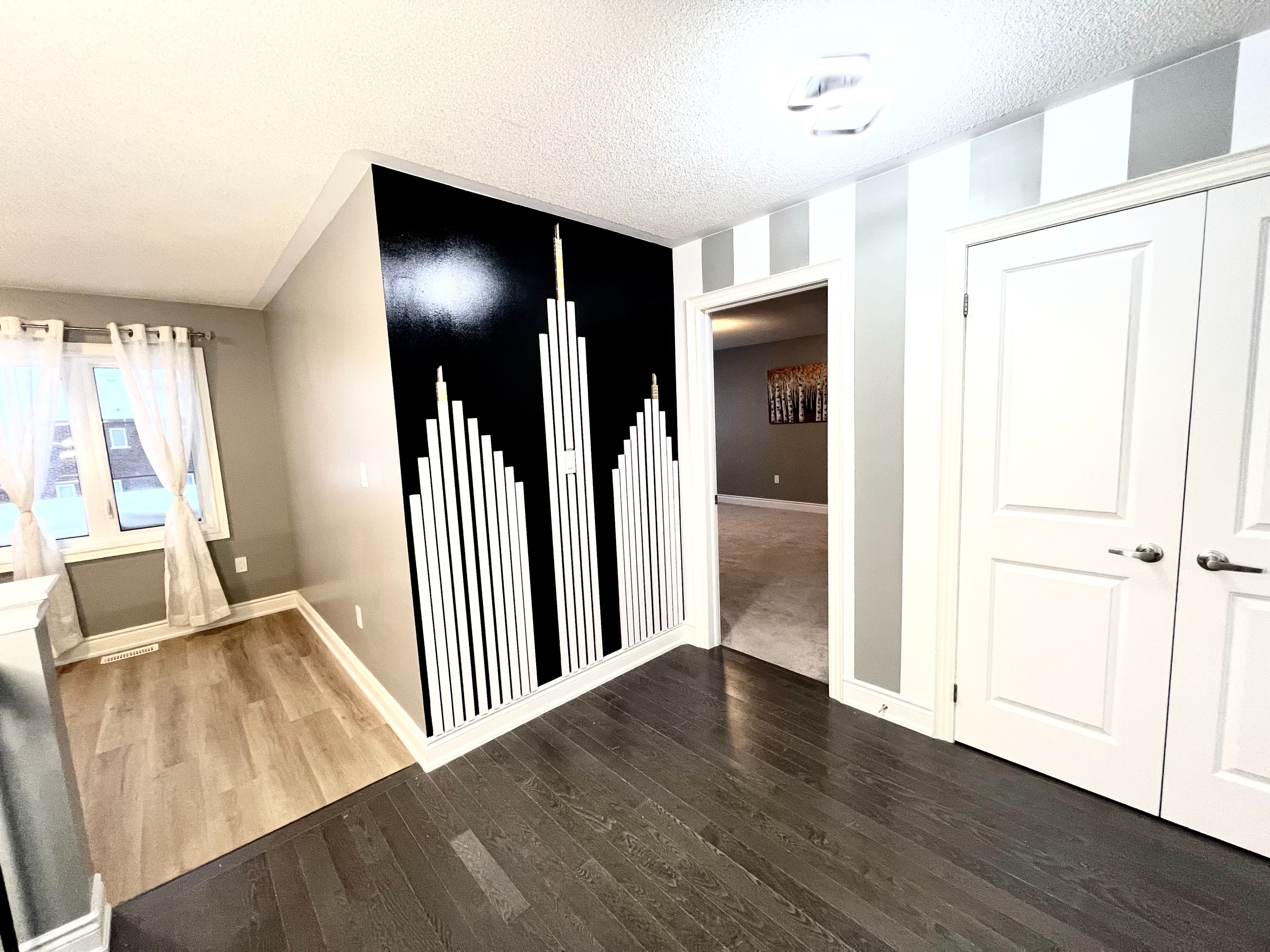 Absolutely stunning gorgeous breathtaking detached 4 bedrooms home, only 4-years young. $80,000 in upgrades. Features 9 ft ceilings on first floor, one of the best-designed models on the street. Completely renovated/ upgraded 4 bedroom family home, backyard backing onto farmland . Nestled on a premium lot features inviting foyer with double entry doors; open concept main floor; plank hardwood floors throughout 1st floor, large windows bring in lots of natural lights; 4 bathrooms. On 2nd floor; 5 walk-in closets; large gourmet kitchen with centre island and modern new backsplash , breakfast area with walkout to deck 13'x18'. Brilliant layout! , all new stainless steel appl-s and eat-in area; ss built-in dishwasher, 2 nd floor office/media/library room; master bedroom ensuite spa like & full wall glass shower stall. Walking closet & his & her walk-in closets; modern chandeliers in the house; iron pickets; main floor laundry; basement cold room; exclusions: all arts work on the wall, drive way for 4 cars, total 6 cars ((no sidewalk). Unique customized accent walls through all house. Looks like castle/museum . You need to see it to believe it.