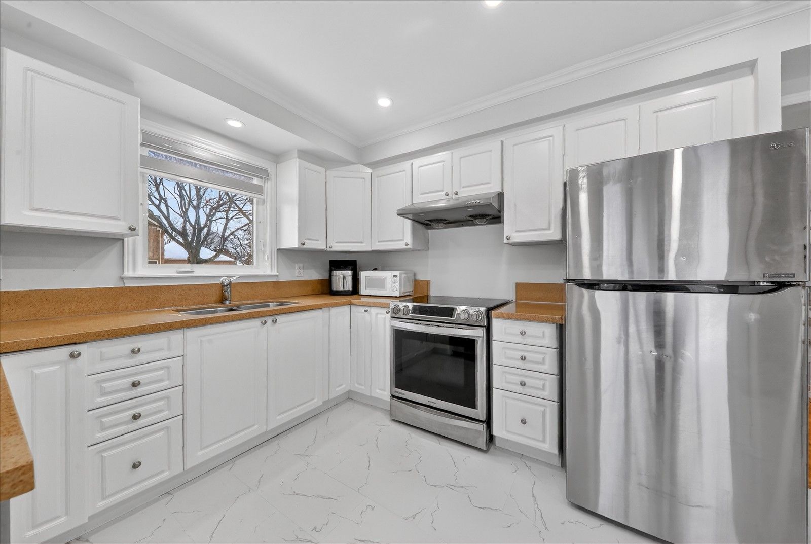 • Three spacious bedrooms and a fully finished basement for extra space.