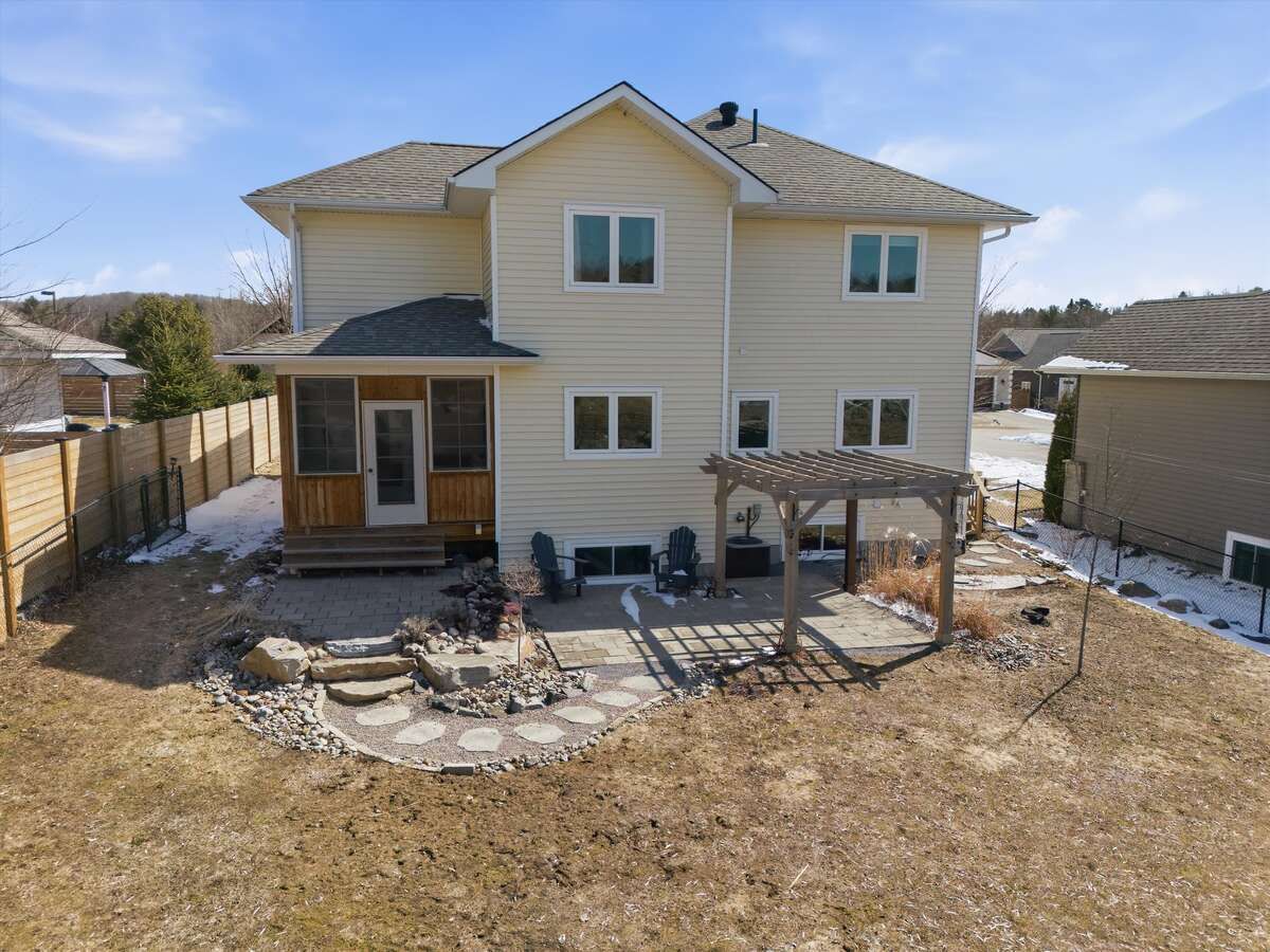 *** for more information, please click brochure button. *** welcome to your dream home in the heart of huntsville. Tucked into a quiet cul-de-sac in a beautiful, new family-friendly neighbourhood, this stunning two-story yellow home feels like something you always dreamed of. For those who love the outdoors, the property offers a abundance of natural beauty - from thoughtfully designed gardens to a graceful willow tree swaying in the backyard. Whether you're soaking in the peaceful surroundings or unwinding in your private muskoka room bathed in warm afternoon sun, this home invites you to truly relax and enjoy. Step inside to a bright, light-filled home that has been thoughtfully designed. Offering approximately 2,135 sq ft above grade, with 3+1 bedrooms. The spacious primary bedroom features a stunning ensuite and a generous walk-in closest, creating a true sanctuary. The main living space has high ceilings and a cozy gas fireplace which set the tone for an inviting yet elevated atmosphere - warm and intimate through winter months, and open, airy, and sunlit in the summer. A dedicated private office adds both function and flexibility for modern living. The custom kitchen, complete with granite countertops and quality finishes, is perfect for gathering, cooking, and making memories. The newly completed basement offers exceptional additional living space, with impressive ceiling height, a stylish built-in electric fireplace, and a large open concept area ideal for entertaining, recreation or family living. A private guest room enhances functionality, while flexible design allows you to customize the space to meet your needs. Location truly shines here - you are minutes from downtown huntsville, walking distance to a wonderful primary public school and local hospital. This home is surrounded by the best of muskoka living with arrowhead provincial park, golf courses, ski hills, walkable children park and sports court.