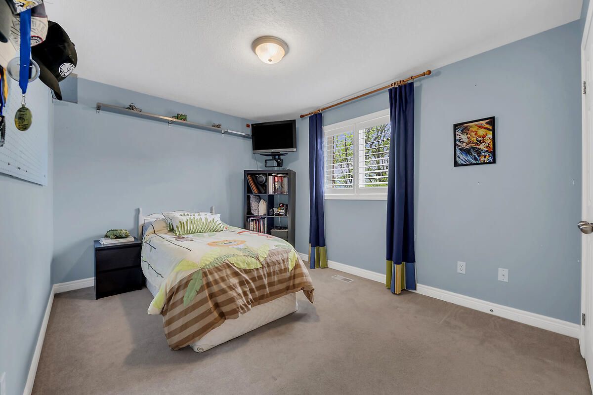 Seize the opportunity to live in this highly desired west mountain neighbourhood. This home boasts over 3,400 square feet of living space and is situated on a corner lot in a quiet court. Close to all amenities including schools, parks, shopping, recreation and highway access. Great for multi-generational families, this home has plenty of room to spread out with the benefit of separate living spaces. Enjoy the elegance of the open concept design with grand 17 ft ceilings, palladium window and a spiral staircase. The renovated gourmet kitchen (2020) has an oversized island with granite counters, spacious breakfast bar, stainless steel appliances and extensive cabinetry. There is also a built in desk area which is great for multi-tasking throughout the day. Retreat to the upper level primary bedroom offering a 4 piece ensuite complete with soaker tub. There are 2 additional bedrooms, main bath and convenient laundry room on this level. The fully finished basement is great for family movie nights and offers a large recroom, spacious bedroom and new 3 piece bath. The rear yard is conveniently accessed from the kitchen and has several different areas for recreation and entertaining including a stunning outdoor fireplace. A gazebo covers the sitting and dining areas and surrounded by lush, mature gardens. The yard is complete with veggie garden and a large storage shed.