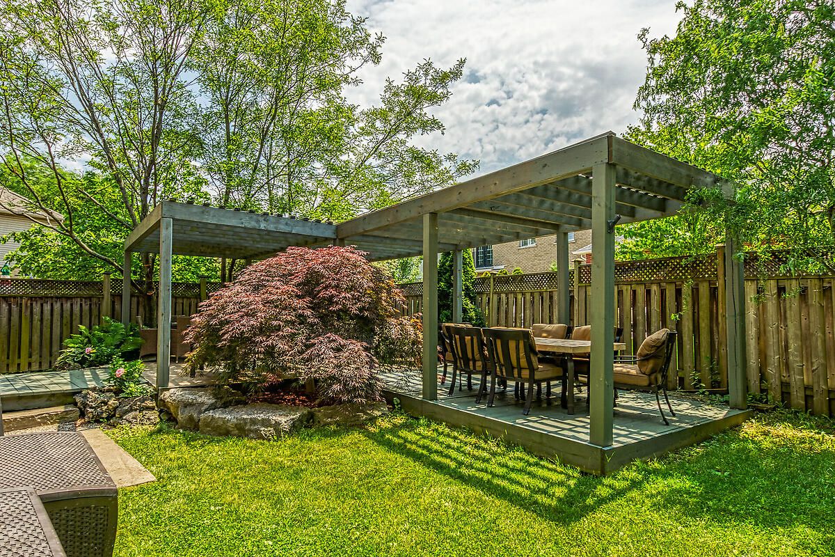 • Beautiful rear yard with outdoor fireplace, gazebo, and veggie garden.