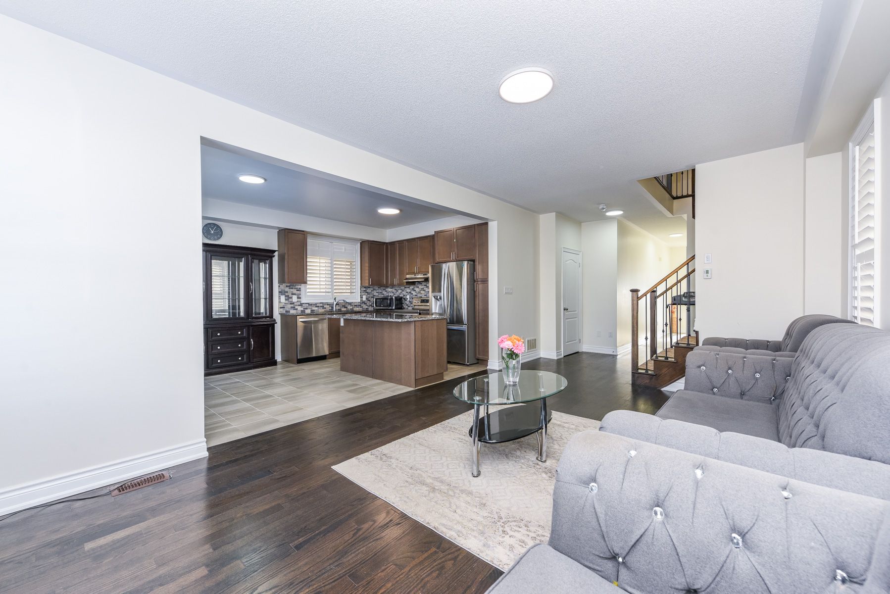 Welcome to the dartmouth by great gulf homes. This impeccably maintained residence offers over 2,600 sq. Ft. Of finished living space, blending designer finishes with a functional open-concept layout. The main floor features 9ft ceilings, rich engineered hardwood, and an upgraded chef's kitchen-perfect for entertaining. Retreat to the upper level via the oak staircase to find durable laminate flooring and a breathtaking primary ensuite. Every window is outfitted with premium california shutters. The professionally finished legal basement features a separate entrance, two bedrooms, a full washroom, and a kitchen, offering a private in-law suite as well as income potential. Ideally located steps from local parks and minutes from shopping and the 401/407.