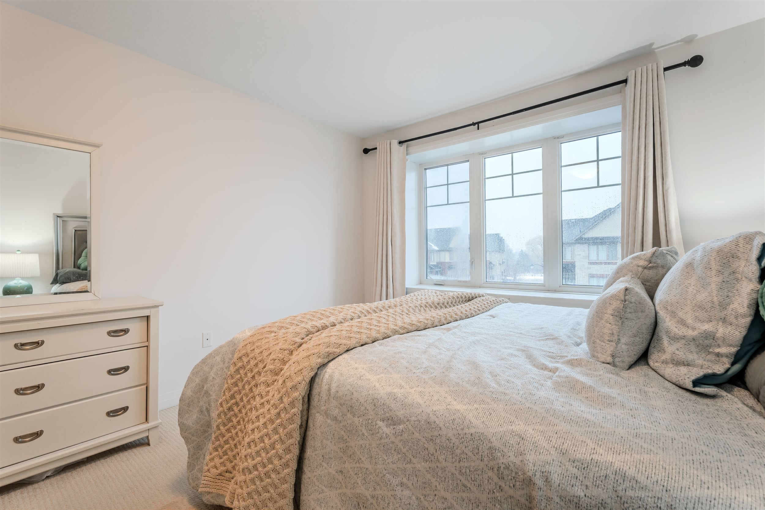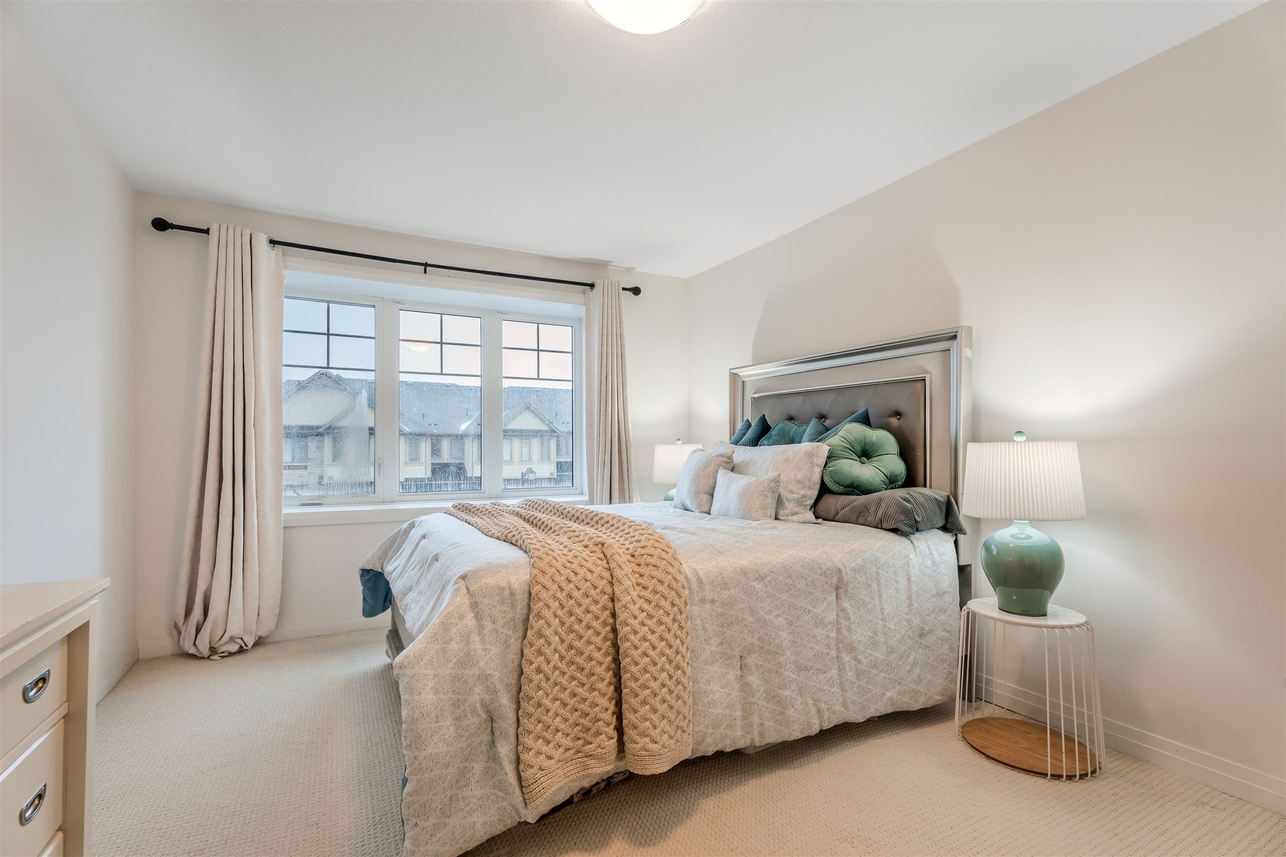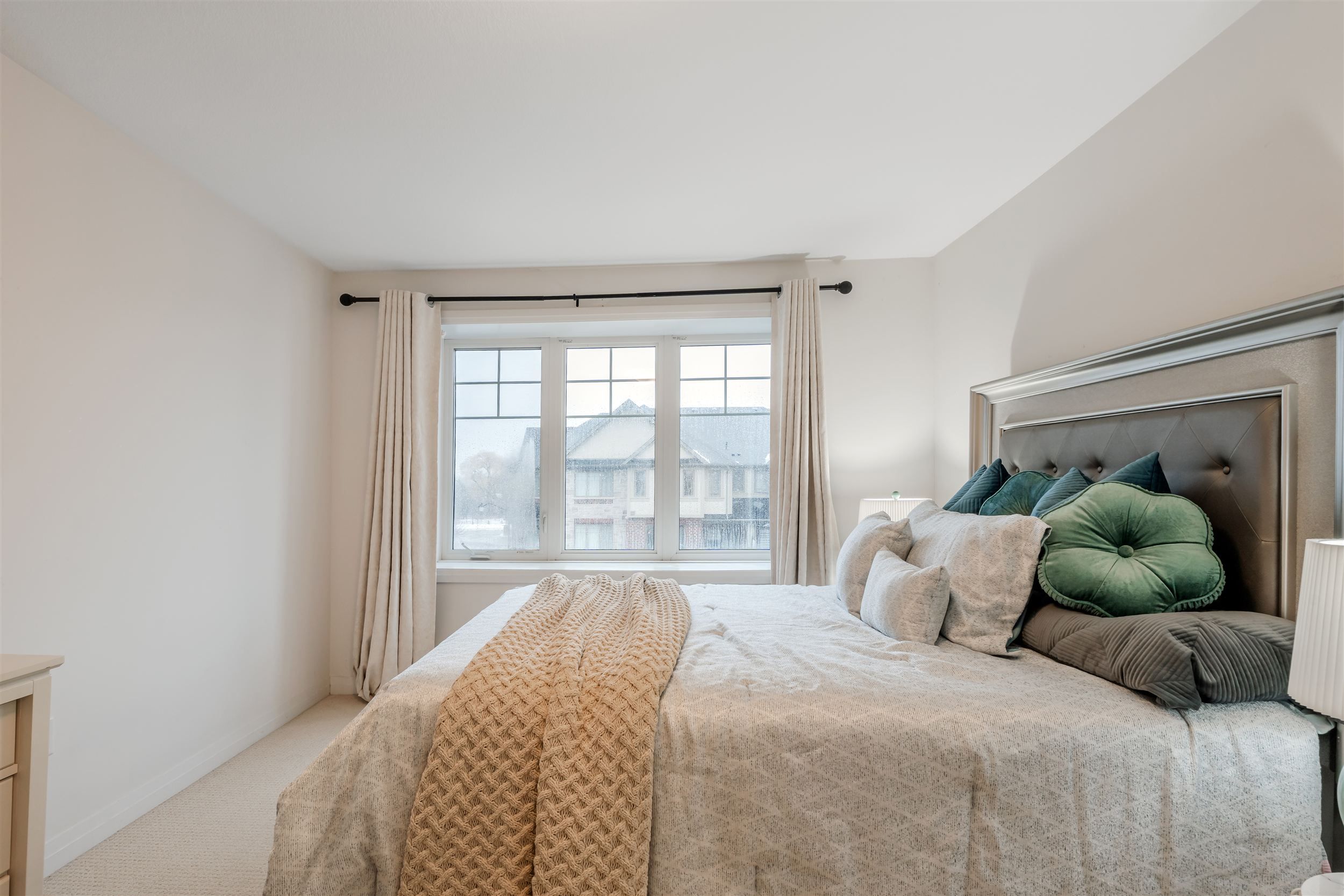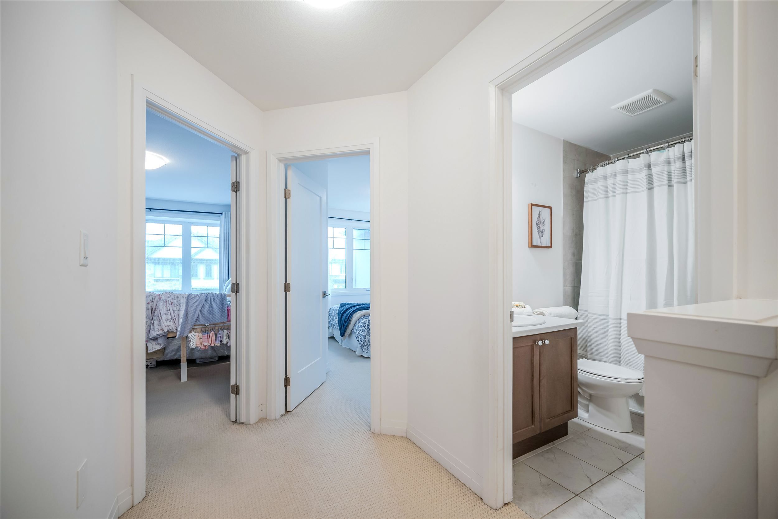 Welcome to this bright and beautifully maintained townhome in the highly desirable ancaster glen community. Featuring 9-ft ceilings main & second floor and a thoughtfully upgraded layout, this home offers both style and function. The spacious foyer welcomes you with convenient garage access and a 2-piece powder room. Head upstairs to the open-concept main living area where luxury hardwood floors, oversized bay windows, and abundant natural light create an inviting space perfect for everyday living and entertaining. Step out onto your private balcony - ideal for morning coffee or evening unwinding. The modern kitchen showcases two-tone countertops, a large breakfast bar overlooking the living and dining areas, and a generous pantry for convenient storage. Upstairs, the spacious primary bedroom features a charming bay window, large walk-in closet, and plenty of room to create your own retreat. Visitor parking is conveniently located directly in front of the unit, with additional parking nearby for guests. This bright, well-situated home is just minutes to schools, parks, shopping, public transit, and offers quick access to hwy 403 - perfect for commuters.