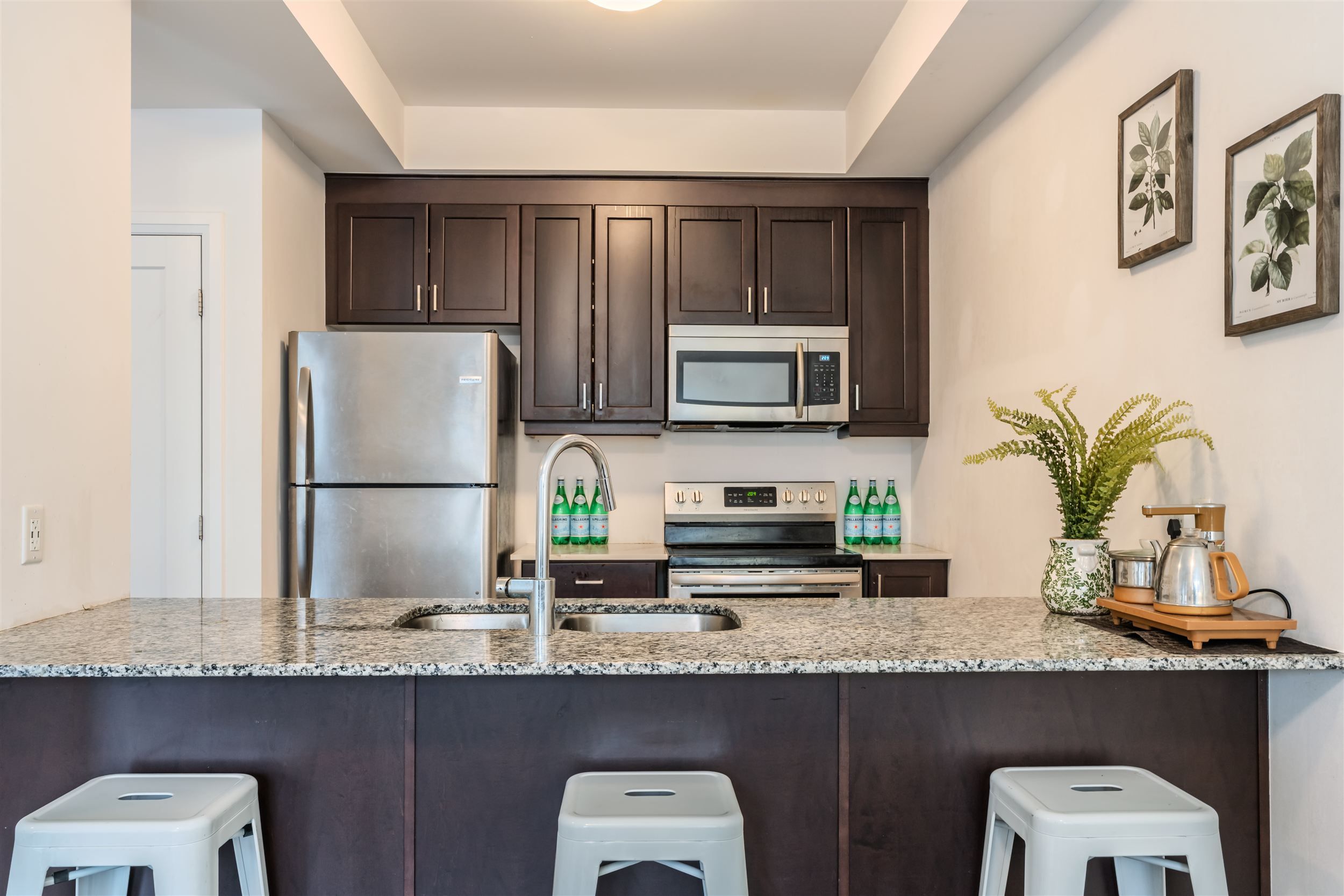 • Modern kitchen with breakfast bar and generous pantry for storage.