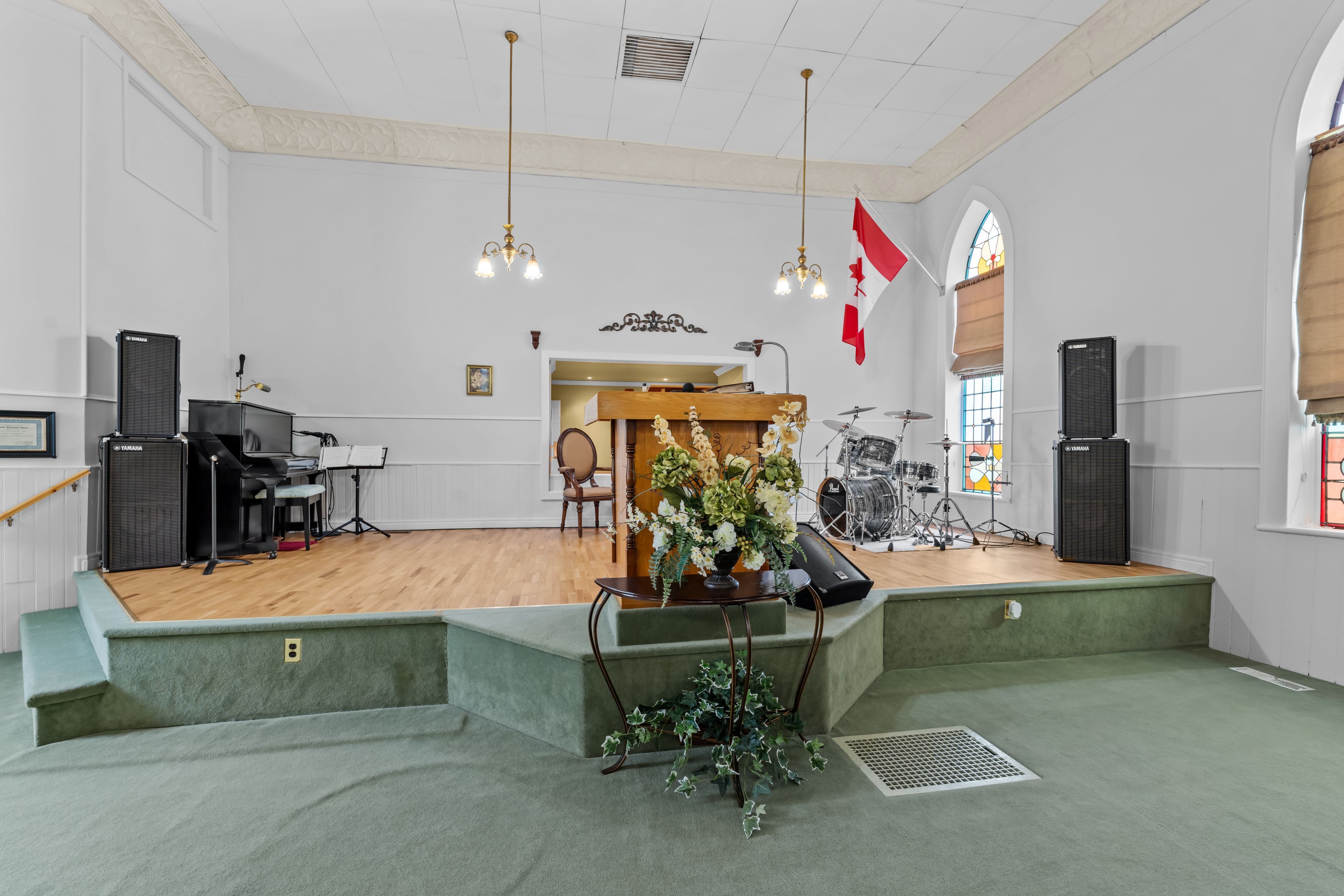 Welcome to a truly unique opportunity to own a piece of history in the vibrant heart of tamworth. This exceptional all-brick church, steeped in character and charm, is ready to embark on a new journey with its future owners. Whether you envision running it in its continued use or transforming this magnificent space into your dream home, the possibilities are boundless. As you enter, be captivated by the breathtaking high ceilings that create an open and airy atmosphere, complemented by the mesmerizing stained glass windows that infuse the space with colorful, ethereal light. The expansive main floor offers a generous canvas for your imagination, providing ample room to bring any vision to life, from a unique residential haven to a thriving community hub. Descend to the finished lower level, where additional versatile space awaits your creative touch. Complete with a fully equipped kitchen and two half baths, this area offers incredible potential for further expansion, entertaining, or converting into a cozy retreat. Nestled in a prime location, this property is conveniently close to all amenities, offering easy access to local shops, restaurants, and schools. Embrace the tranquility of nearby beaver lake, perfect for leisurely swims and outdoor activities. This beautiful church is the perfect canvas for your dreams to become reality. Schedule a viewing today and imagine the future that awaits you in this lovely space. New furnace dec 2025