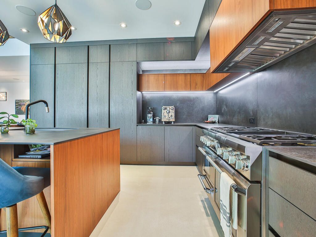 Location location! Contemporary meets mid-century modern in this custom built bone structure home with all the designer touches. Radiant floors throughout. Kitchen and all cabinets equipped with scavolini. Entertain in the gourmet kitchen using luxury appliances including professional range with steam oven and warming drawer, built-in fridge, freezer, dishwasher and microwave drawer. Custom solid slab laminam countertops and backsplashes throughout. Walk out to the garden oasis and take a dip in the salt-water pool with automation and swim jets or in the 6 person beachcomber hot tub. Home controls for hvac, lighting, door locks, home audio, security, window covers with touch screen and app control. A whole home backup generator runs entire house including air conditioners, pool, and hot tub.