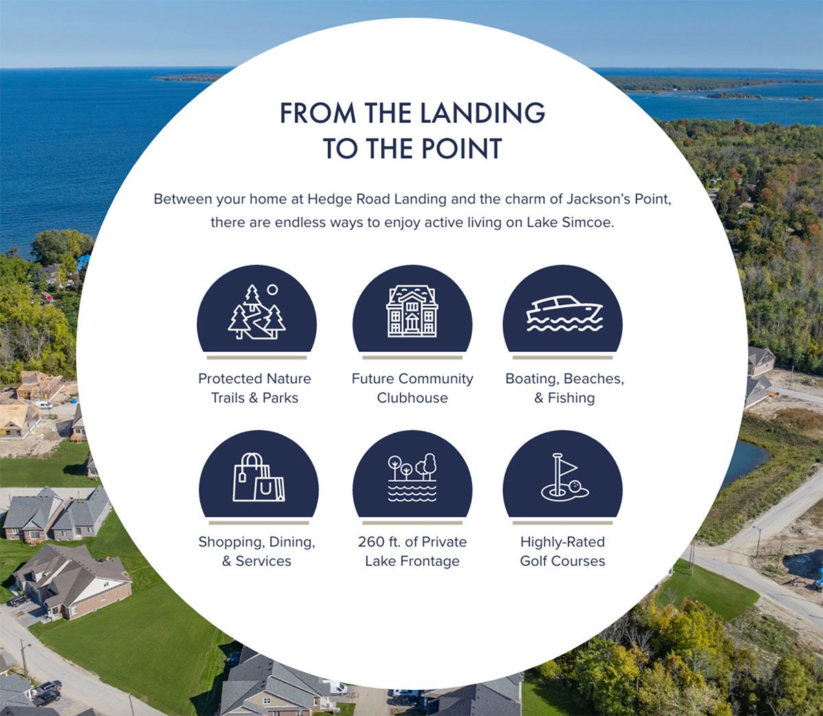 Welcome to 4 palmira drive the only 3 bedroom in the prestigious hedge road landing community, a distinguished lakeside enclave located along the shores of lake simcoe and moments from the briars golf club. Situated on a premium corner lot with the largest frontage in the community, this exceptional residence showcases the largest bungaloft model available, offering approximately 2,454 sq ft of thoughtfully designed living space. From the moment you enter, soaring ceilings and expansive open spaces create a sense of refined elegance. The gourmet kitchen is beautifully appointed with quartz countertops, an oversized centre island, premium stainless-steel appliances, and gorgeous cabinetry, ideal for both everyday living and stylish entertaining. The seamless flow into the sunlit great room and dining area creates an inviting atmosphere filled with natural light and elevated finishes. The main-floor primary suite offers a private retreat, complete with a spa-inspired five-piece ensuite featuring a deep soaker tub, glass-enclosed shower, and elegant detailing, along with a spacious walk-in closet. Main-floor laundry and abundant storage add convenience and functionality. The upper loft provides additional versatility with a spacious lounge overlooking the great room, a private guest retreat or study, and a full bathroom, perfect for hosting family and friends. Residents enjoy access to scenic walking trails, a private clubhouse, and a resort-style 20x40 in-ground pool. Amenities are included for a low monthly maintenance fee of $105. 00, while a shared 260-foot waterfront along lake simcoe offers breathtaking sunsets and peaceful lakeside moments. Located approximately one hour from toronto and within easy reach of richmond hill, markham, and vaughan, this exceptional property combines luxury, space, and an enviable lakeside setting in one remarkable offering.