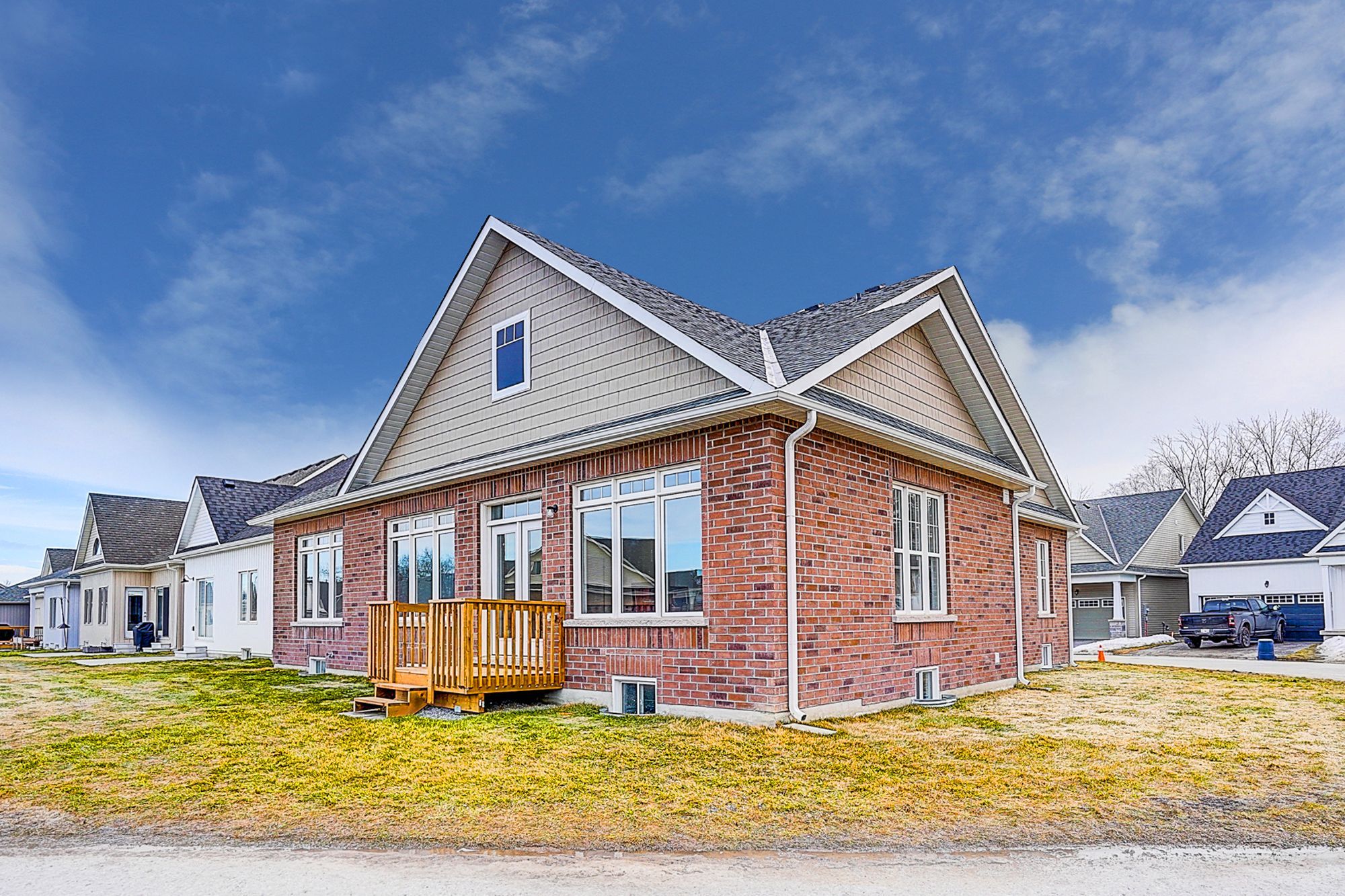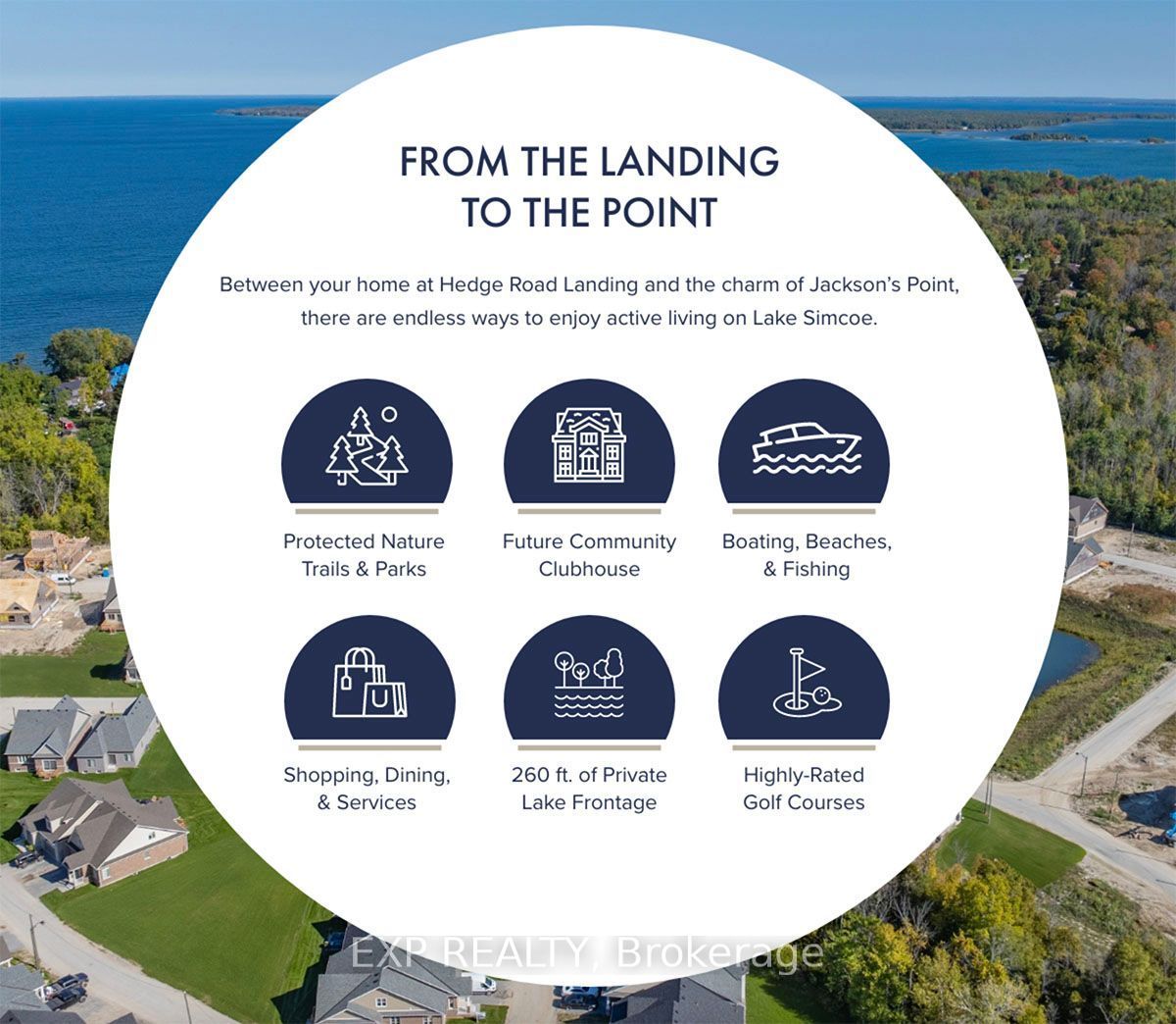 Welcome to 4 palmira drive, the only 3 bedroom bungaloft offered and saving you over $170,000 from the builder's price. Located in the brand new hedge road landing community, a distinguished lakeside enclave located along the shores of lake simcoe and moments from the briars golf club. Situated on a premium corner lot with the largest frontage in the community, this exceptional residence showcases the largest bungaloft model available, offering approximately 2,454 sq ft of thoughtfully designed living space. From the moment you enter, soaring ceilings and expansive open spaces create a sense of refined elegance. The gourmet kitchen is beautifully appointed with quartz countertops, an oversized centre island, premium stainless-steel appliances, and gorgeous cabinetry, ideal for both everyday living and stylish entertaining. The seamless flow into the sunlit great room and dining area creates an inviting atmosphere filled with natural light and elevated finishes. The main-floor primary suite offers a private retreat, complete with a spa-inspired five-piece ensuite featuring a deep soaker tub, glass-enclosed shower, and elegant detailing, along with a spacious walk-in closet. Main-floor laundry and abundant storage add convenience and functionality. The upper loft provides additional versatility with a spacious lounge overlooking the great room, a private guest retreat, and a full bathroom, perfect for hosting family and friends. Residents enjoy access to scenic walking trails, a private clubhouse, and a resort-style 20x40 in-ground pool. Amenities are included for a low monthly maintenance fee of $105. 00, while a shared 260 foot waterfront along lake simcoe offers breathtaking sunsets and peaceful lakeside moments. Located approximately one hour from toronto and within easy reach of richmond hill, markham, and vaughan, this exceptional property combines luxury, space, and an enviable lakeside setting in one remarkable offering. Move-in ready!