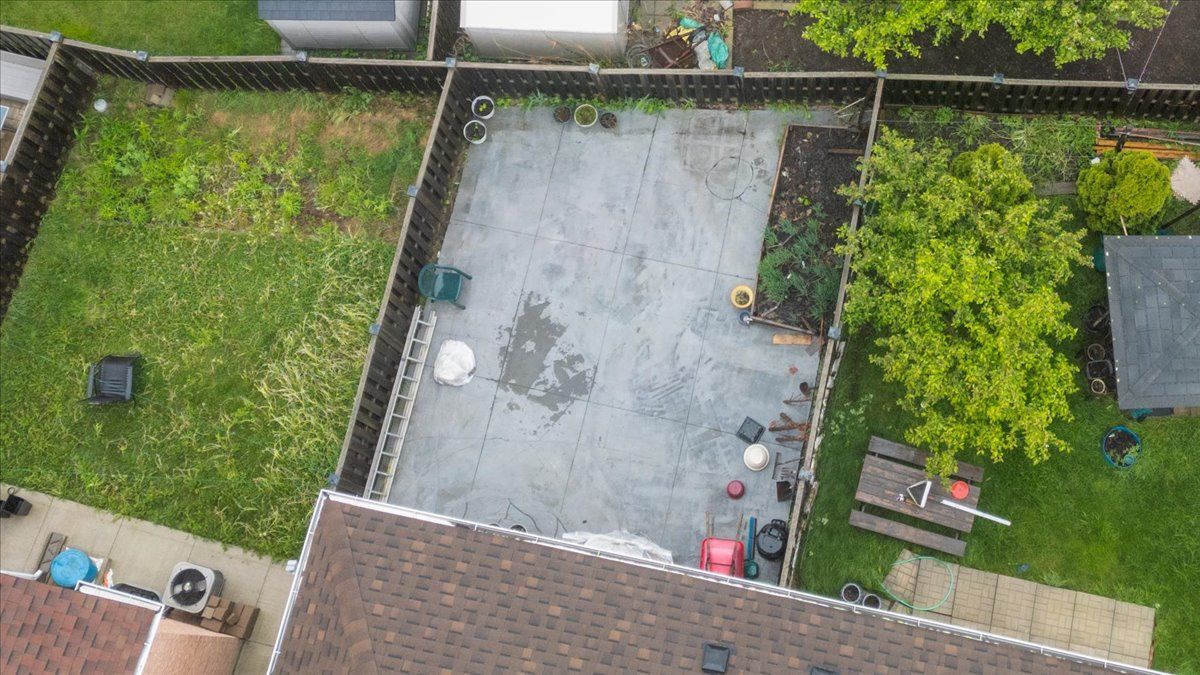 • Low-maintenance concrete backyard perfect for entertaining outdoors.
