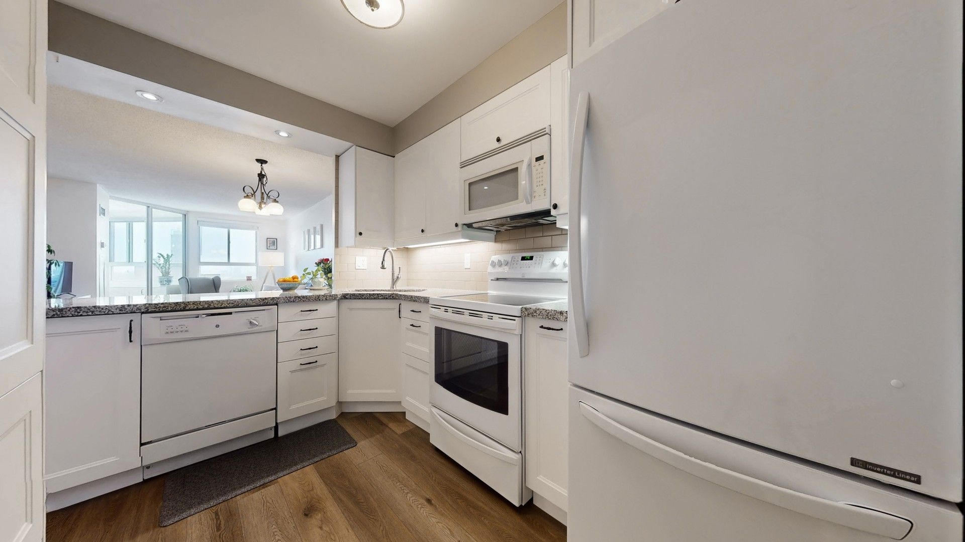 • Bright open-concept layout with new flooring and modern kitchen.