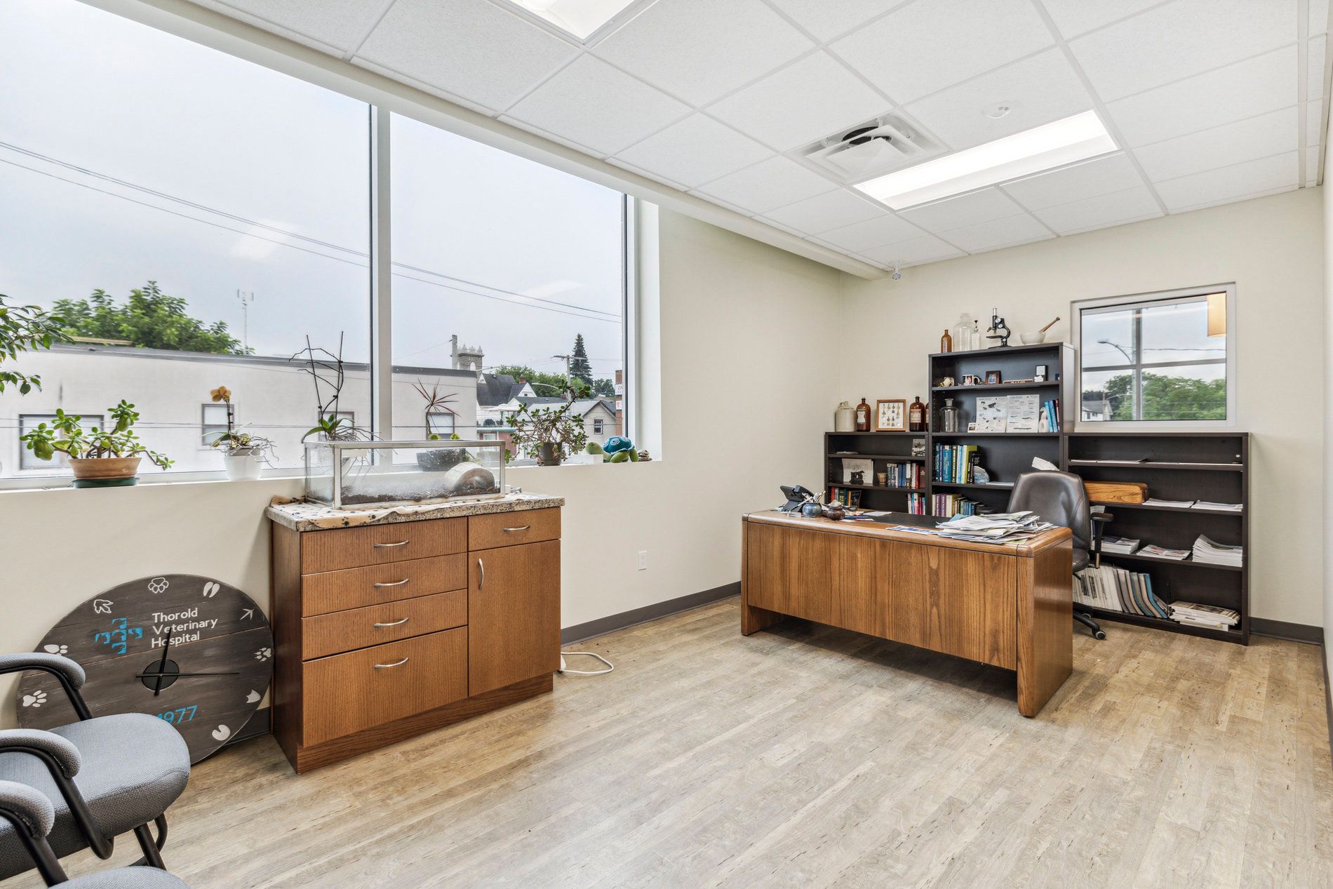 Discover an exceptional opportunity at 4 pine street north, a veterinary facility featuring premium finishes, durable millwork, and modern infrastructure ideal for animal cared operators and medical users. The building is equipped with high-speed wi-fi cabling, emergency lighting, and a private fenced lawn that supports controlled outdoor activities and programs. Inside, the property offers specialized ward rooms for dogs, cats and exotic pets, along with isolation rooms designed with tile surfaces, stainless steel amenities, and negative pressure ventilation. A fully equipped diagnostic lab, digital x-ray suite with dental imaging, multiple computer workstations, and dedicated shipping, receiving, and storage spaces further enhance operational efficiency and readiness. The second floor includes a private office, meeting room, open work area, and a furnished kitchen suitable for staff collaboration or future customization. Located minutes from st. Catharines and niagara falls, this versatile facility - complete with six exam rooms and professional oxygen and scavenging systems - presents a rare chance to acquire a modern, turnkey space suitable for veterinary practices, shelters, clinics, grooming establishments, or other adaptable uses.