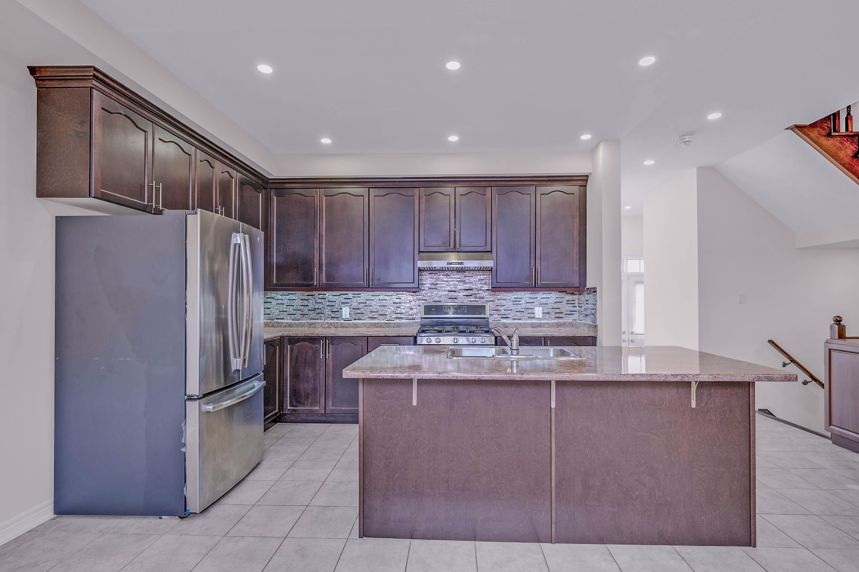 • Modern kitchen featuring an oversized island, great for cooking.