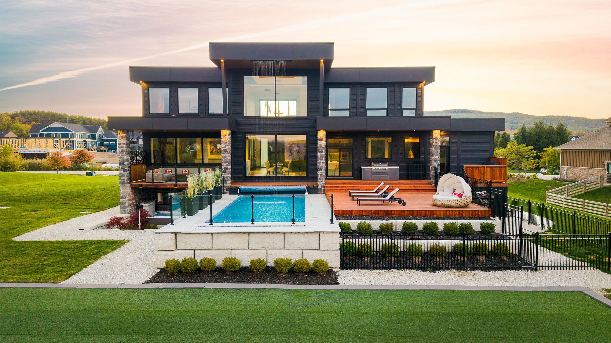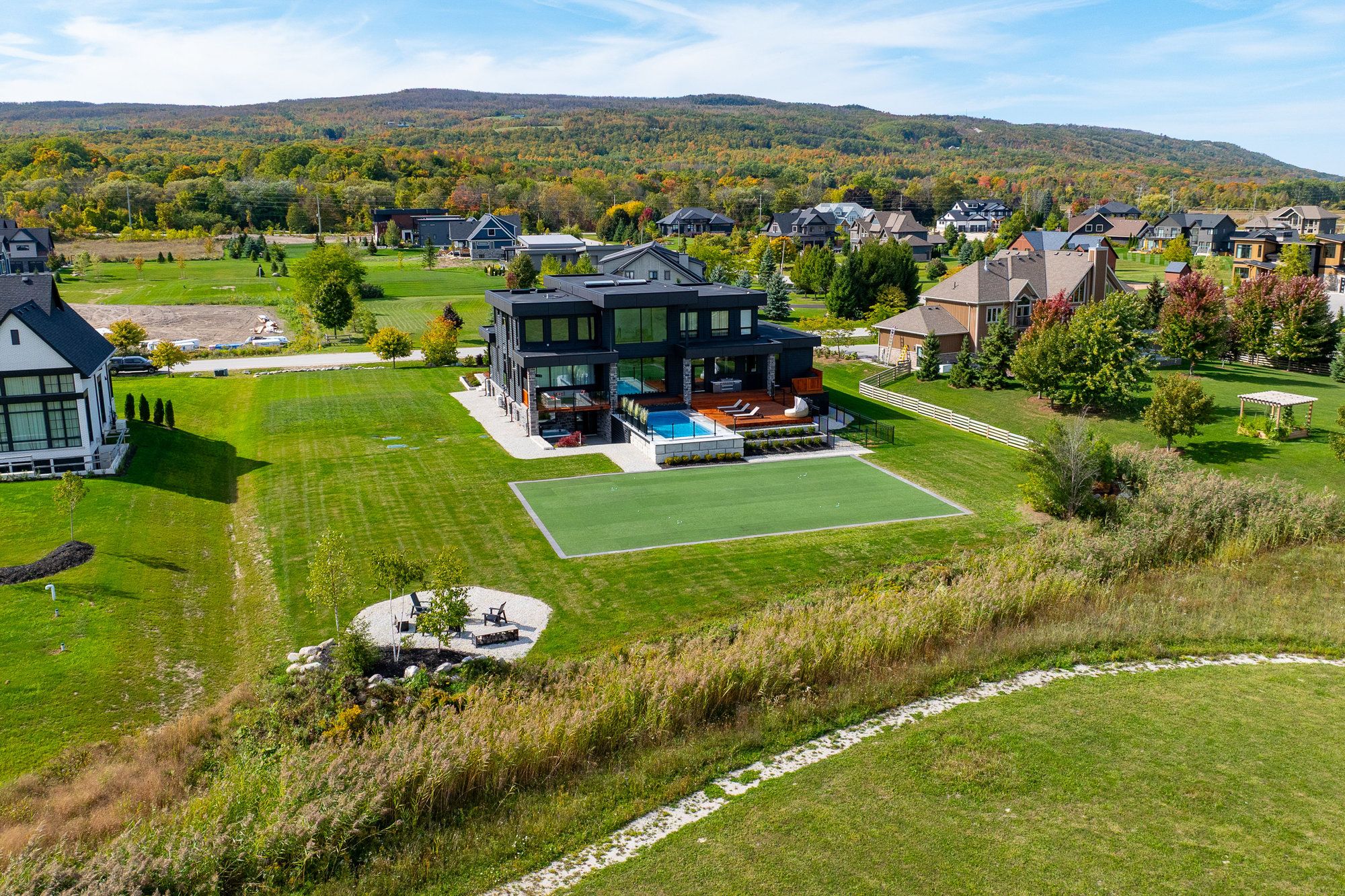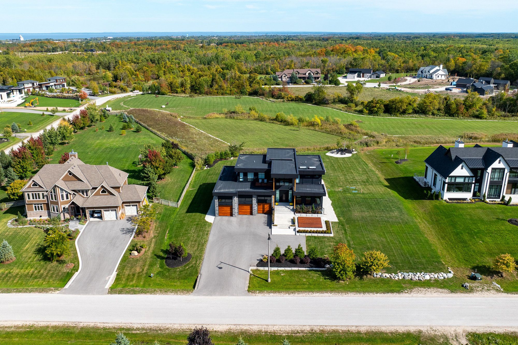 Welcome to the extraordinary turn key living experience offered by 4 raintree court, nestled in the heart of ontario's ski country. This luxurious home in the exclusive windrose estates combines elegance and sophistication with functional amenities for today's modern families. This custom-built home offers five spacious bedrooms, seven bathrooms, a home theatre, fully equipped gym, sauna, hot tub and heated pool over 8,600 square feet of interior space on a one-acre lot. High ceilings, custom lighting design, multiple skylights and walls of windows work with the wood accent walls to create a contemporary space that is flooded with light. In-floor radiant heating keeps the space cozy and warm throughout ski season as you sit by the fireplace watching the snow fall. The grand kitchen and dining area serve as the heart of this home, with soaring 23ft ceilings and the 10ft high by 16 ft wide sliding doors overlooking the backyard and 10-acre parkland beyond. Equipped with top-of-the-line appliances and designer counters and finishes, the kitchen is a perfect space for those who love to cook and entertain. The outdoor entertainment area includes a new outdoor kitchen, conversation area featuring patio heaters, heated pool and a waterfall that cascades from the upper roof into the pool. The property offers stunning mountain views of osler bluffs and blue mountain which can be enjoyed from throughout the home. Both resorts are less than ten minutes from the estate, as is downtown collingwood. Simcoe county is known for its vibrant community atmosphere and natural beauty. From hiking trails to farmers' markets and local festivals-there's always something to see or do here. Notably, clearview township allows you to snowmobile or side by side directly out of your own property to the trails located right in the neighbourhood. 4 raintree court is more than just a house-it's a lifestyle destination that combines stylish luxury living within your own personal sanctuary.