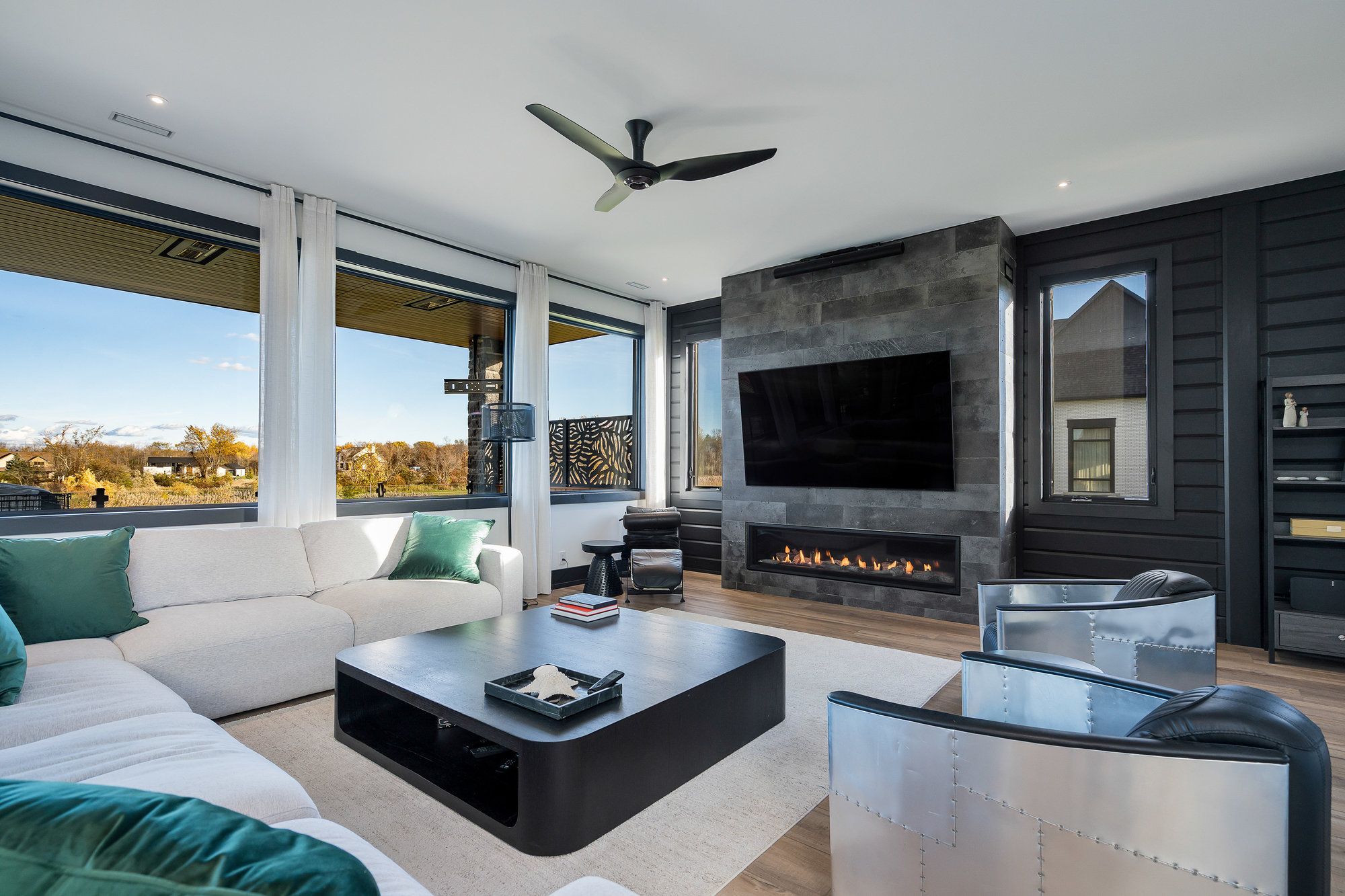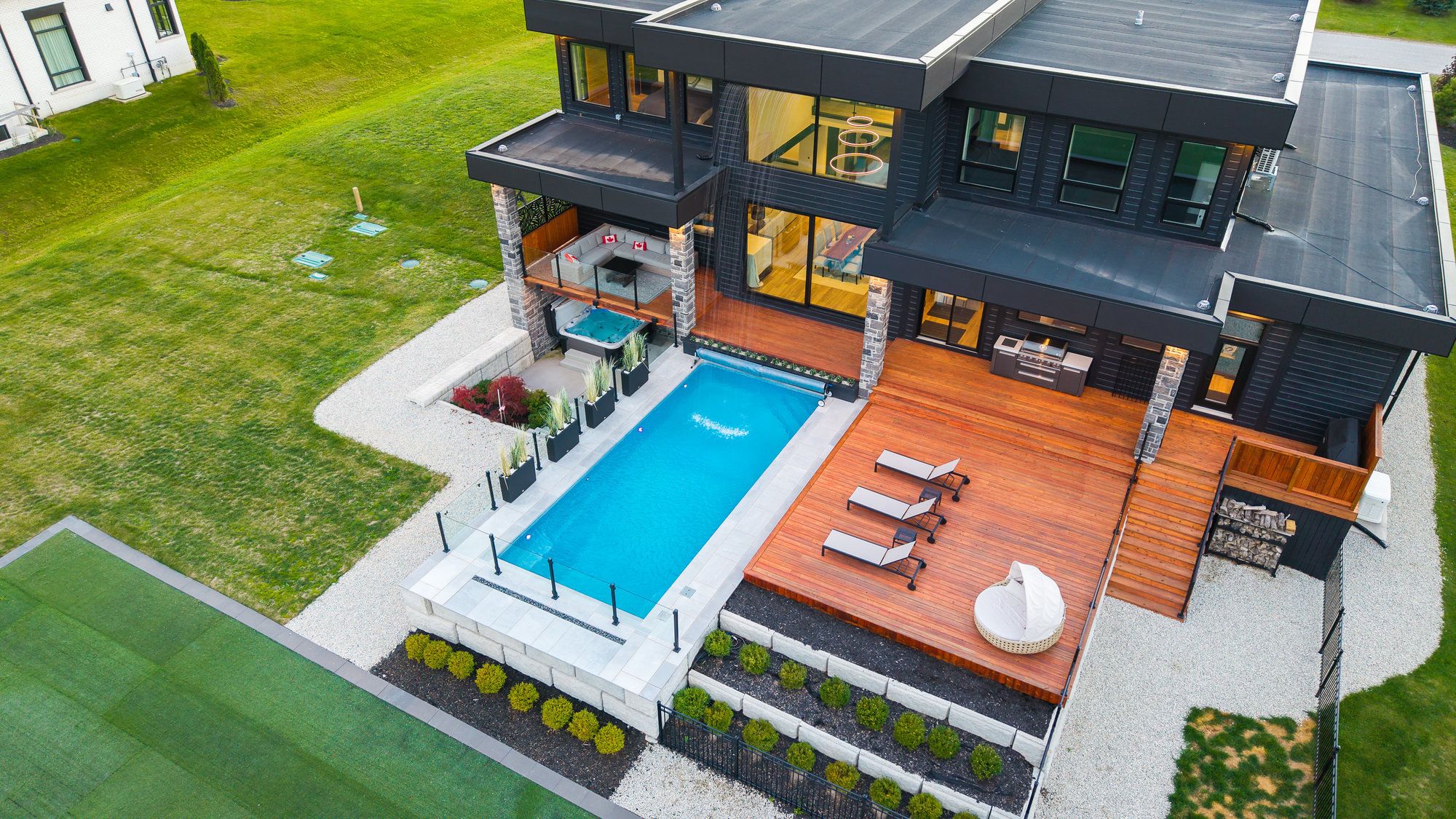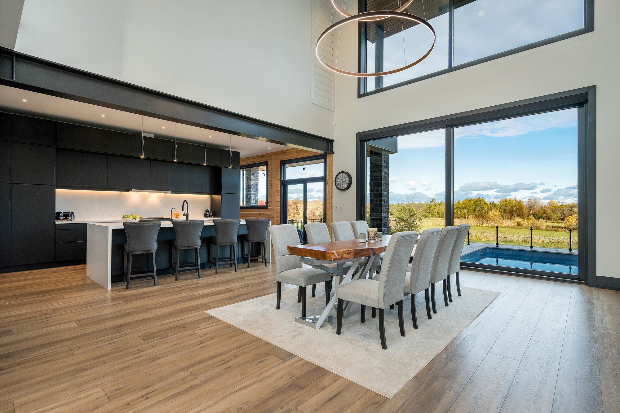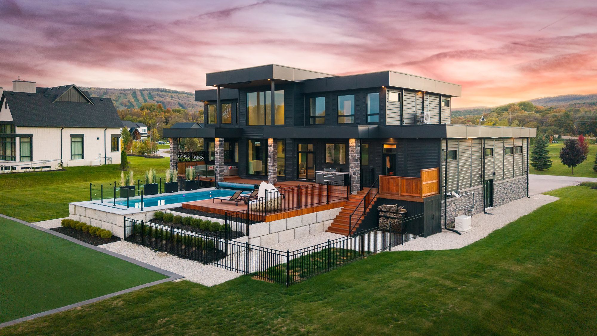 Welcome to the extraordinary turn key living experience offered by 4 raintree court, nestled in the heart of ontario's ski country. This luxurious home in the exclusive windrose estates combines elegance and sophistication with functional amenities for today's modern families. This custom-built home offers five spacious bedrooms, seven bathrooms, a home theatre, fully equipped gym, sauna, hot tub and heated pool over 8,600 square feet of interior space on a one-acre lot. High ceilings, custom lighting design, multiple skylights and walls of windows work with the wood accent walls to create a contemporary space that is flooded with light. In-floor radiant heating keeps the space cozy and warm throughout ski season as you sit by the fireplace watching the snow fall. The grand kitchen and dining area serve as the heart of this home, with soaring 23ft ceilings and the 10ft high by 16 ft wide sliding doors overlooking the backyard and 10-acre parkland beyond. Equipped with top-of-the-line appliances and designer counters and finishes, the kitchen is a perfect space for those who love to cook and entertain. The outdoor entertainment area includes a new outdoor kitchen, conversation area featuring patio heaters, heated pool and a waterfall that cascades from the upper roof into the pool. The property offers stunning mountain views of osler bluffs and blue mountain which can be enjoyed from throughout the home. Both resorts are less than ten minutes from the estate, as is downtown collingwood. Simcoe county is known for its vibrant community atmosphere and natural beauty. From hiking trails to farmers' markets and local festivals-there's always something to see or do here. Notably, clearview township allows you to snowmobile or side by side directly out of your own property to the trails located right in the neighbourhood. 4 raintree court is more than just a house-it's a lifestyle destination that combines stylish luxury living within your own personal sanctuary.