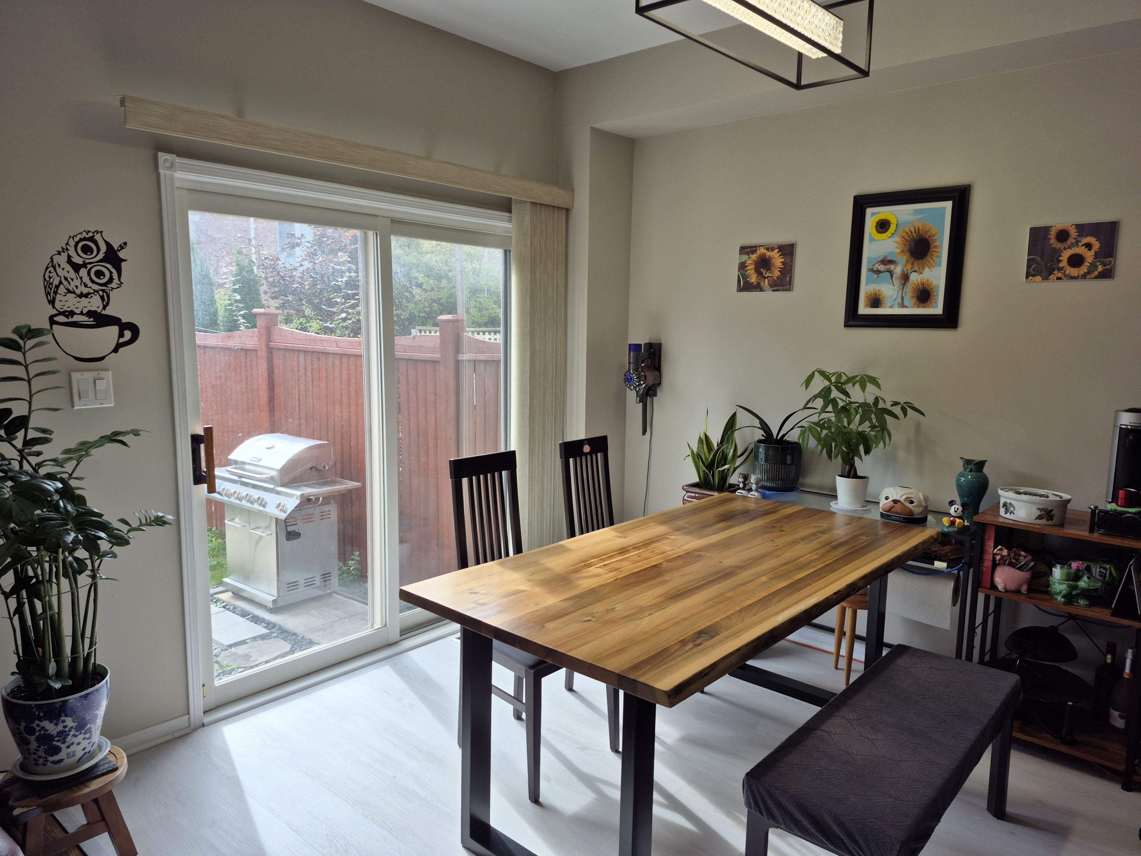 Dare to compare, freehold 2 story townhouse, clean and well maintained, very bright illuminated by an abundance of natural sunlight, main floor boasts an open concept layout, 18" vaulted ceilings at the foyer and stair case, renovated and upgraded kitchen with granite counter, tall cabinets and pantry, spacious breakfast area, oak staircase, pot lights, h/w floor throughout, new roof (2022}, tastefully landscaped backyard with patio area, direct access thru garage to the backyard, hwt is owned, walking distance to schools, nature trails & public transit, worry free- just move in and enjoy!!!