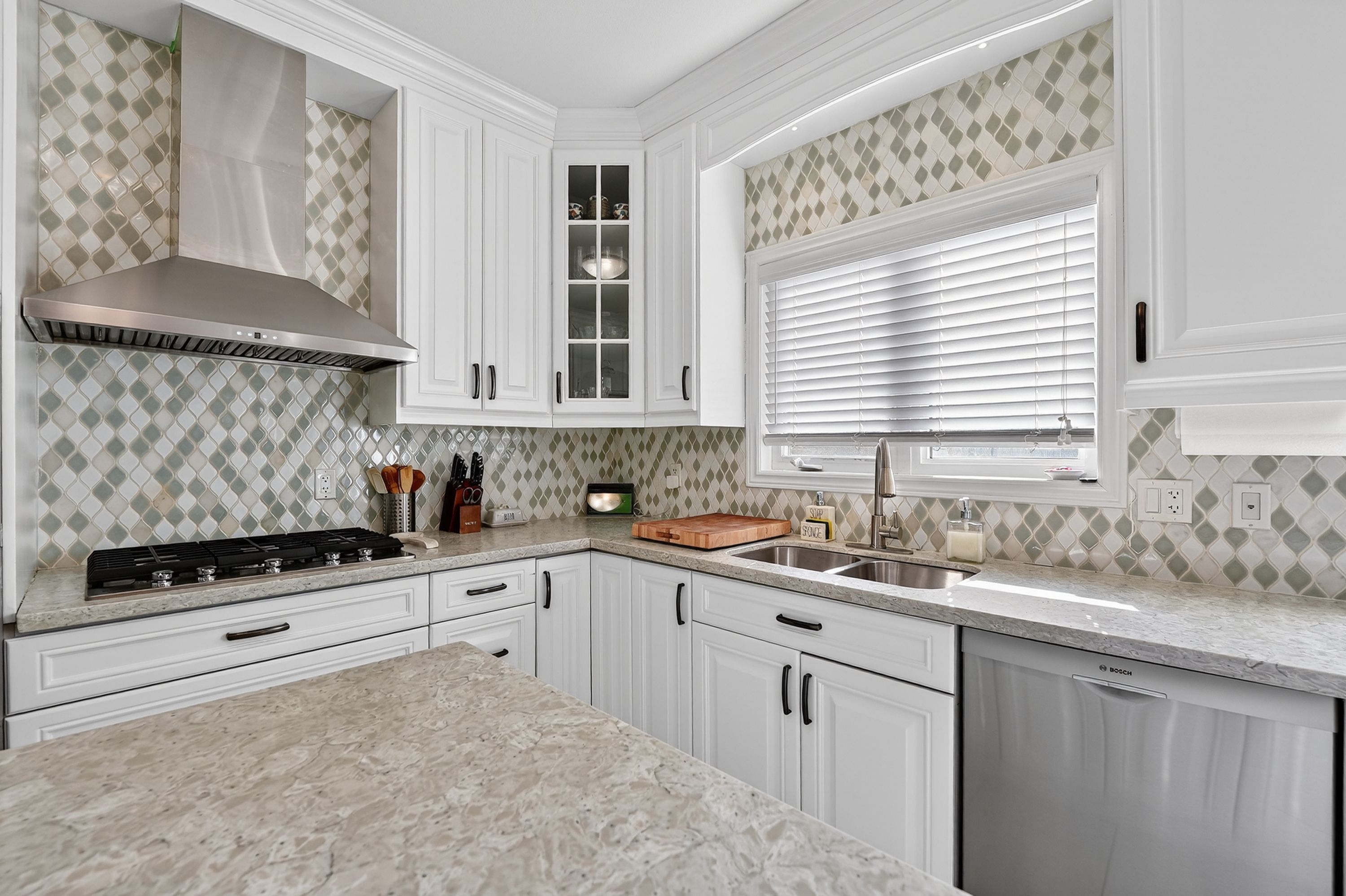 • Upgraded kitchen with custom cabinetry and plenty of natural light.