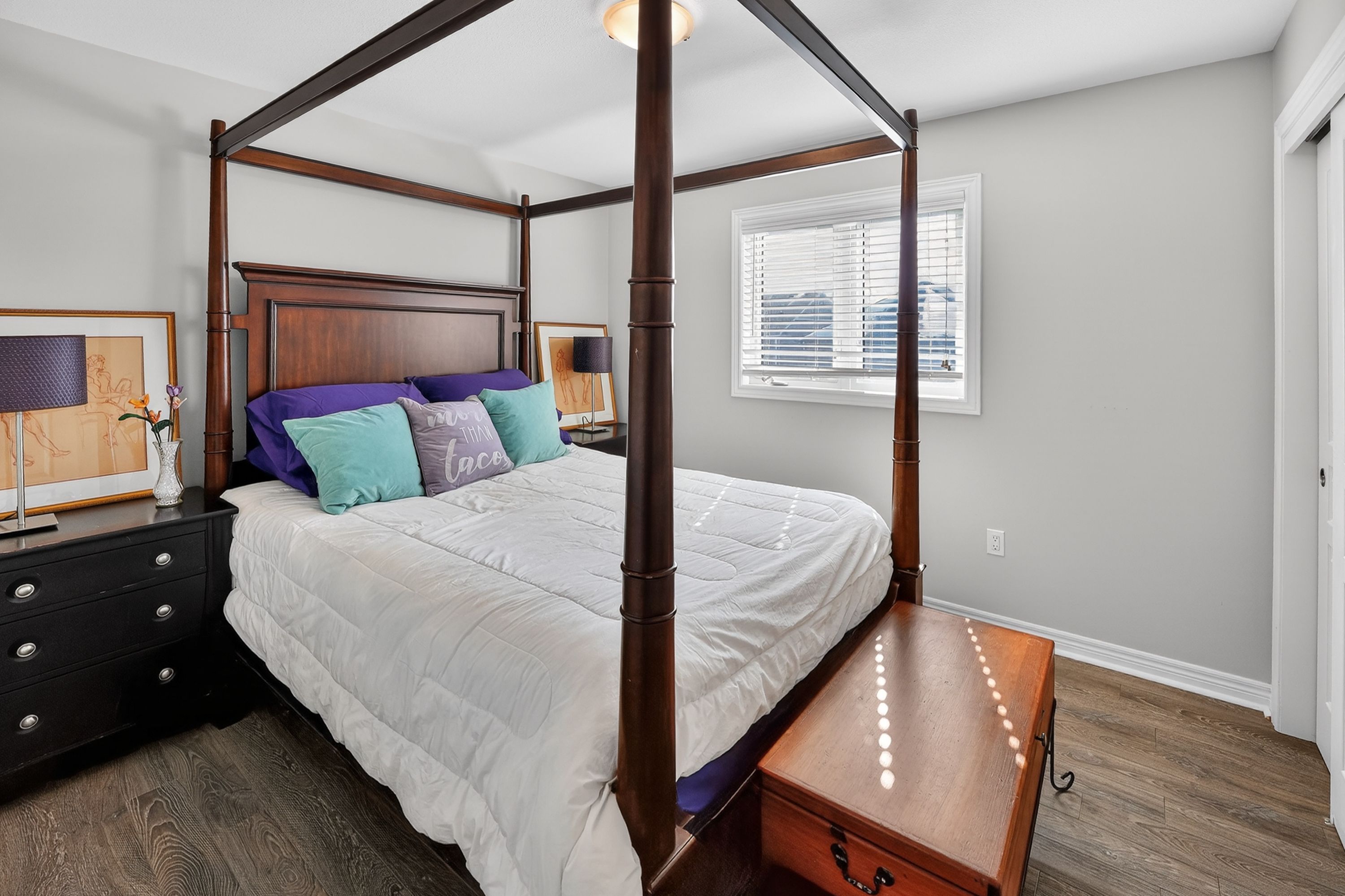 • Four spacious bedrooms and three and a half bathrooms for comfortable living.