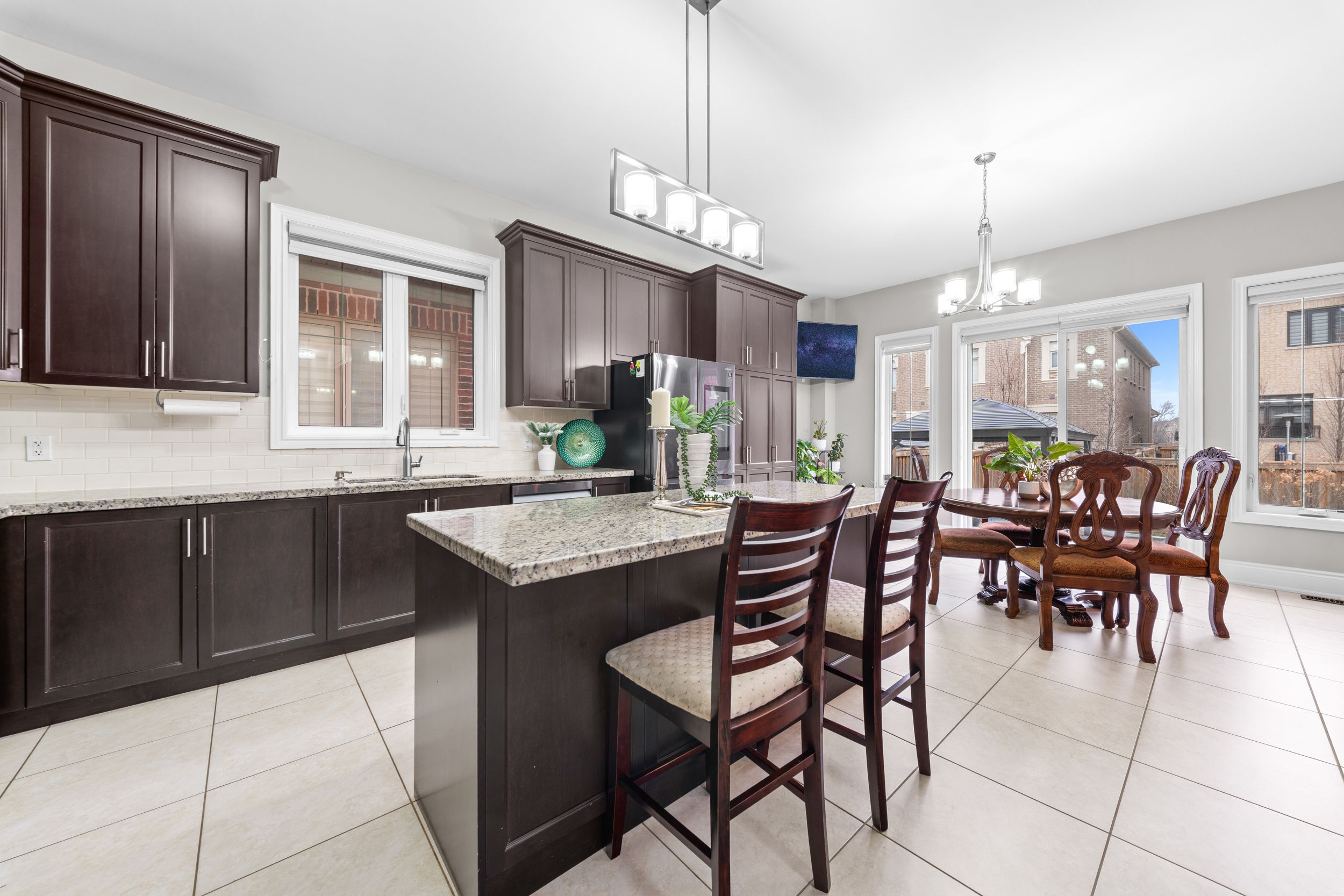 • Chef-inspired kitchen features granite countertops and a beverage bar for hosting.