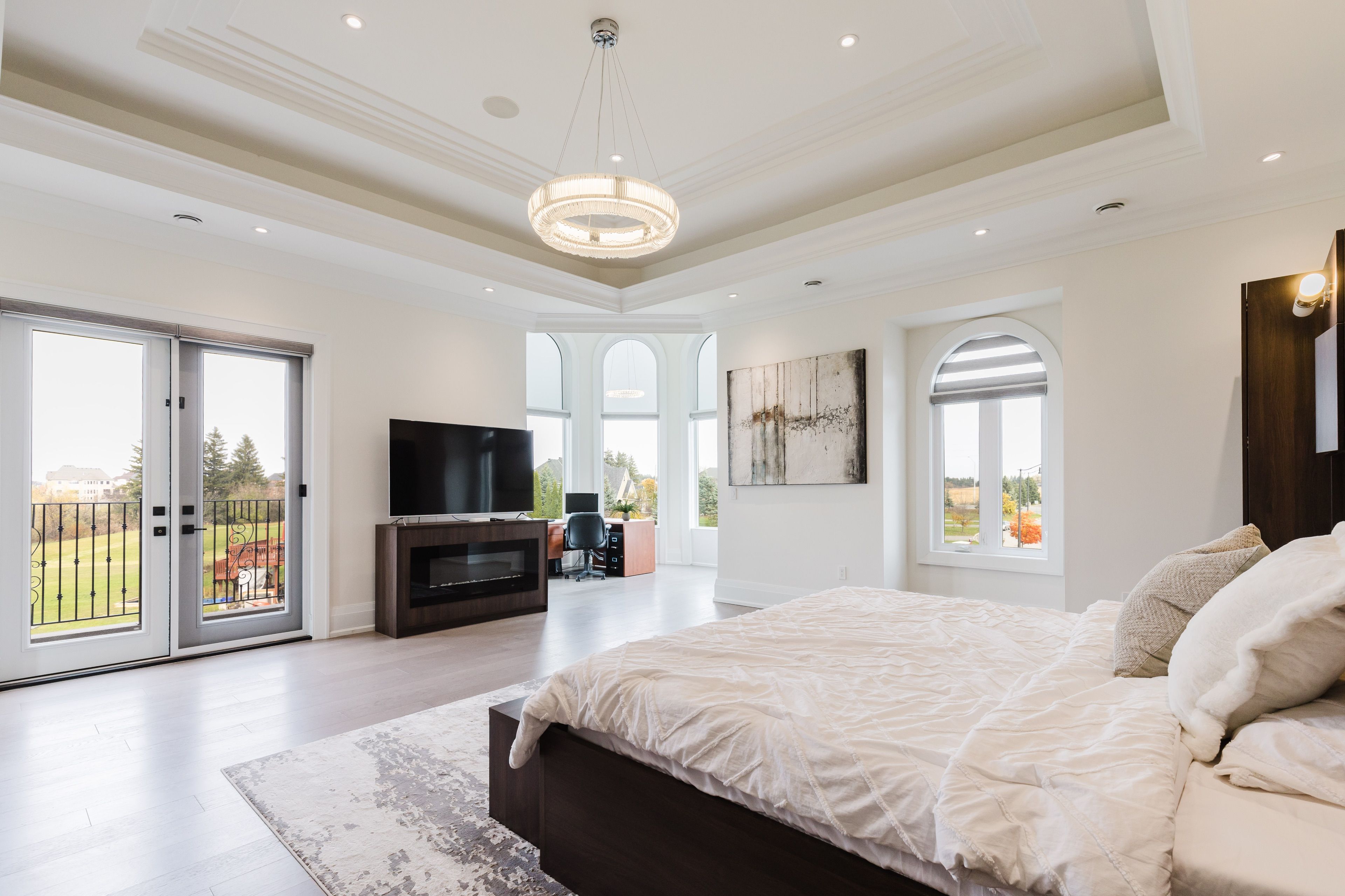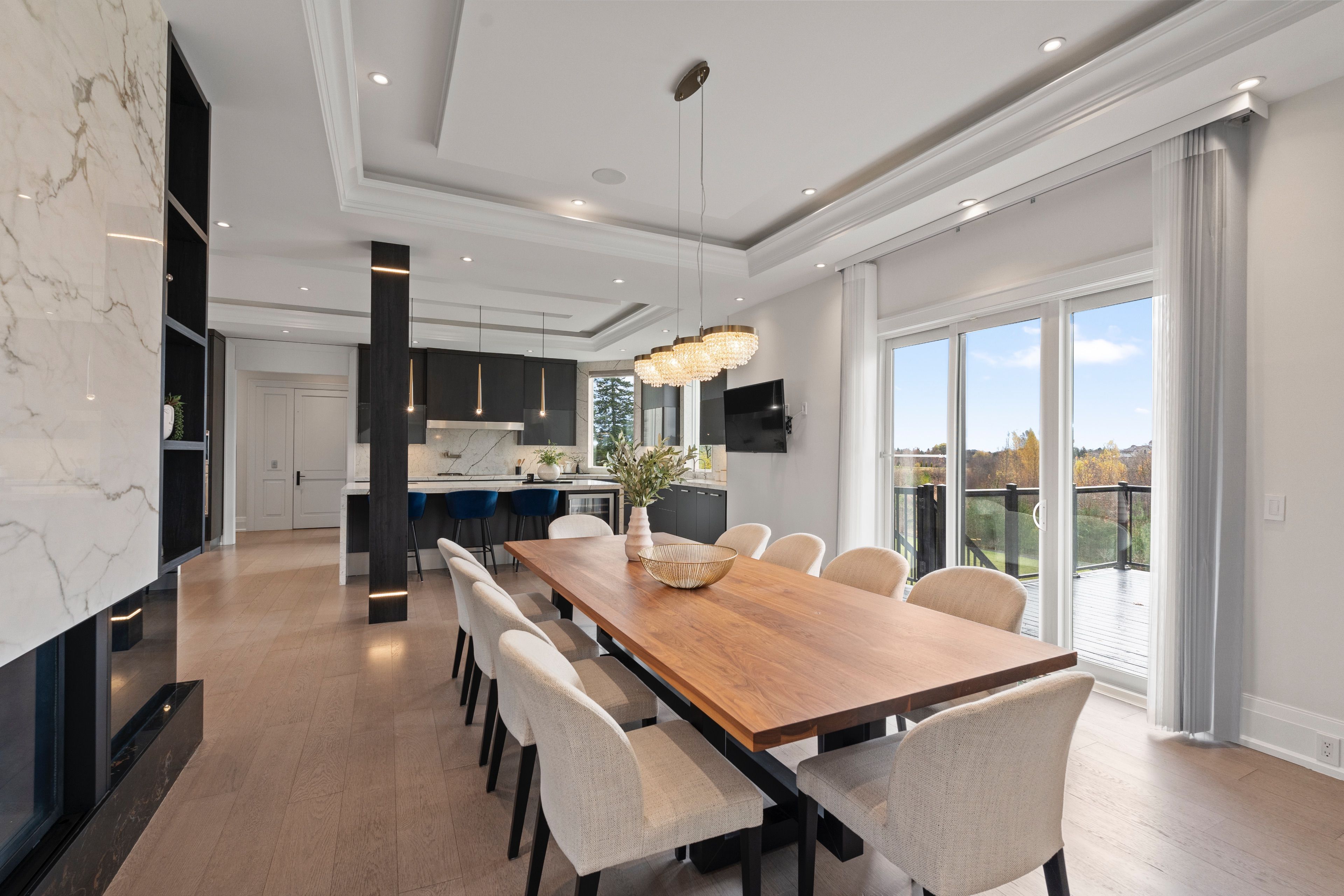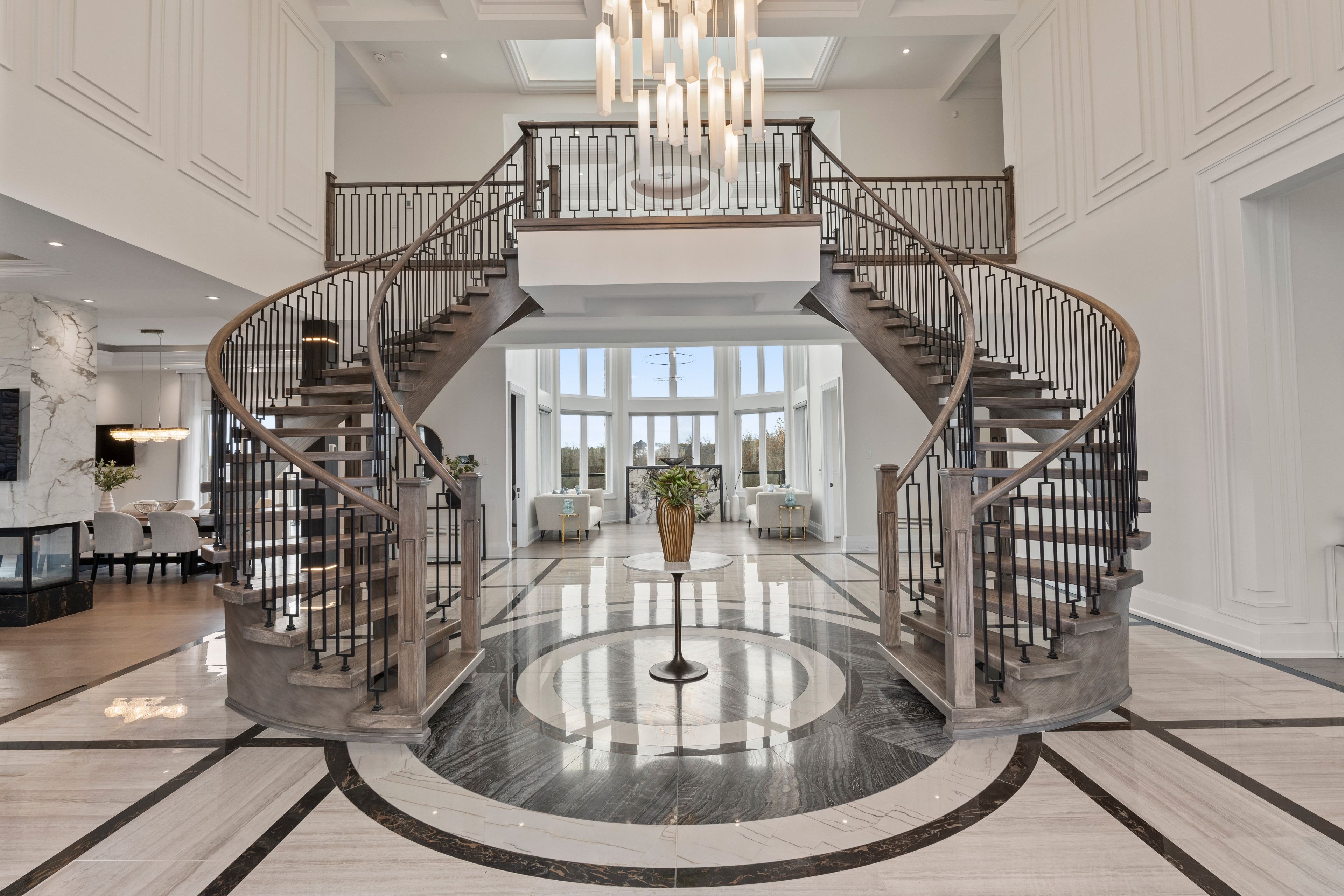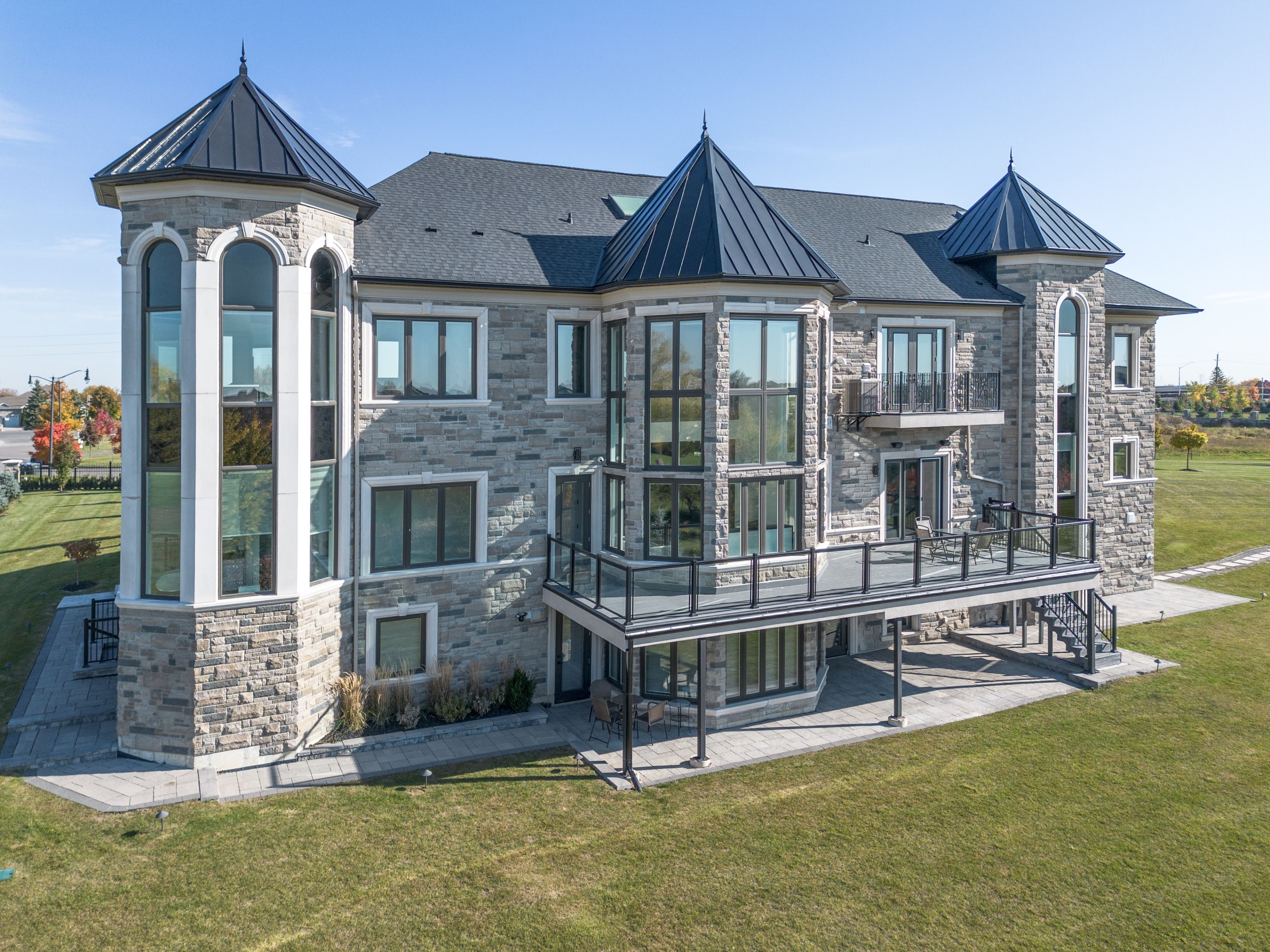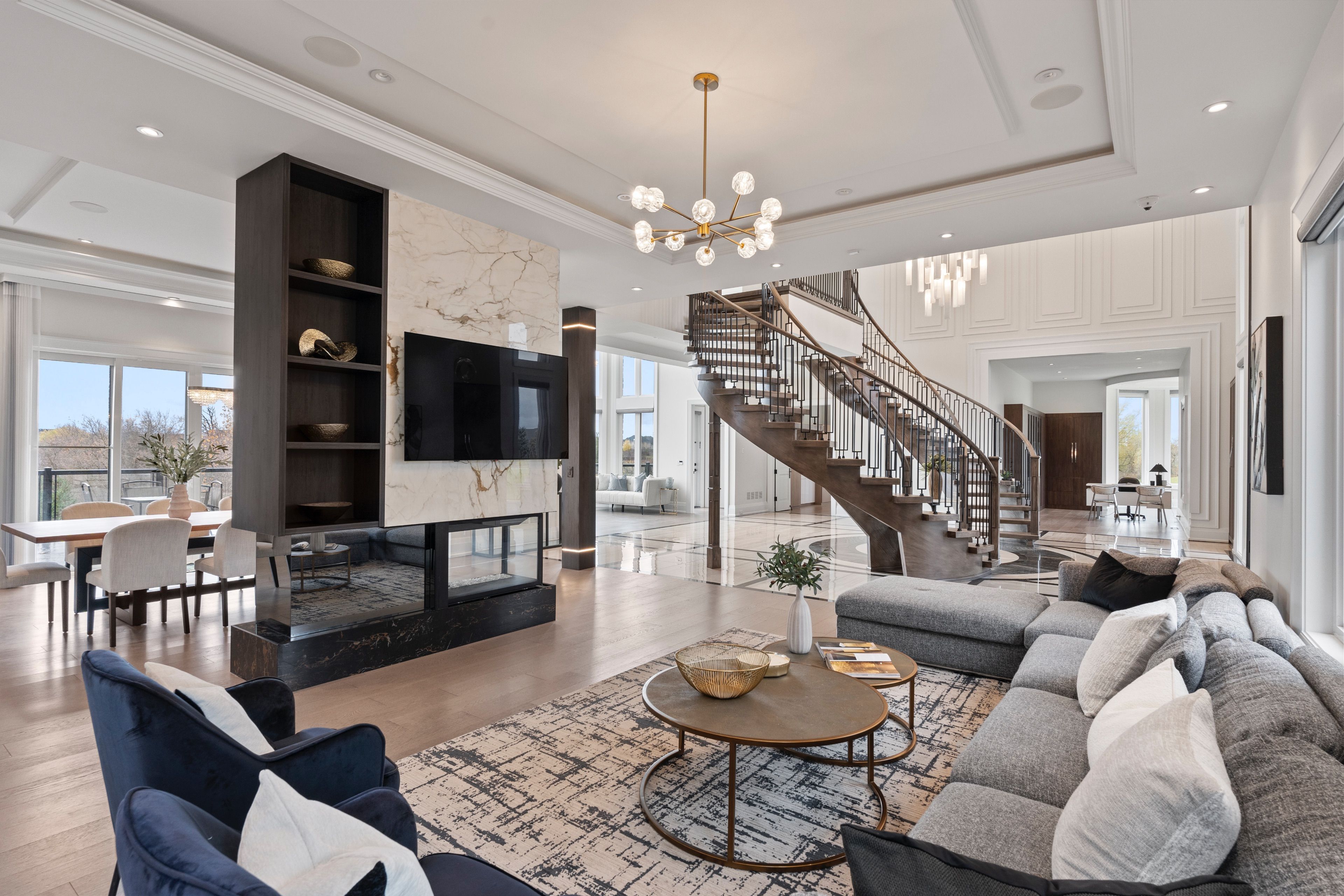 Welcome to 4 st. Lukes court, a breathtaking 13,000+ sq. Ft. Estate set on two pristine acres with scenic ravine views, nestled in the prestigious castlemore estates neighbourhood. This modern victorian-inspired masterpiece combines timeless architecture with state-of-the-art luxury, showcasing a grand stone exterior, soaring turret towers and a dramatic double staircase beneath 22 ft. Ceilings. At the heart of the home lies a stunning chefs kitchen, featuring dual waterfall islands, top-tier wolf and miele appliances, and a separate spice kitchen offering both beauty and functionality for everyday living and exceptional entertaining. The upper level boasts five spacious bedrooms, including three stunning primary suites with spa-like ensuites, private balconies, and a turreted lounge. The above-ground lower level offers a legal two-bedroom in-law suite, home theatre, gym, sauna, and entertainment lounges with full kitchen and bar. Complemented by sun-filled spaces enhanced with opulent finishes throughout, each level seamlessly accessible by a custom elevator for seamless accessibility. Featuring a five-car garage, grand fountain courtyard, expansive deck, and meticulously landscaped grounds, this one-of-a-kind estate is a must see!