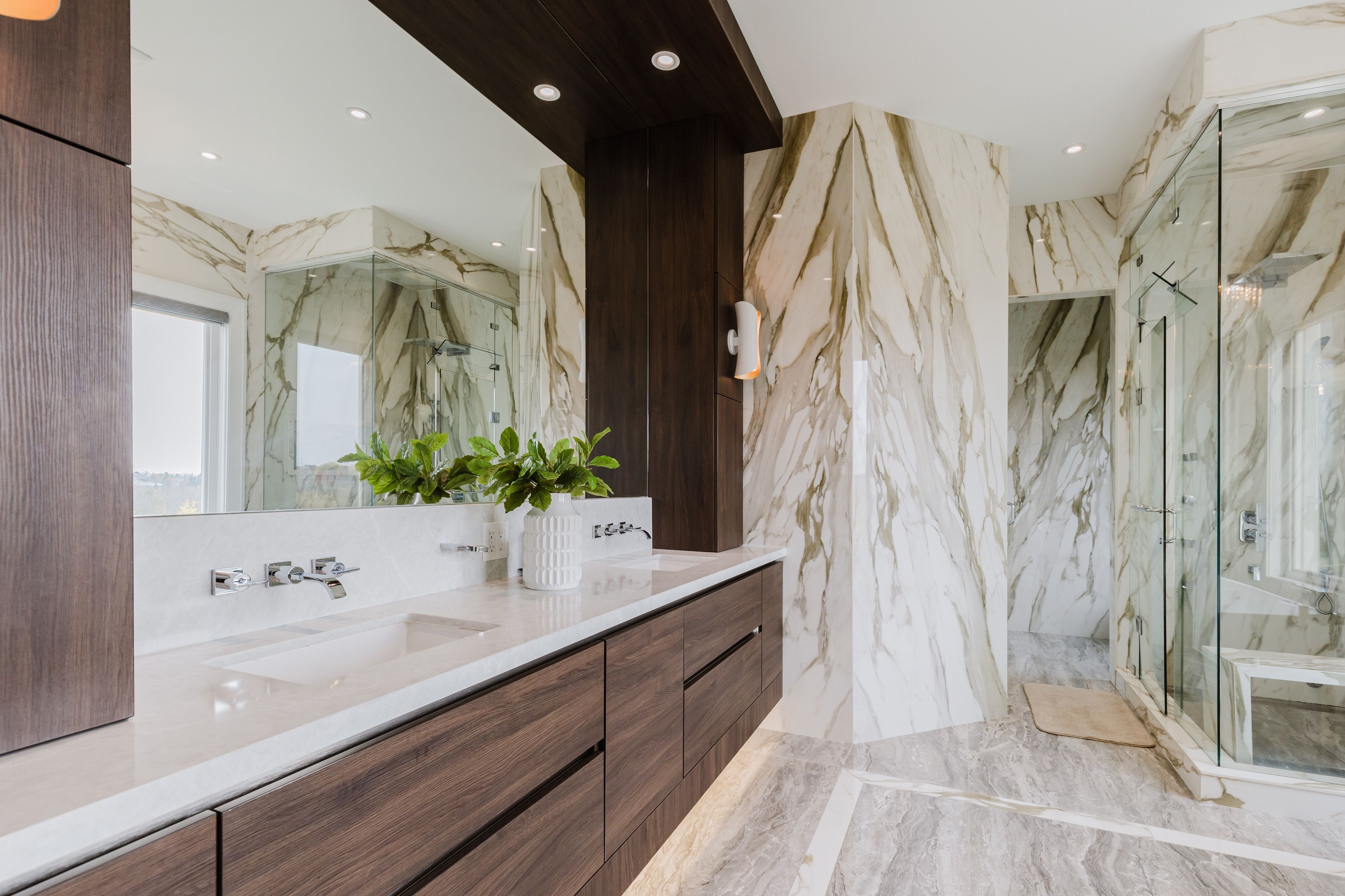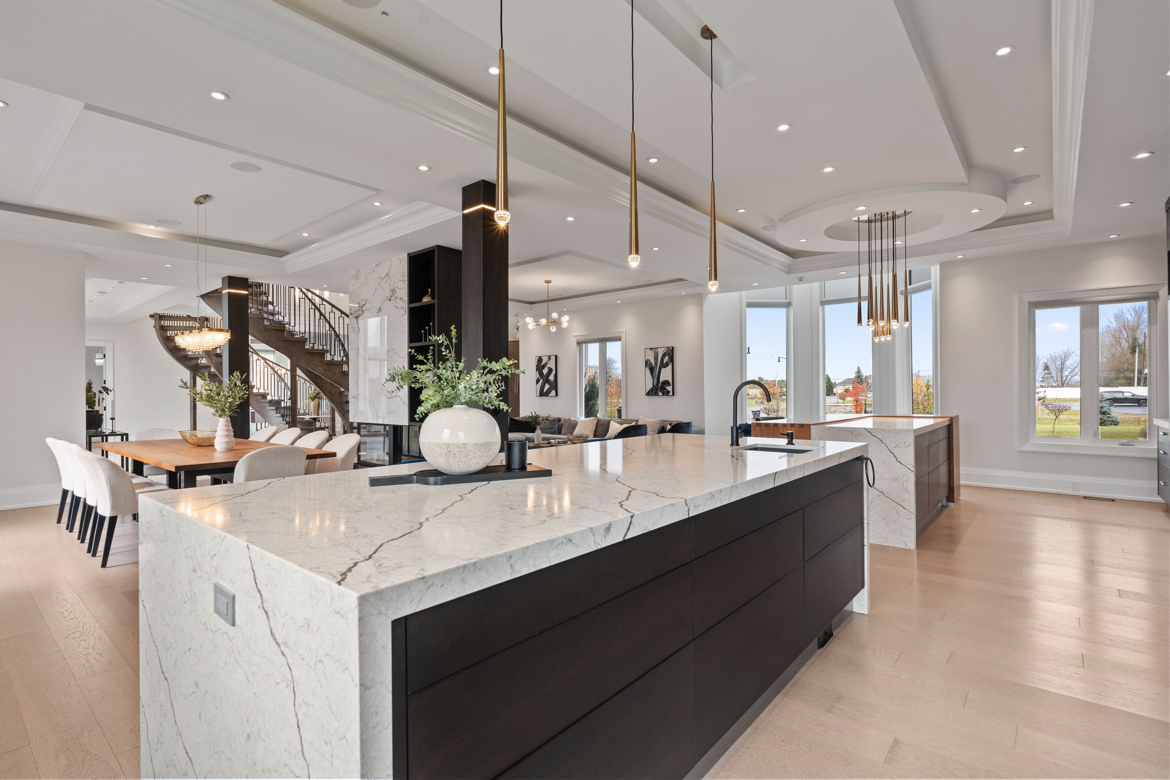 • Chef's kitchen with top-tier appliances and dual waterfall islands.