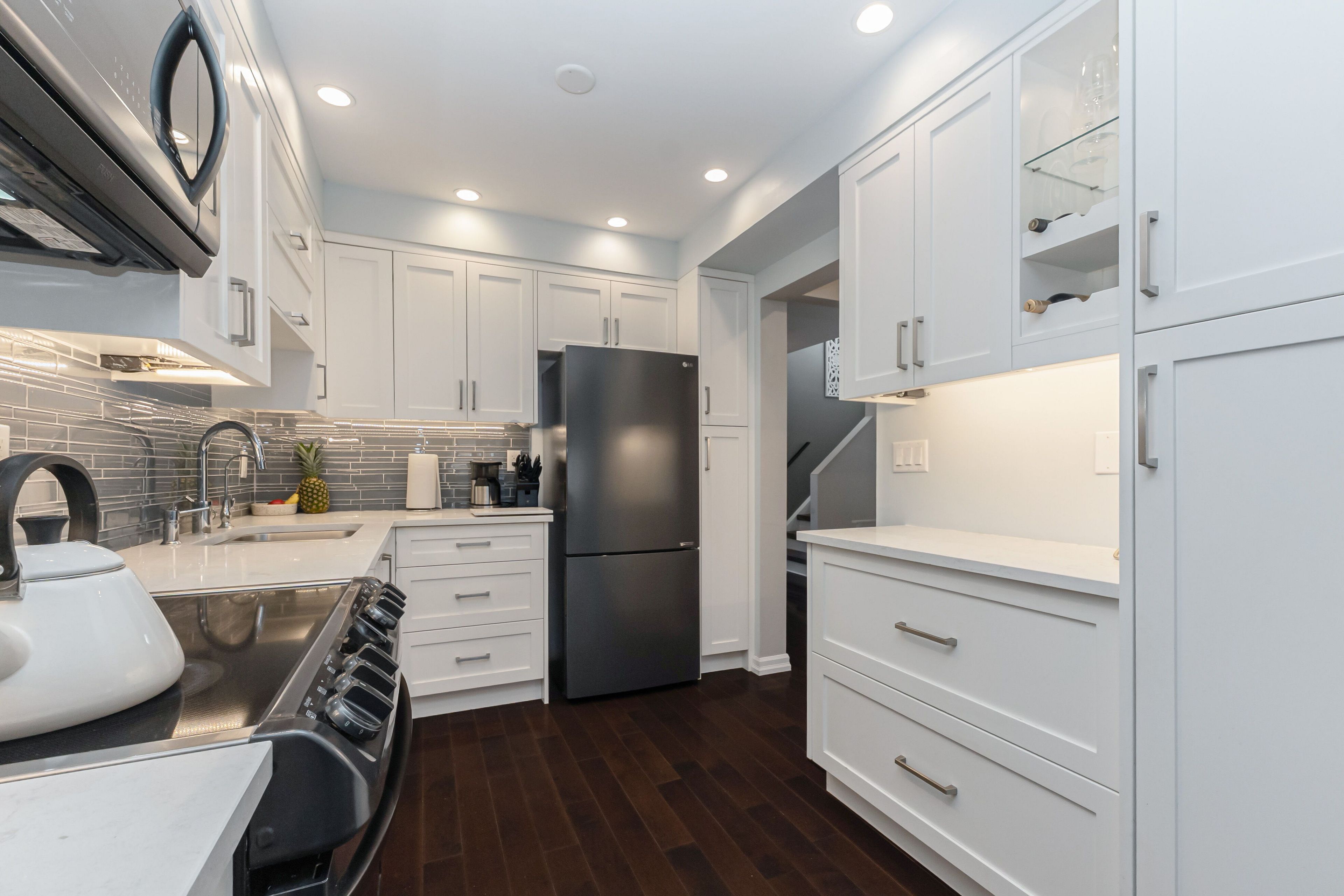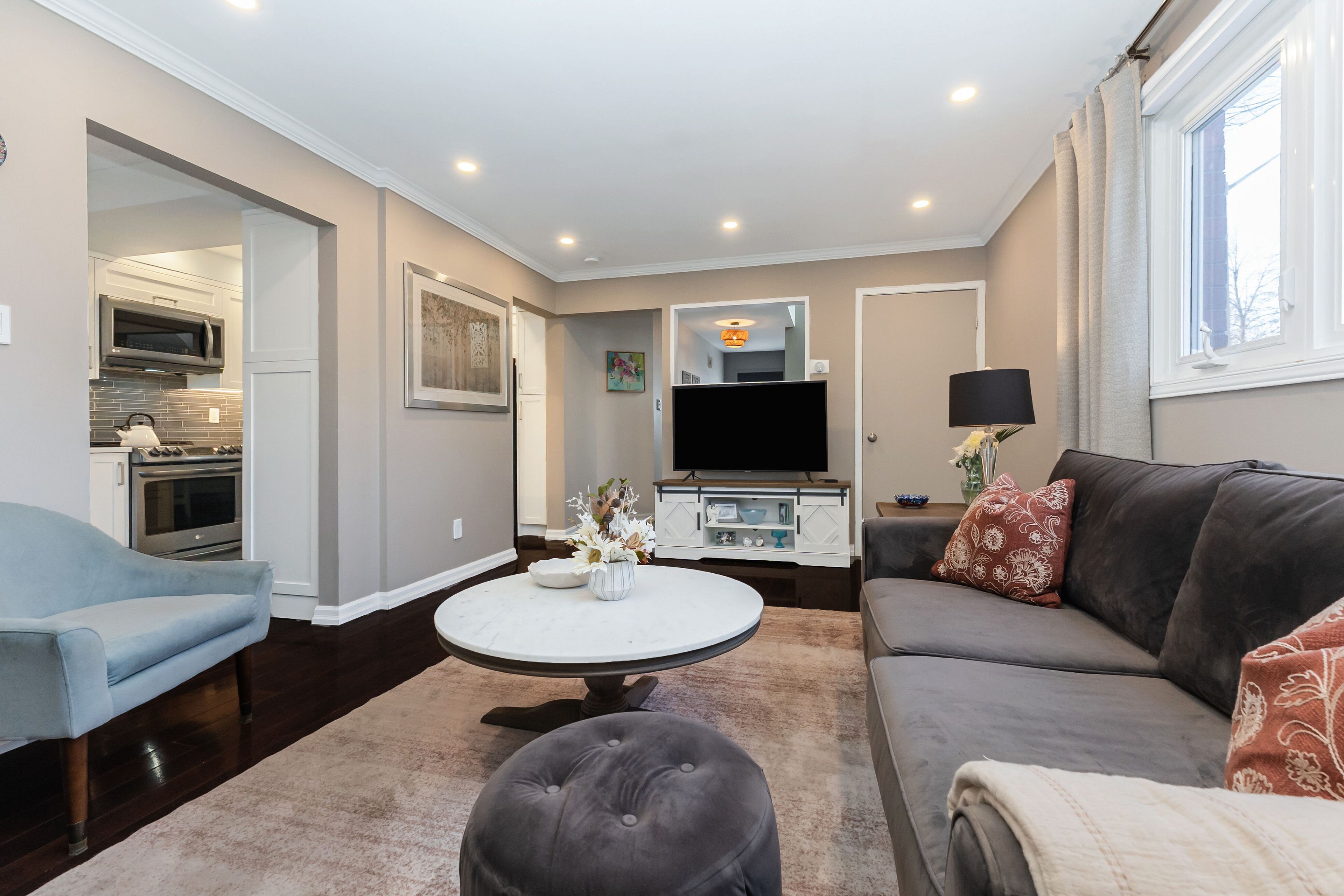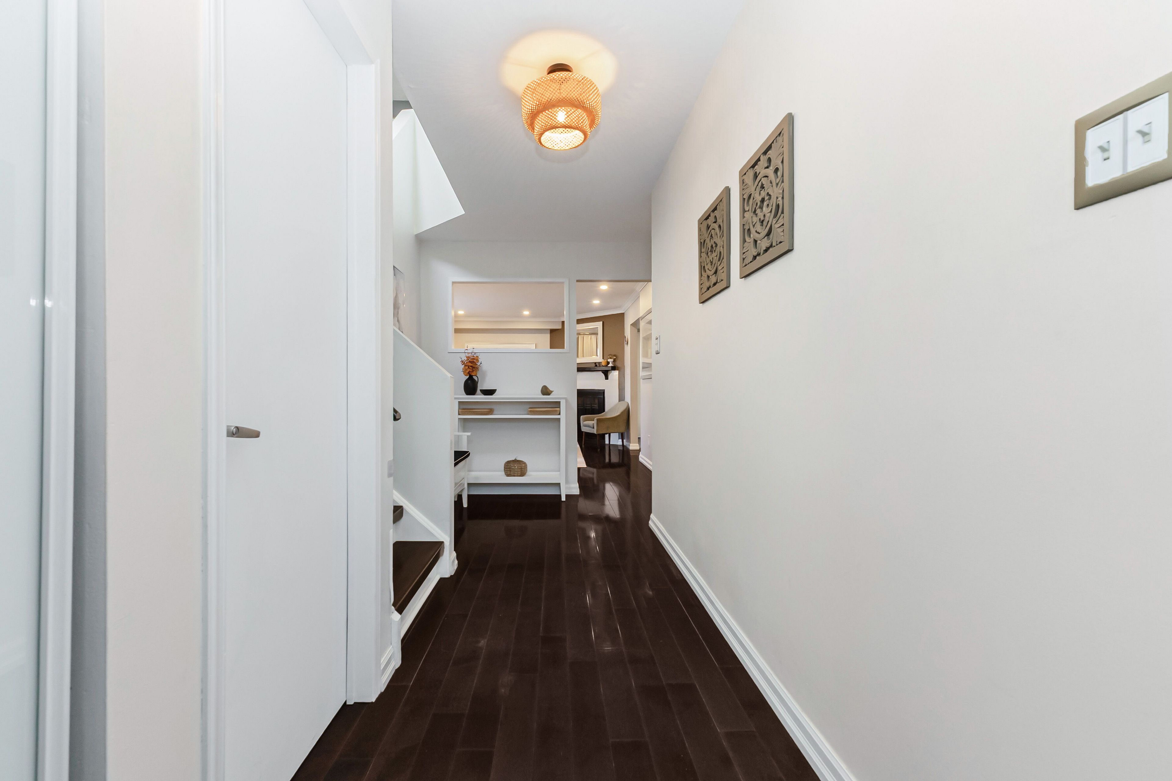 • Spotless hardwood flooring and modern pot lights for a clean atmosphere.