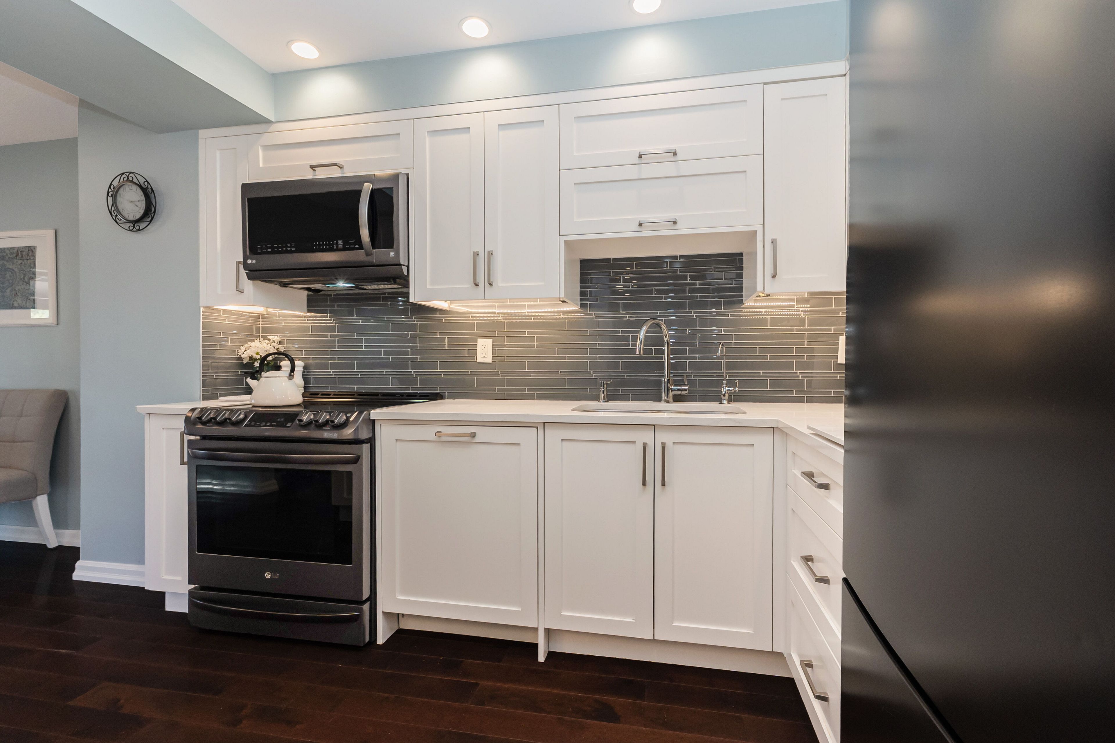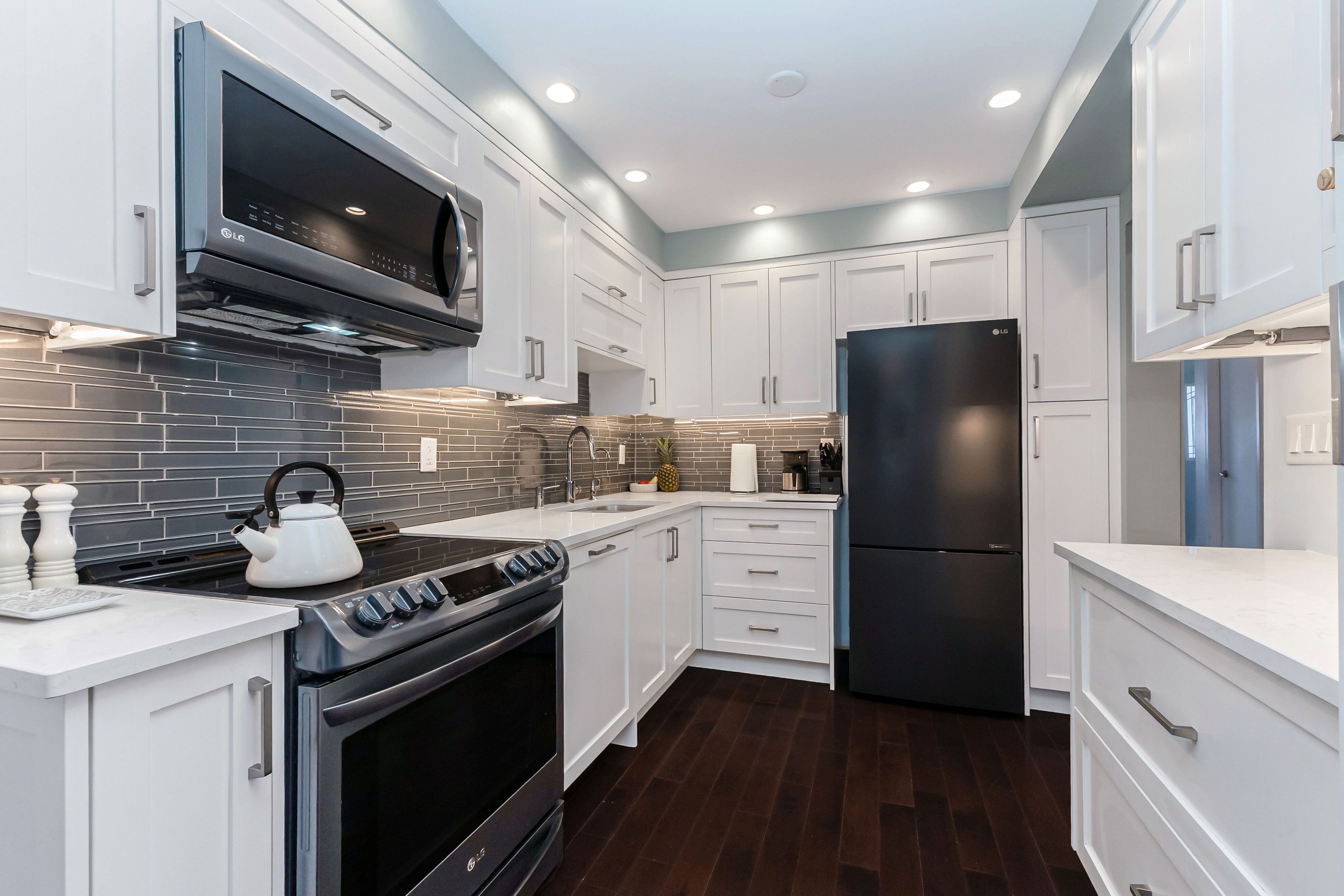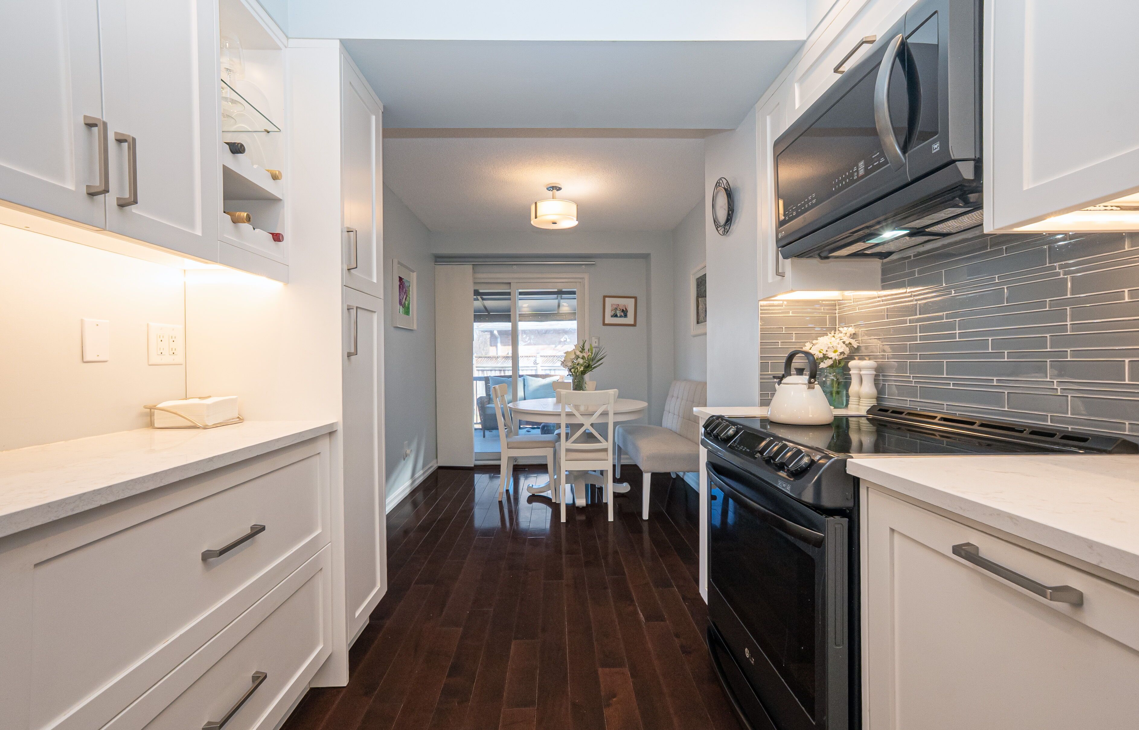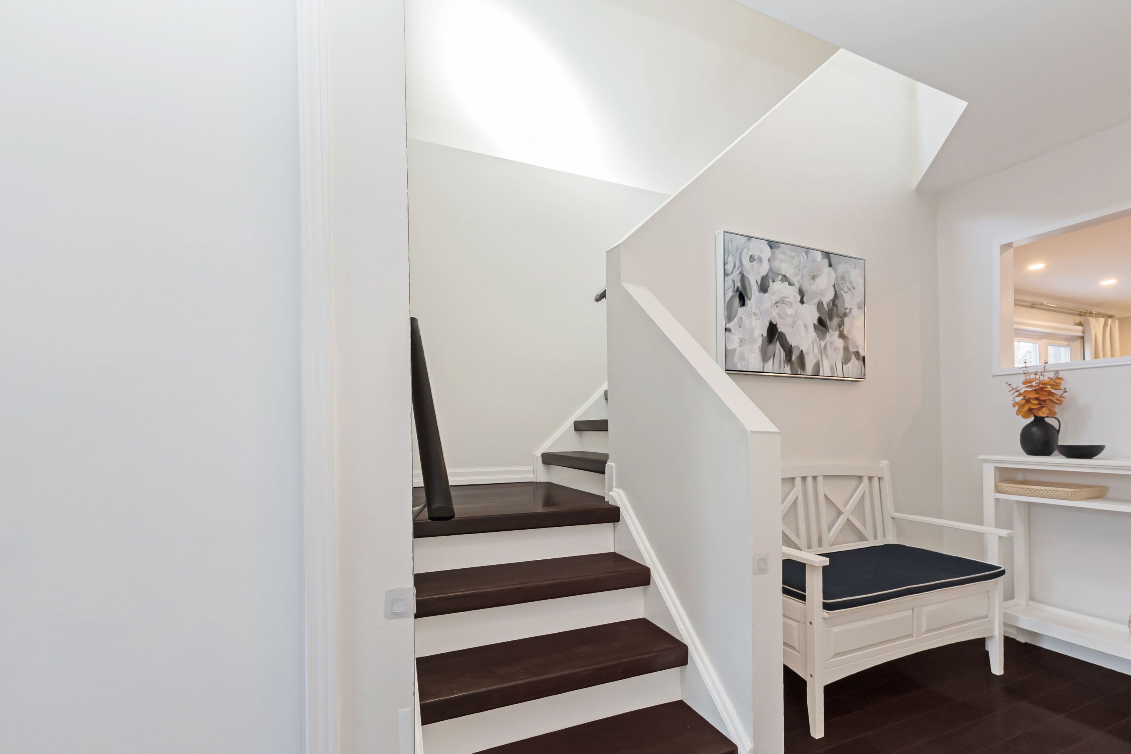 • Spotless hardwood flooring and modern pot lights for a clean atmosphere.