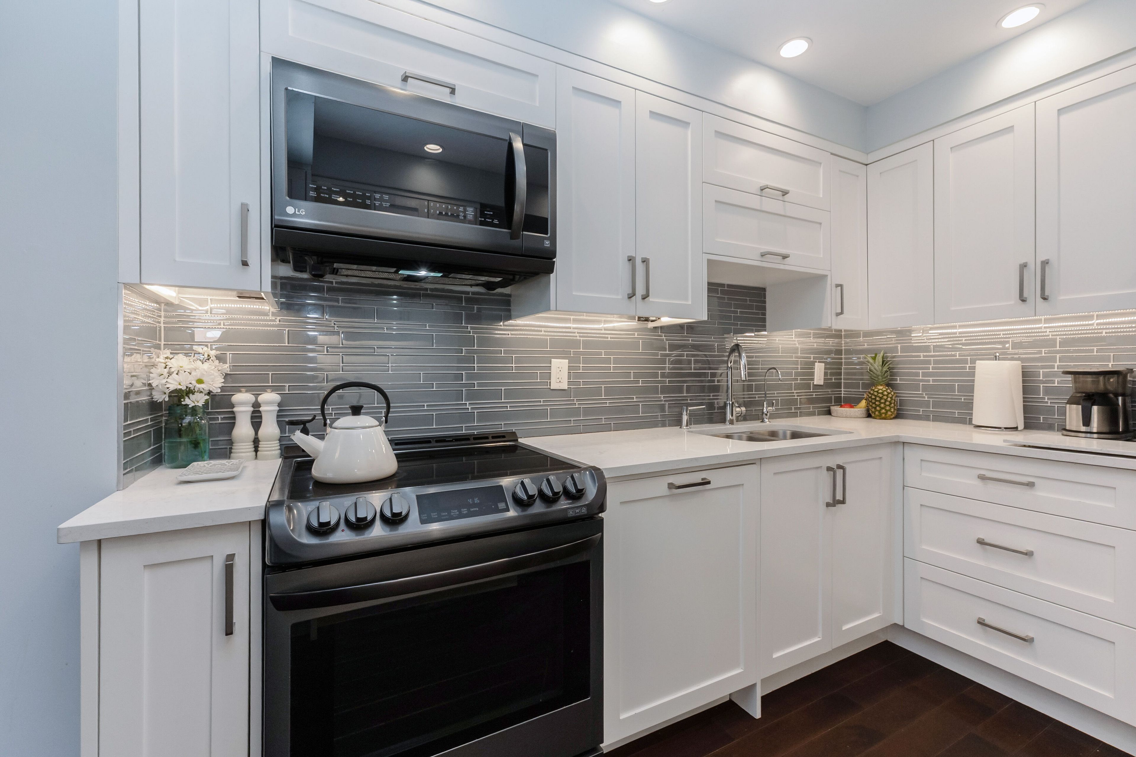 • Bright open-concept layout with a custom kitchen featuring quartz countertops.