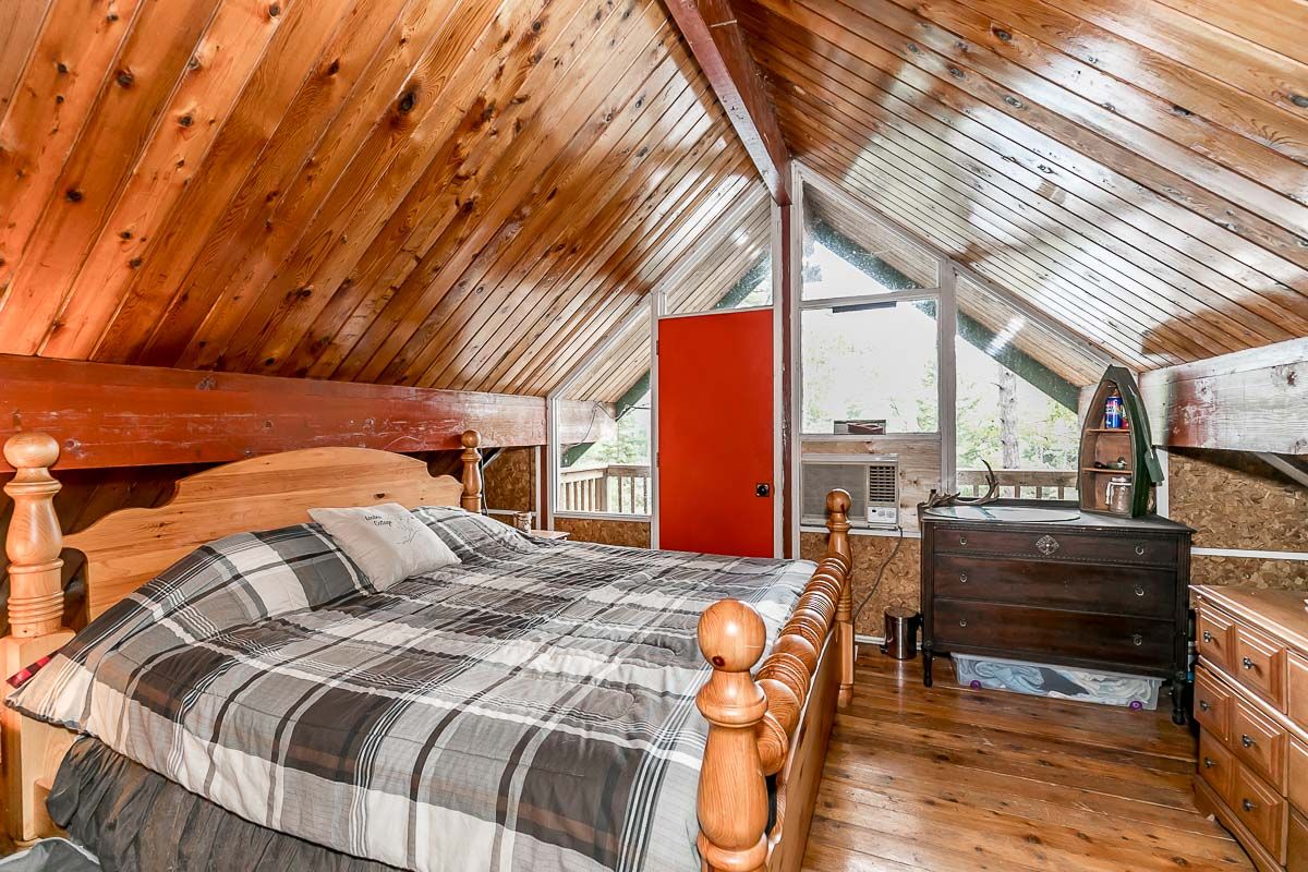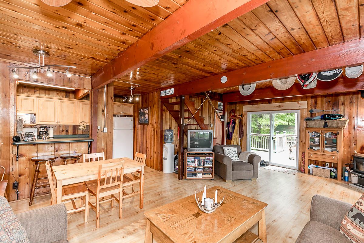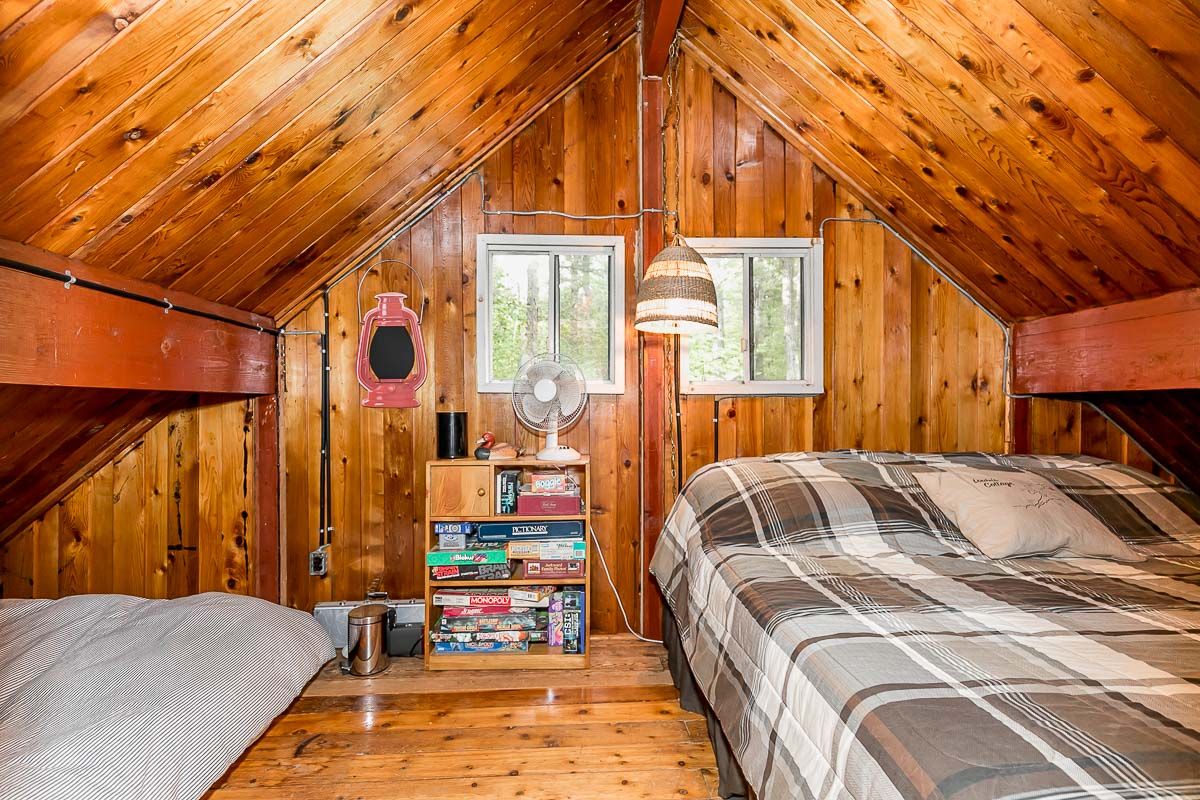 • Turnkey A-Frame cottage with two bedrooms and open-concept living space.