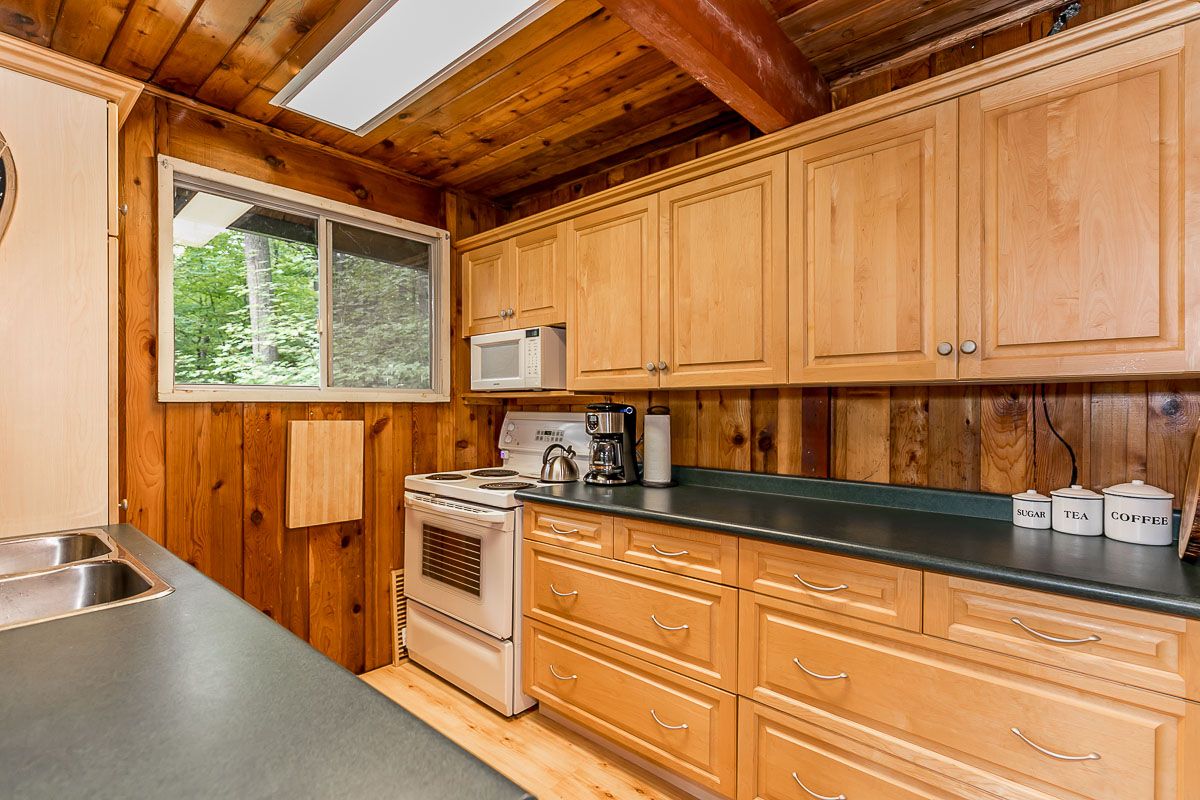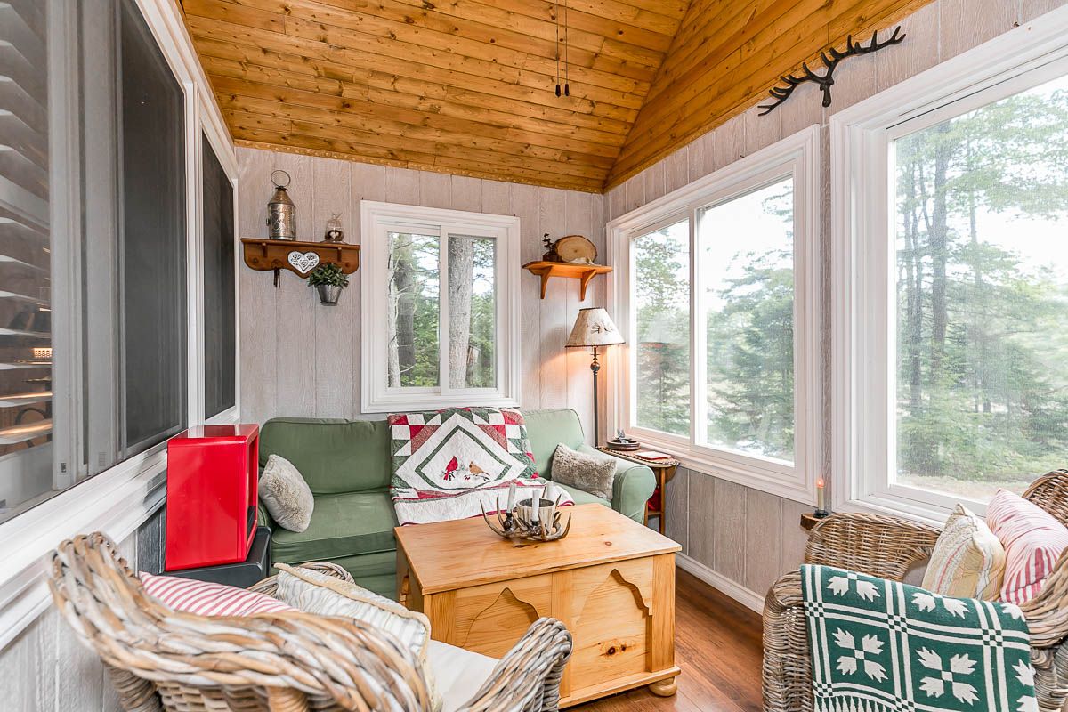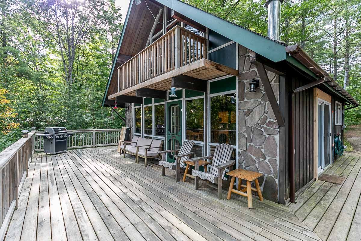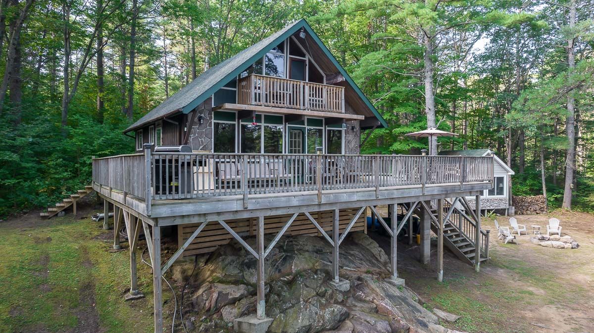 • Turnkey A-Frame cottage with two bedrooms and open-concept living space.
