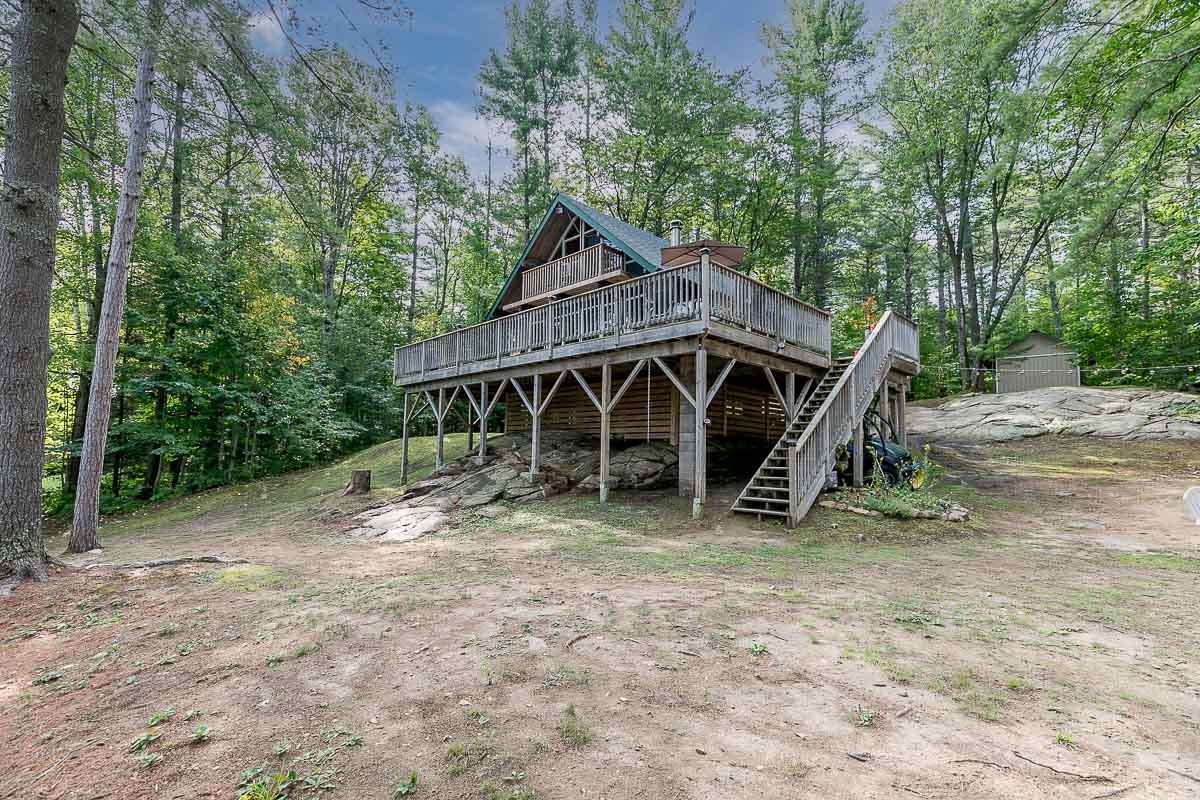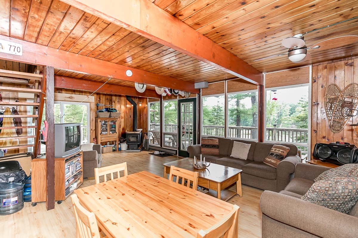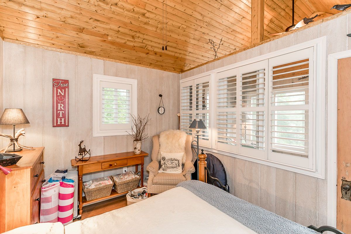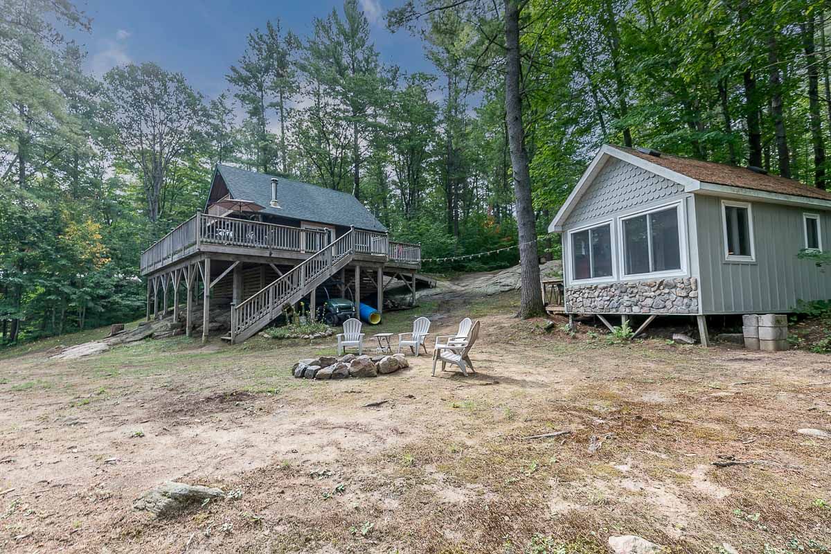Water access only - situated in a secluded bay off lost channel of the severn river, shielded from any semblance of boat traffic and edged by crown land, this residence offers a haven of privacy & serenity on just shy of an acre of land. A short 8-minute boat ride from the big chute marina transports you to this turn key meticulously maintained retreat, poised to offer an unparalleled lifestyle experience of peace & tranquility. This classic a-frame architecture two-bedroom, one-bathroom cottage is meticulously designed to harmonize with its natural surroundings, boasting an open-concept living space & a wood-burning stove, ideal for cozy evenings. Additionally, a charming one-bedroom bunkie with an accompanying sitting area caters to the comfort of guests, ensuring a delightful, private stay. Practical amenities include a shed for the storage of aquatic equipment and tools, highlighting the property's readiness for immediate occupancy & enjoyment. Noteworthy updates include a new septic system & steel dock in 2010, airtight woodstove in 2024, a spacious 1000-square-foot deck in 2012, a new bunkie in 2013, a new shed in 2015 & a fresh roof/eavestroughs in 2022, culminating in a turnkey oasis awaiting its fortunate new owner. Strategically positioned along the trent severn waterway but tucked away from the hustle & bustle yet still providing convenient access to gloucester pool via the big chute & georgian bay through lock45, the location presents an array of recreational opportunities. From superlative fishing to exhilarating water sports, atv/ snowmobile trails, & the convenience of waterfront dining establishments & full-service marinas, every conceivable amenity is within reach. Immediate possession is available, seize the opportunity to make 2025 an unforgettable summer by claiming this idyllic, quiet retreat as your own.