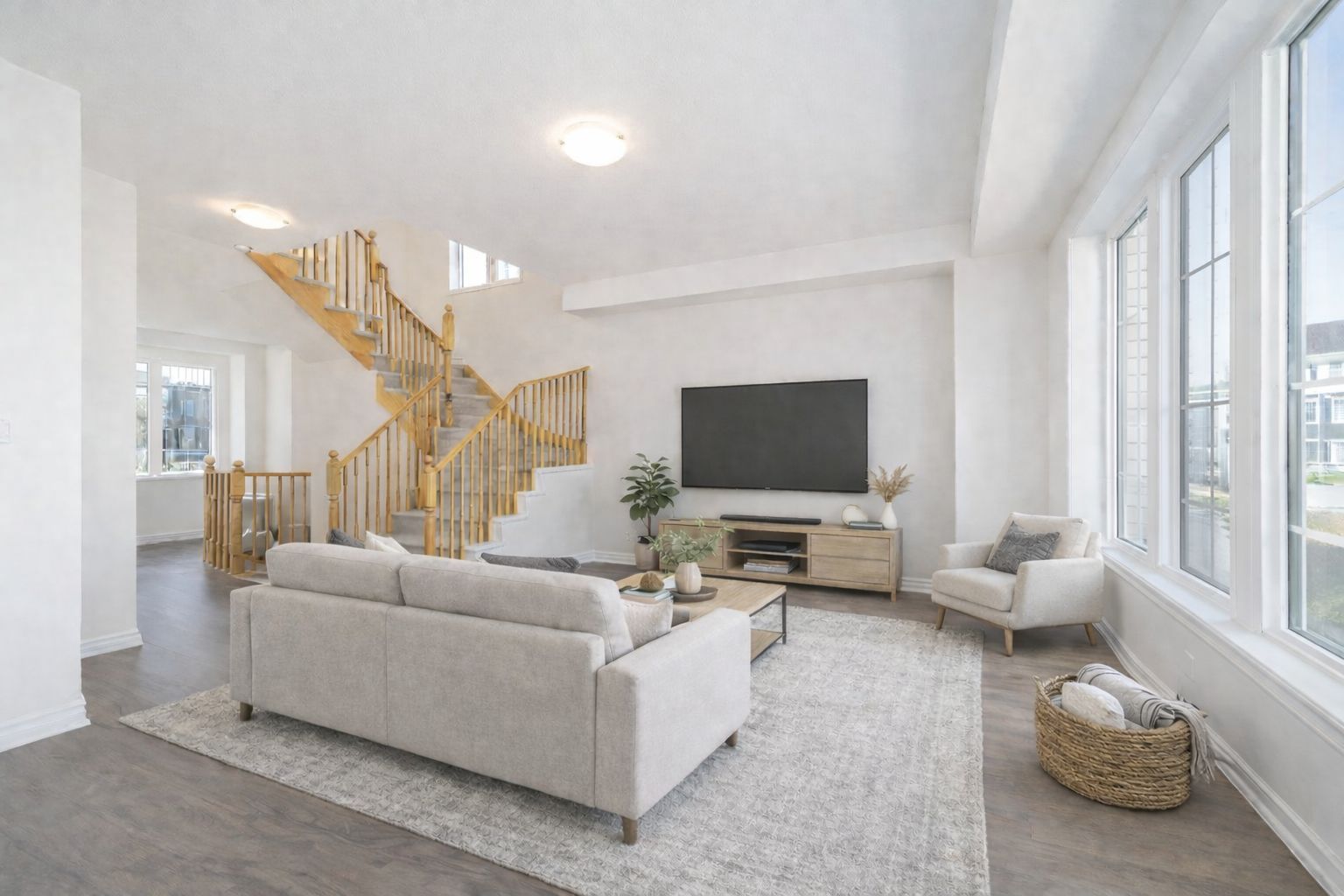 • Open-concept living area filled with natural light from large windows.