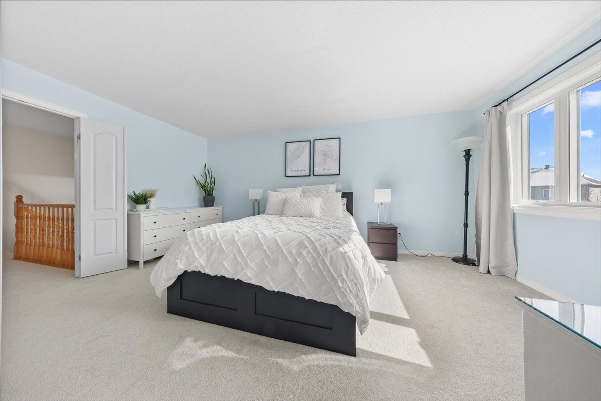 Welcome to 4 sheppard's glen avenue, nestled in the heart of emerald meadows-one of kanata's most desirable, family-friendly communities. This beautifully maintained 3-bedroom, 3-bathroom row unit is tucked away on a quiet crescent, offering the perfect blend of comfort, functionality, and convenience. Step inside to a spacious, inviting foyer that leads into a bright and well-designed main floor. The seamless flow between the living and dining areas creates an ideal space for both everyday living and effortless entertaining. The kitchen features ample cabinetry and workspace, all overlooking a fully fenced private backyard-perfect for keeping an eye on family activities or hosting guests. Upstairs, you'll find three generously sized bedrooms, including a spacious primary retreat complete with a well-organized closet system. A full 5-piece ensuite bathroom provides both comfort and functionality for the upper level. The additional bedrooms are well-proportioned, making them ideal for family, guests, or a home office. The fully finished basement expands your living space with a large recreation area, highlighted by a cozy wood-burning fireplace-perfect for relaxing evenings. You'll also find ample storage and a rough-in for a future bathroom, offering excellent potential for customization. Enjoy summer days in the private backyard, with plenty of space for bbqs, outdoor dining, and relaxing with family and friends. If you're looking for a move-in ready home in one of kanata's most convenient and family-oriented neighbourhoods, this is one you won't want to miss. Updates: verdun windows + patio door summer 2022, a/c 2024, furnace + humidifier -2022, roof 2013, deck & fence-2019, washer & dryer -2025, window wells -2019