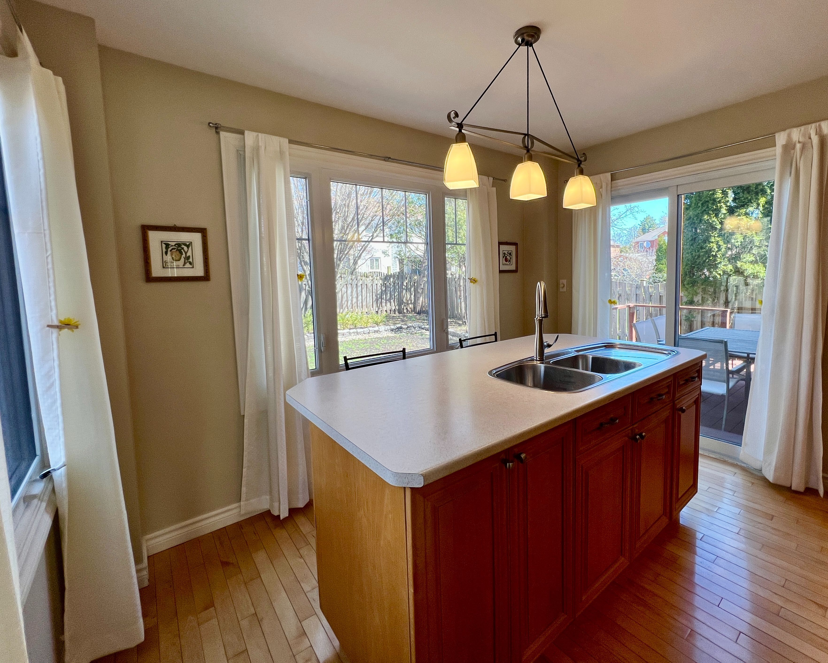 • Bright kitchen that connects to dining area for easy hosting.