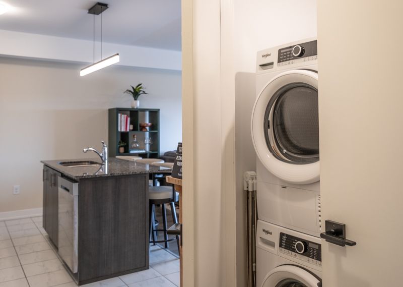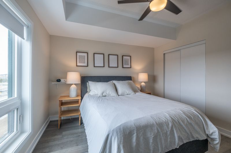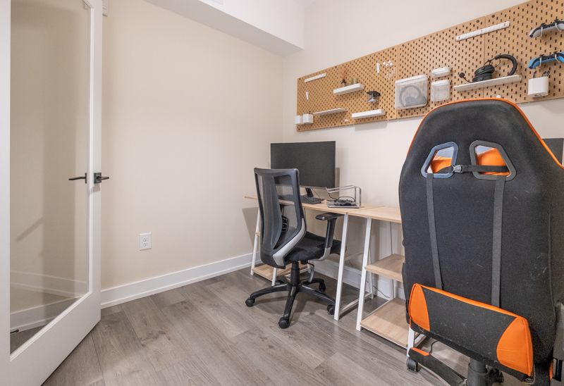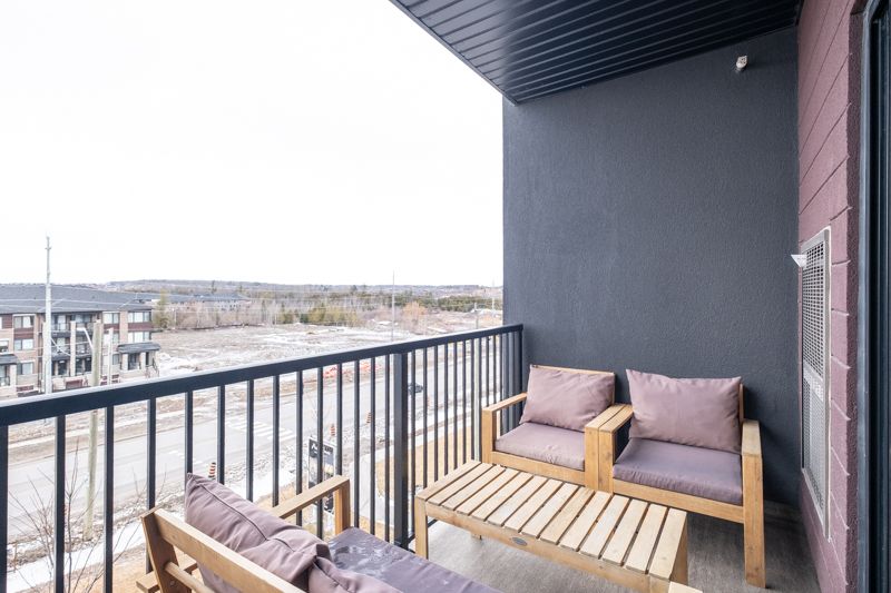 Welcome to this beautifully upgraded 1 bedroom plus den condo in barrie's sought-after south end, offering smart design, quality finishes, and everyday convenience. This well-appointed unit features an open-concept layout with upgraded cabinetry, modern finishes, and additional builder-installed kitchen lighting that enhances both function and atmosphere. The kitchen flows seamlessly into the living space, making it ideal for everyday living and entertaining. The spacious primary bedroom offers comfort and storage, while the separate den provides excellent flexibility-perfect for a home office, guest space, or creative studio. Enjoy the convenience of in-suite laundry and one owned parking space. Situated on a north-facing exposure, the unit offers consistent natural light without excessive heat, ideal for year-round comfort. The private balcony offers exceptional outdoor living space with the added bonus of a gas bbq hook up. Residents enjoy access to excellent building amenities, including a fitness centre, shared social spaces, outdoor bbq areas, and beautifully maintained grounds. Located minutes from shopping, restaurants, parks, highway 400, and the barrie south go station, this is an ideal opportunity for first-time buyers, professionals, downsizers, or investors. A well-cared-for condo in a growing community-move-in ready and thoughtfully upgraded.