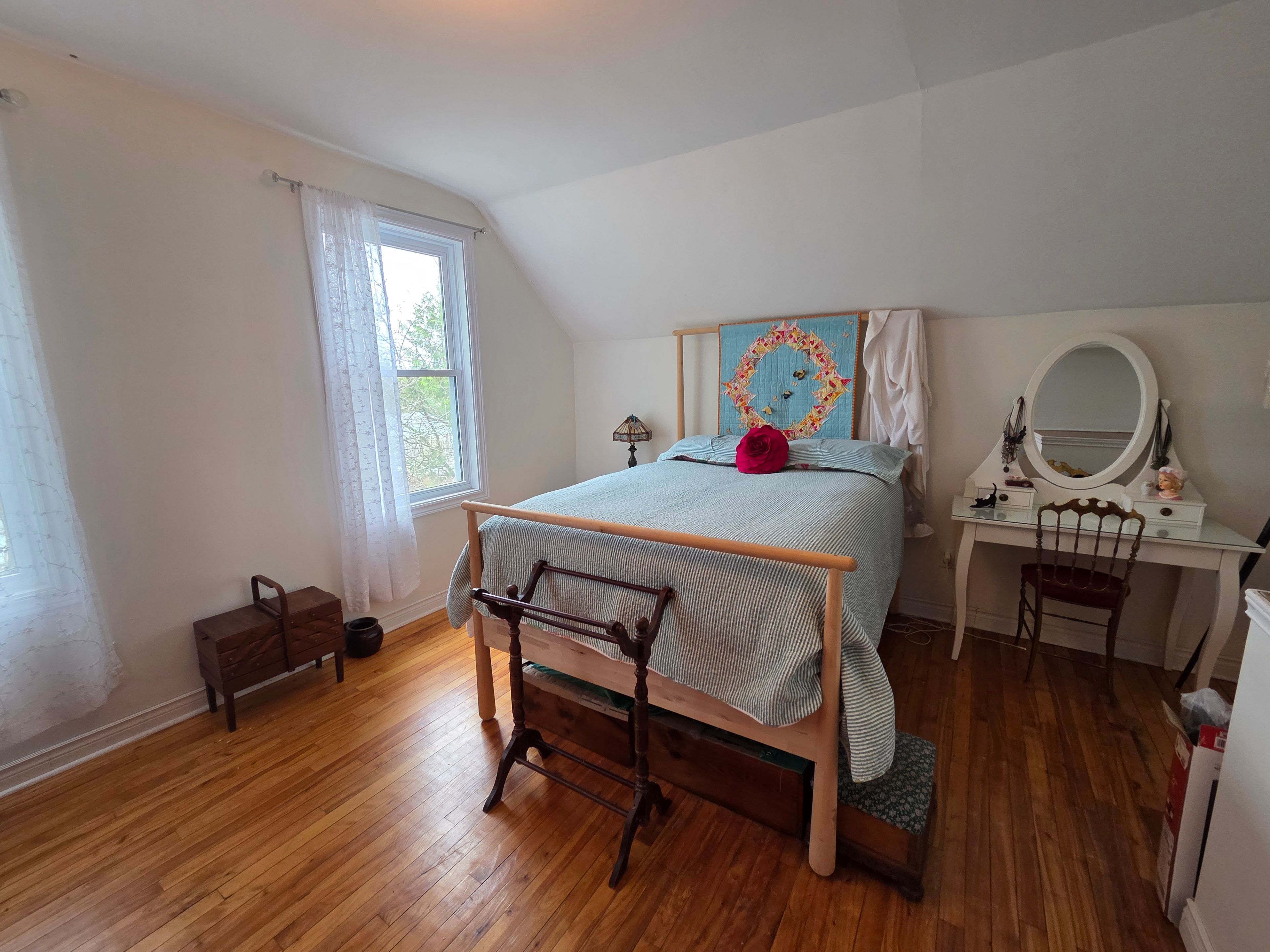 **open house sat may 2 from 1-3pm** beautiful country lot with a charming farm house right in town with municipal services. 3 spacious bedrooms (one on the main floor), 1. 5 baths all tucked perfectly at the end of stocking lane. While it feels as though you are in the country, in less than 15 minutes you can walk to the historical downtown huntsville for shopping and dining or head over to the summit centre and enjoy all of the amenities there. This home was built in the early 1900's but has updated windows, new shingles in 2018, and a natural gas furnace in 2024. You will love this peaceful and safe backyard where there is plenty of room for the dog and kids to roam! The two storage structures will be handy for your fire wood and lawn furniture. Come and check out this private country charmer today and plan your garden for the summer!