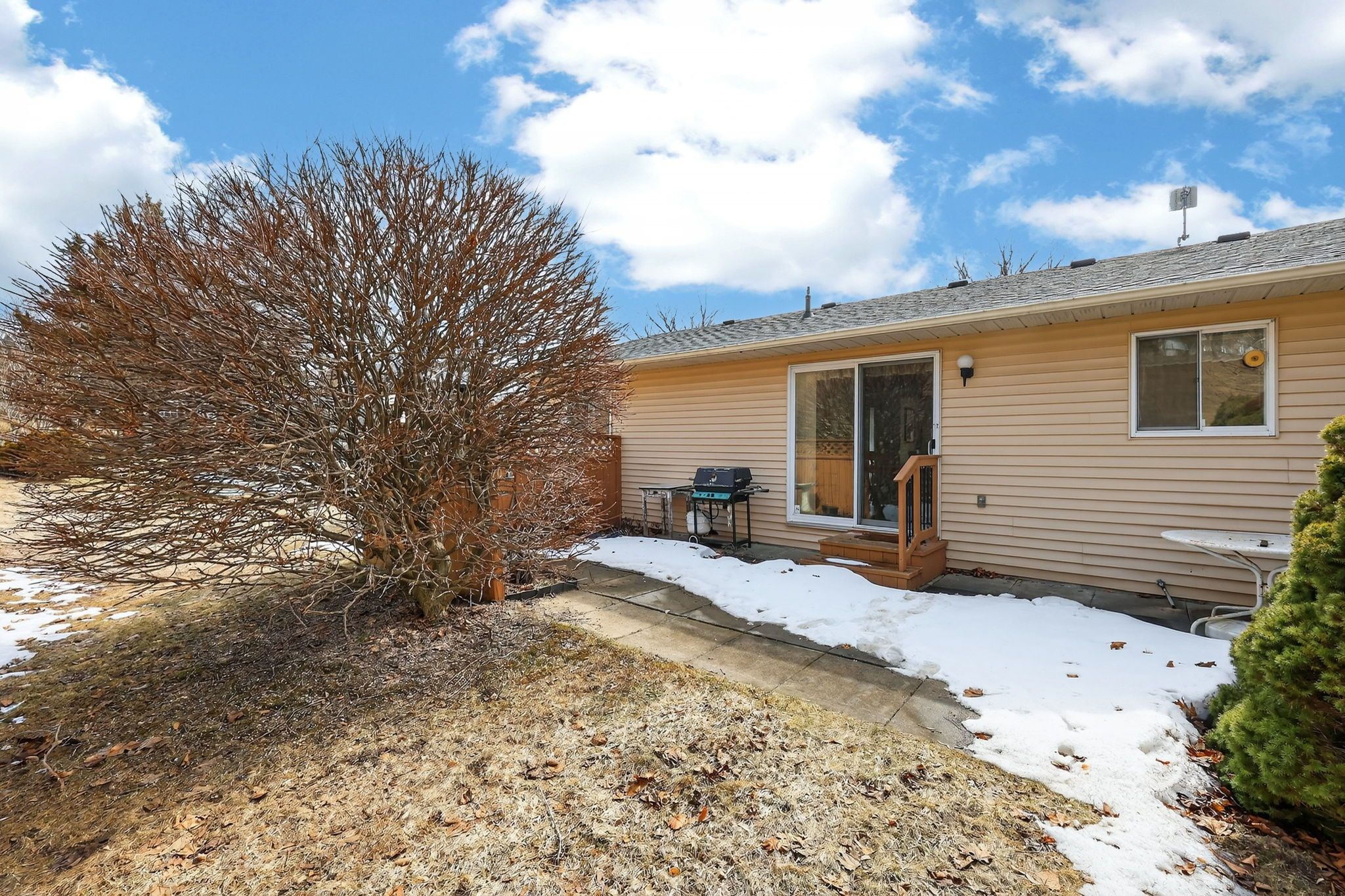 • Private patio backing onto peaceful green space for relaxation.